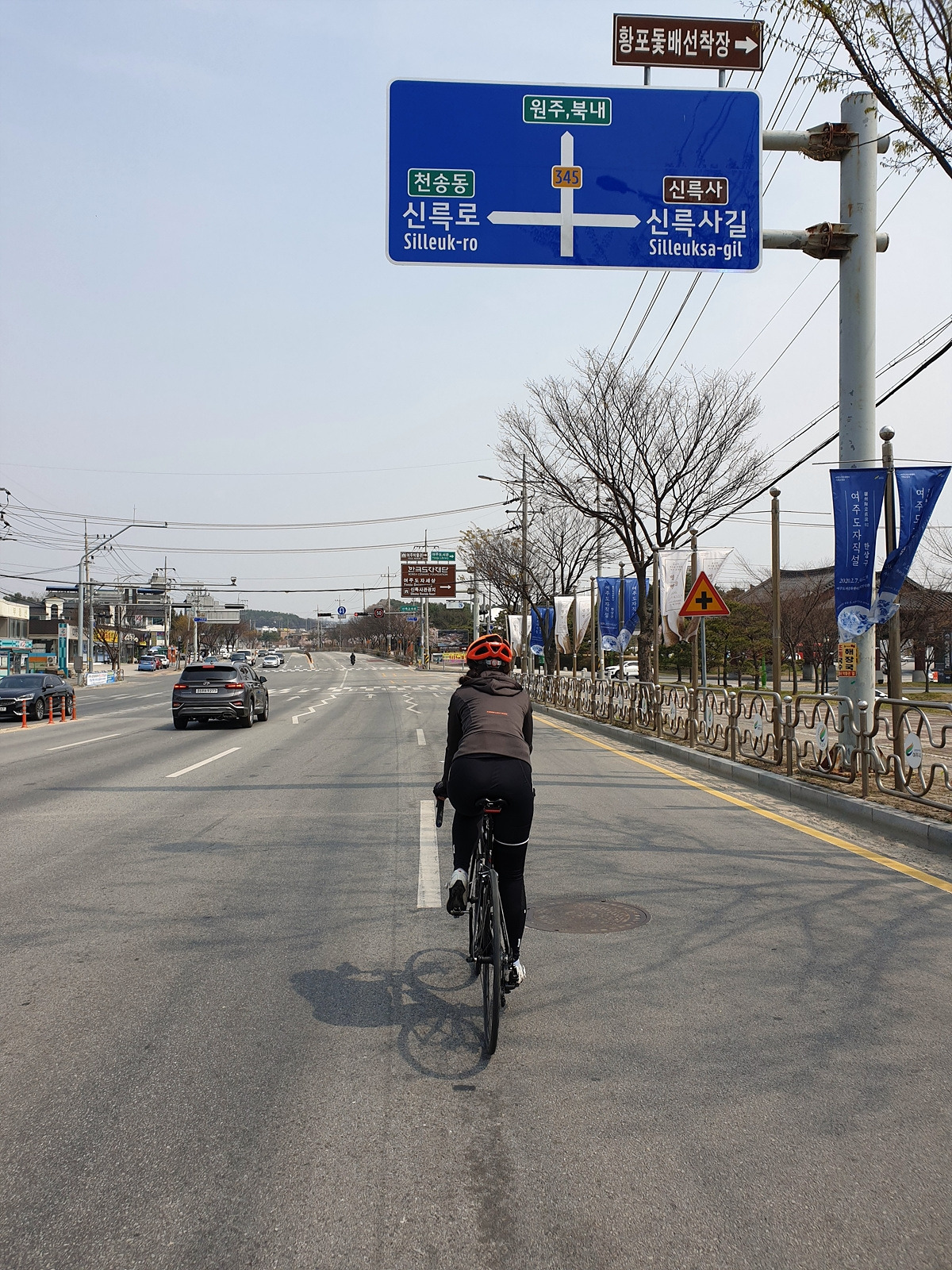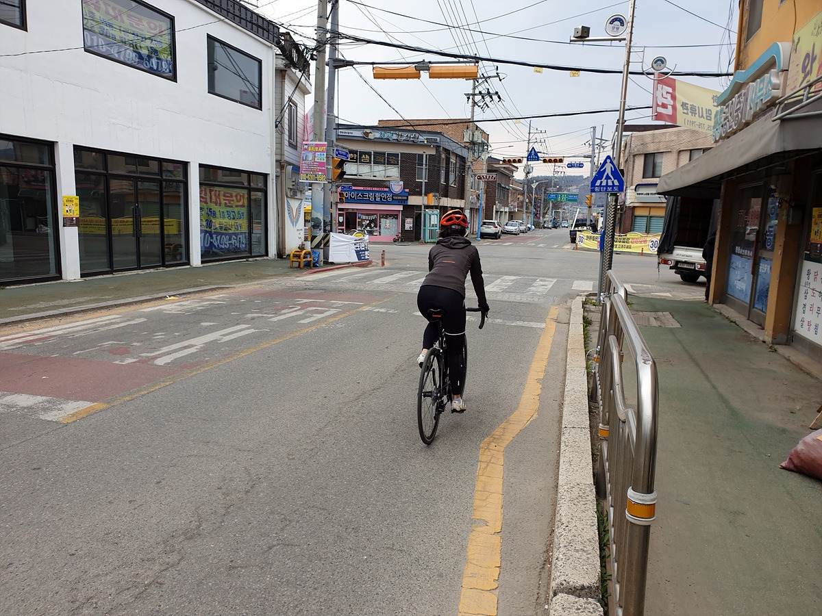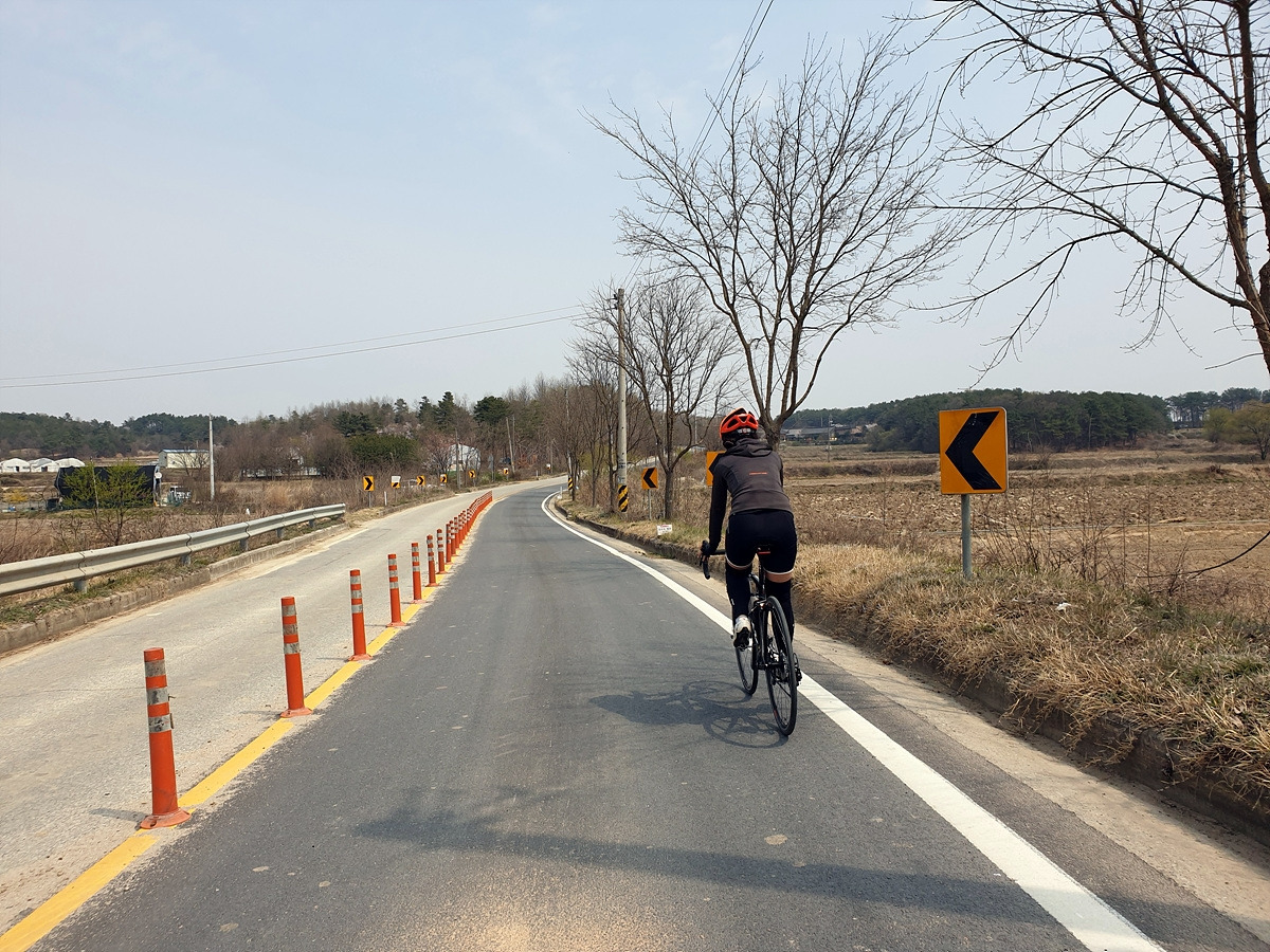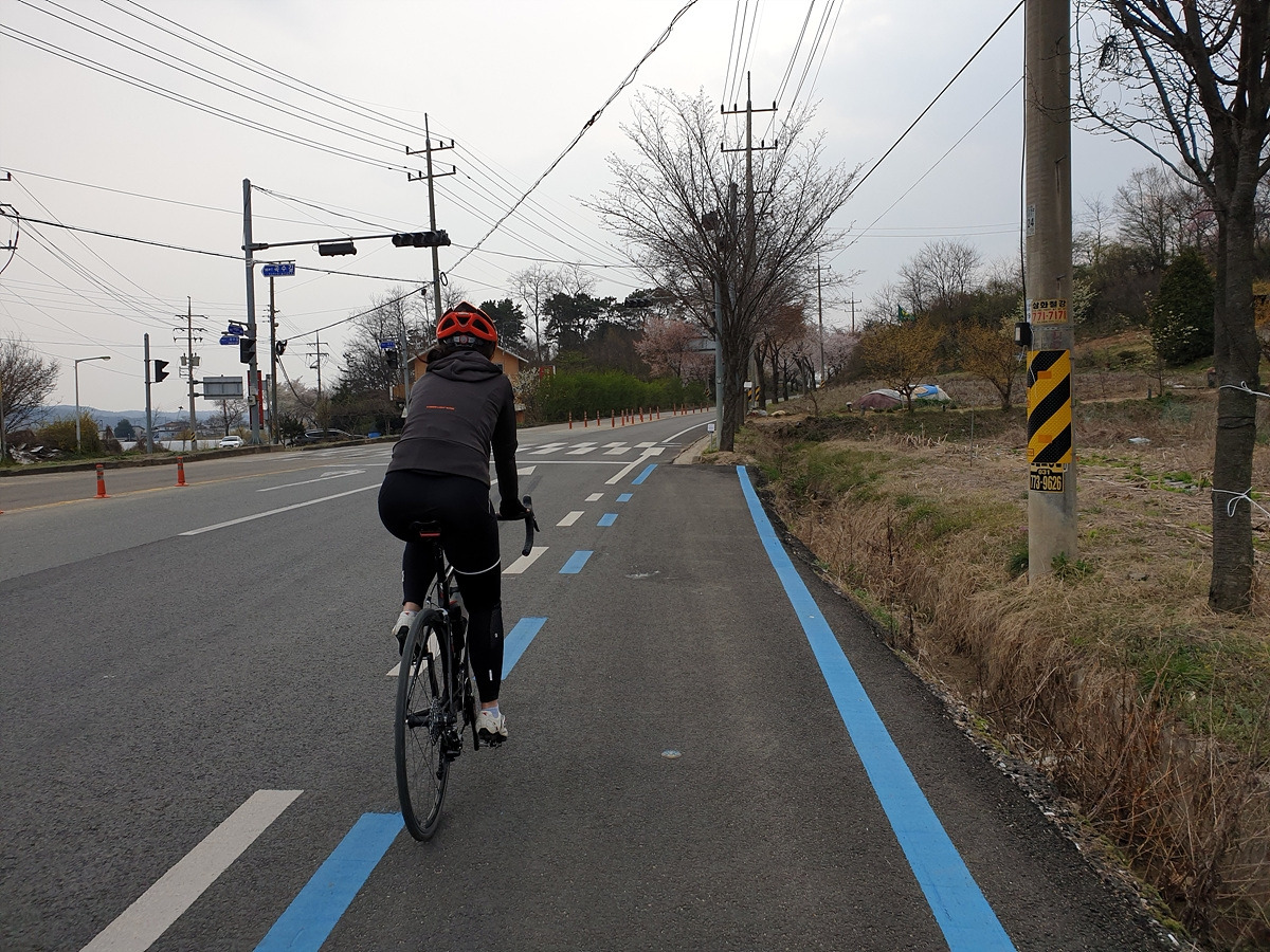 70번 국도를 달리는데 나름 한적한 오늘 코스 중에서는 차량 통행이 조금 많은 편이다. 차들에게 신경 쓰일 즈음에 달리기 좋은 자전거도로가 나타난다.