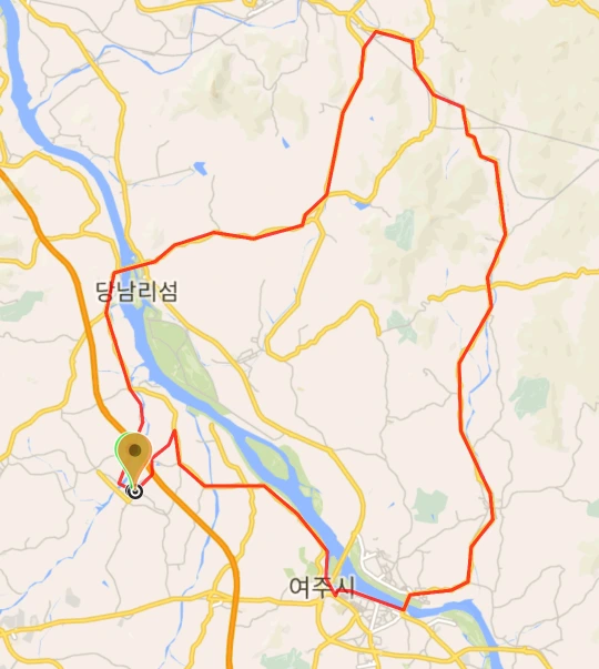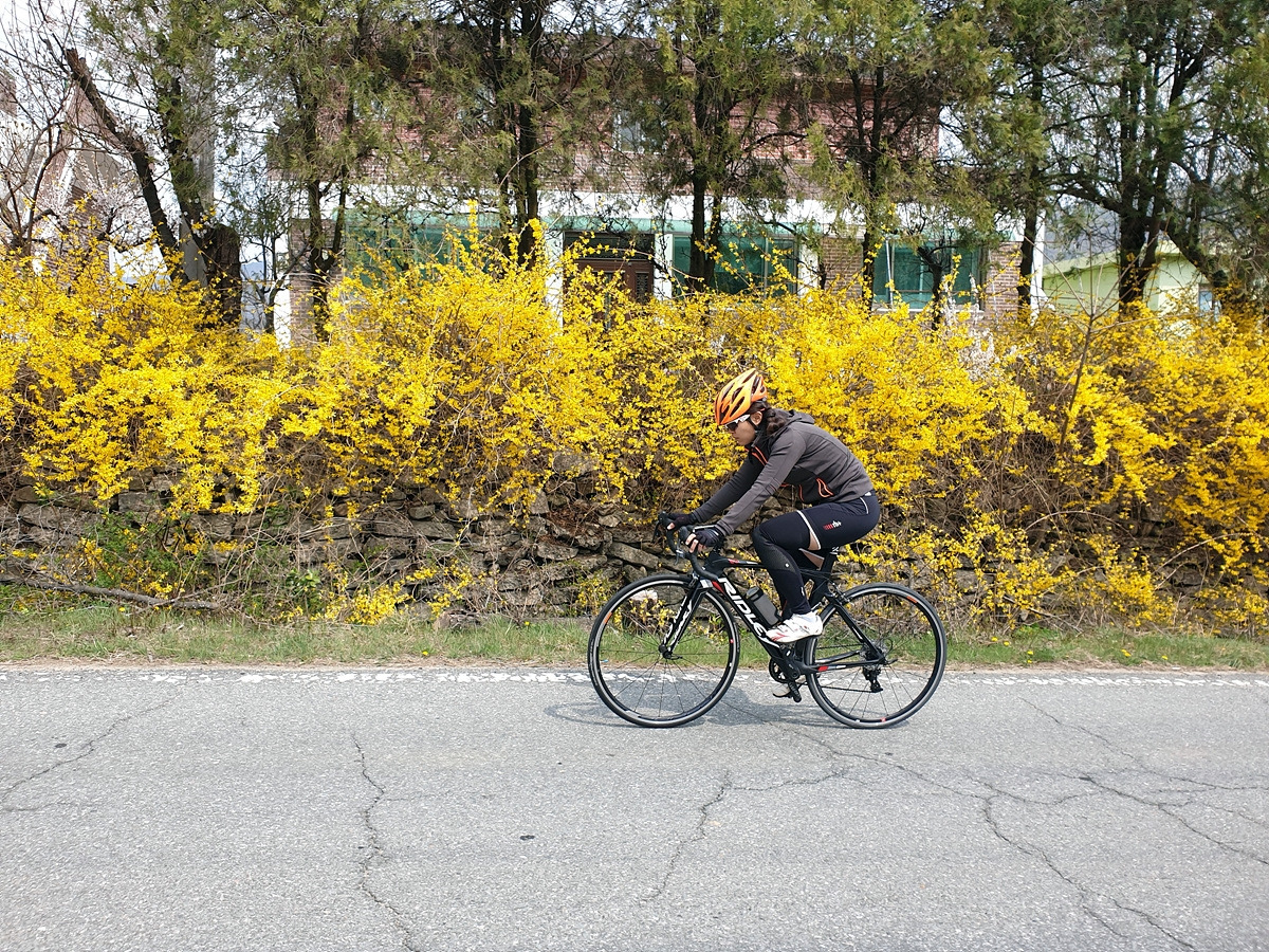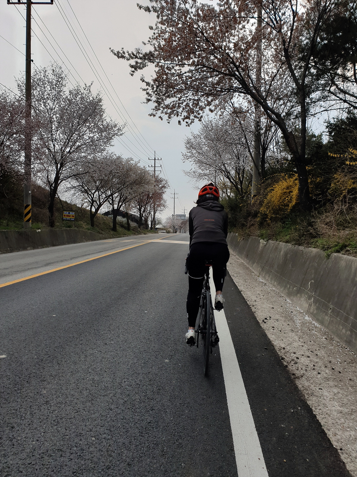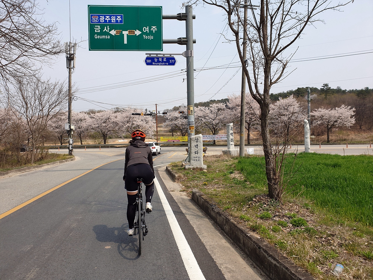 벚꽃을 보기 위해서 오늘은 경기도 여주시의 흥천면에서 출발해서 양평군 지평면까지 65km를 크게 한 바퀴 돌아온다. 매우 한적하고 조용한 코스다. 요즘 코로나 19 바이러스 감염 때문에 사회적 거리두기가 한창인데 우리는 기본적으로 사람이 없는 곳을 돌아다니니 거의 완전한 사회적 거리두기를 실천하는 셈이다.