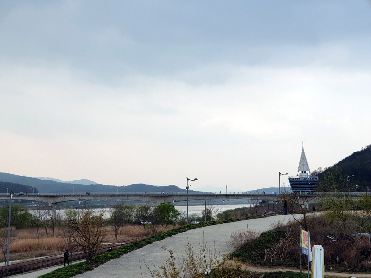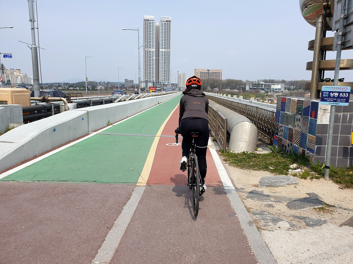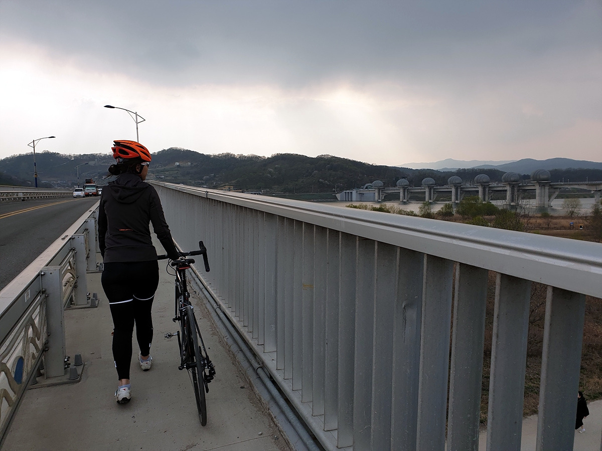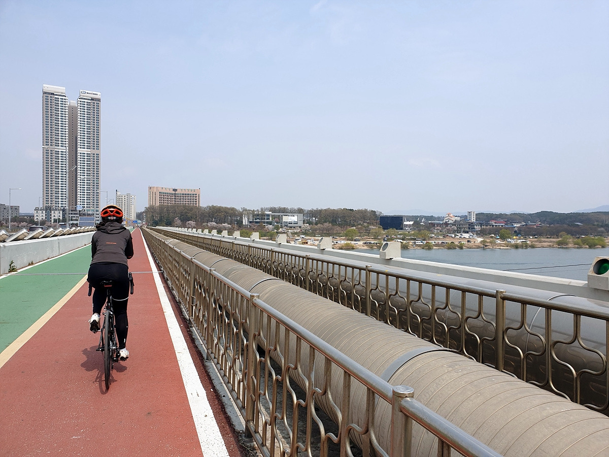 오늘은 남한강 자전거길을 달리러 온 것이 아니다. 여주대교에서 자전거길로 강을 건너 북쪽으로 쭉 올라가야 한다.눈 앞에 보이는 높은 건물은 그냥 아파트다. 서울에서야 고층 아파트가 흔한데 여기에선 혼자 우뚝 솟아 있으니 눈에 띈다.