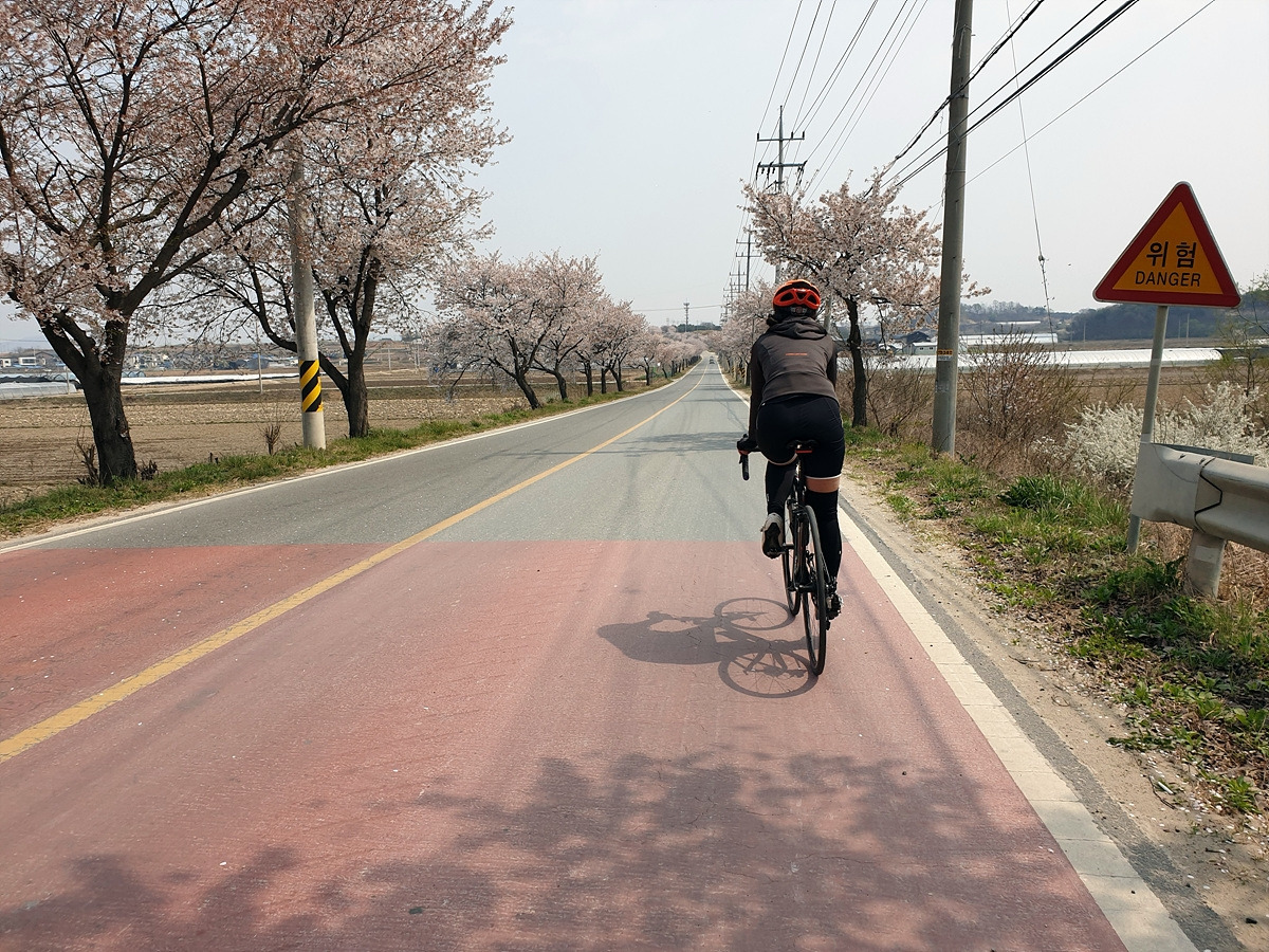 지난 알프스 자전거 여행 후에 오랜만에 자전거를 타러 나왔다. 전체적으로 아주 한적한 코스였고 차량 통행이 많아지는 곳에서 정확하게 자전거길과 만났다. 벚꽃도 실컷 보았으니 아주 훌륭한 코스라 할 수 있겠다.