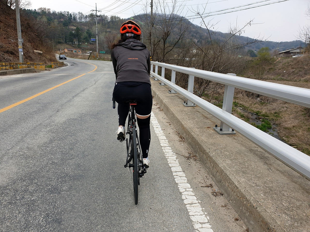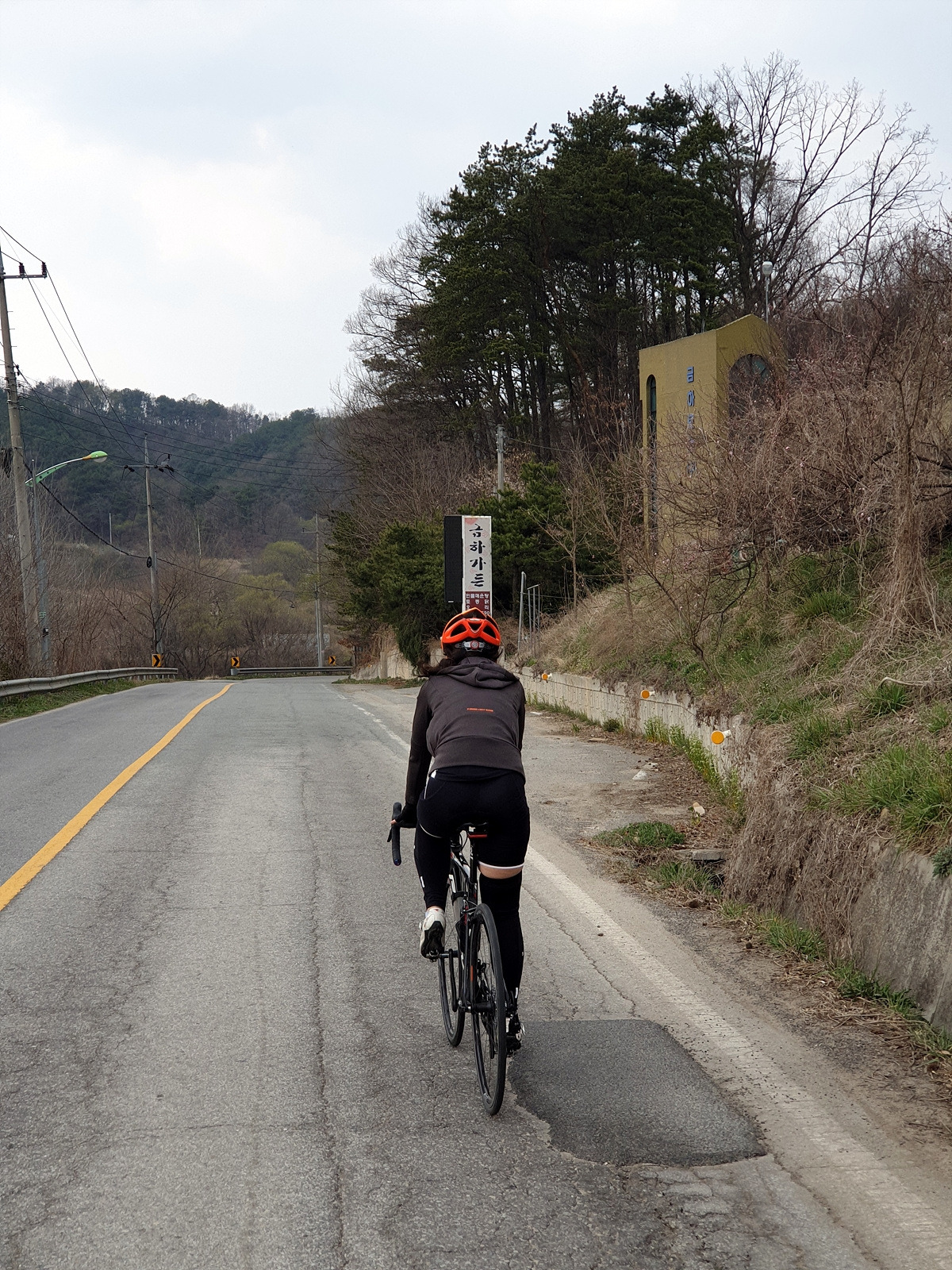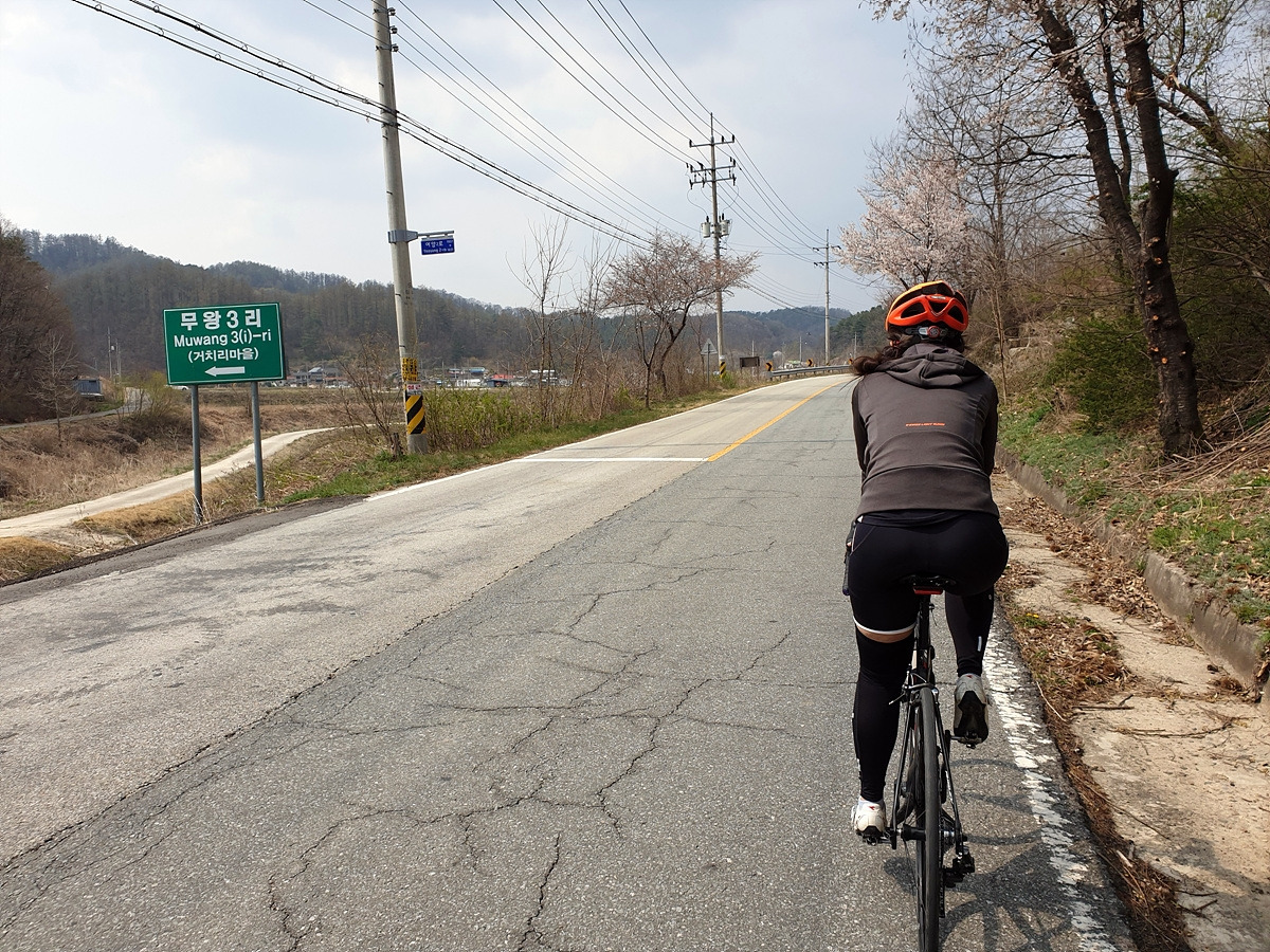 길을 따라 가면 그대로 무왕 1리에서 S자 오르막을 오르게 된다. 지난해 10월부터 반년 동안 자전거를 안 탄 지니님이 슬슬 힘들어한다.
