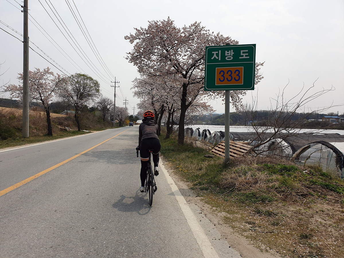 귀백 사거리 로터리에서 333번 지방도를 따라서 좌회전하면 벚꽃길은 끝난다. 그래도 벚나무는 계속 나타난다.