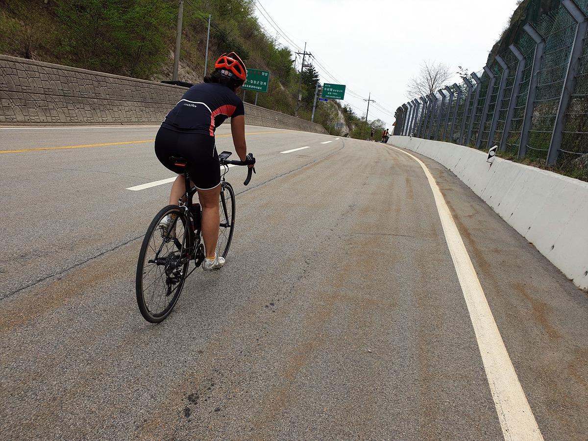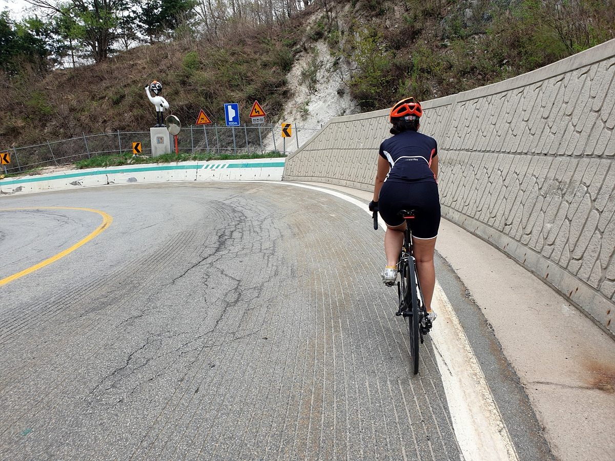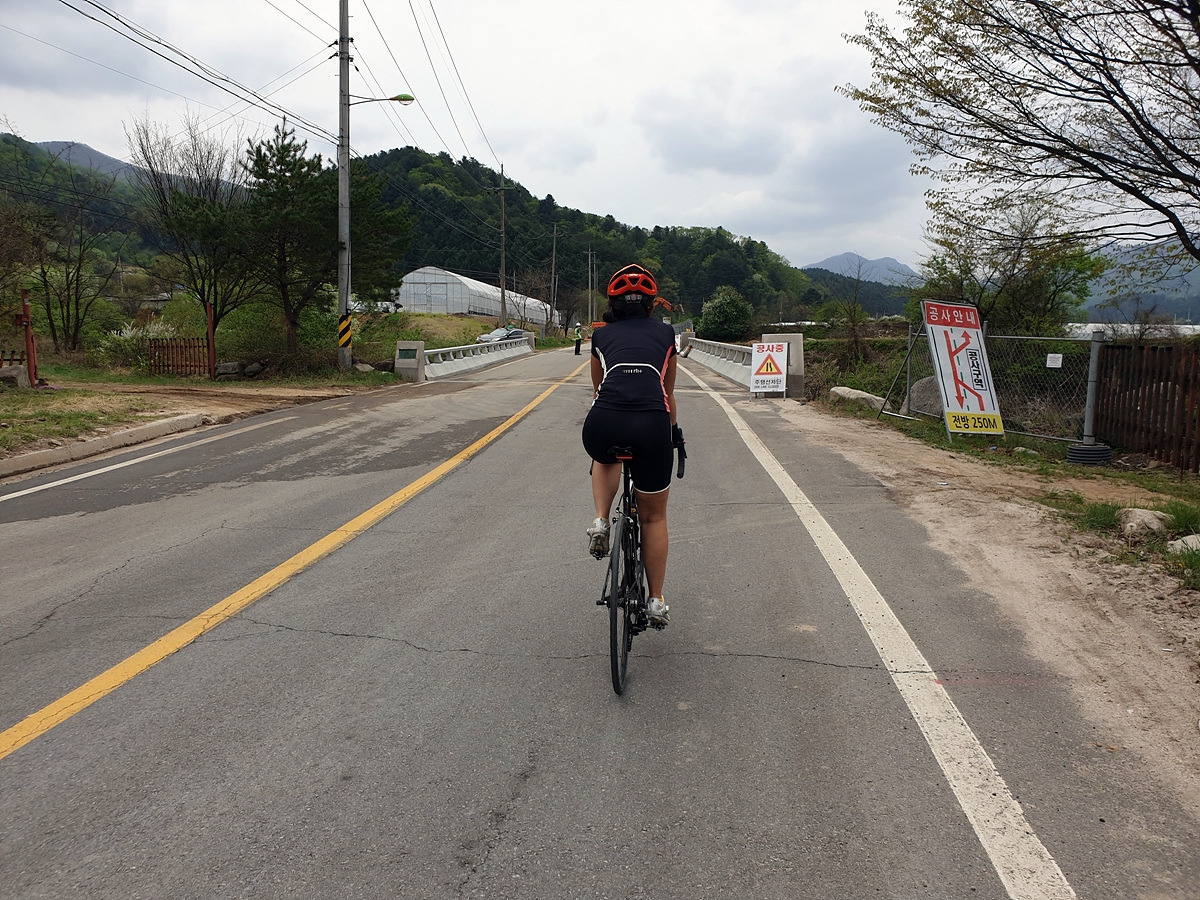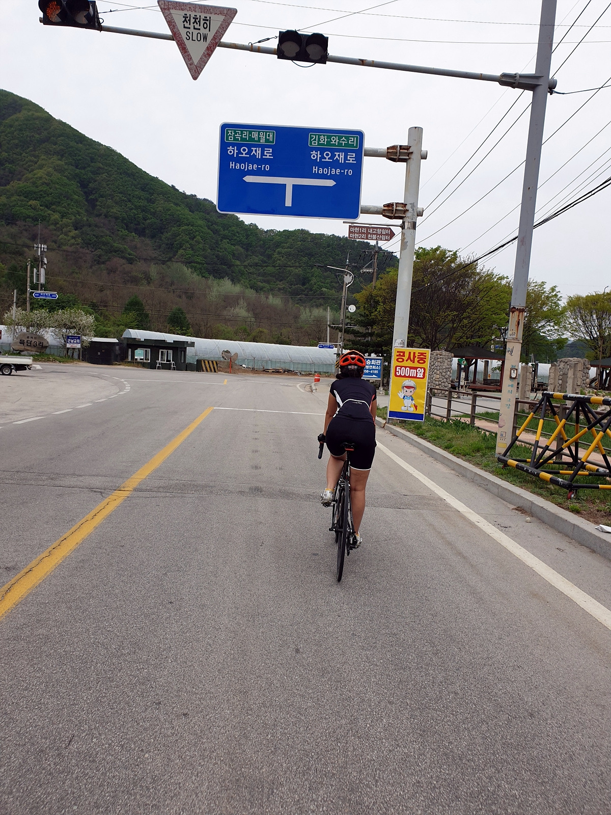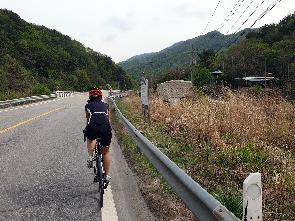 지니님 페이스에 맞춰 천천히 올라가는데 신나게 떠들면서 올라가는 다른 자전거팀이 있다. 그중에 한 분이 우리 글에서 본 지니님을 알아보고 인사를 한다. 이런 시골 구석에서 우리를 알아보는 사람이 있다니 조금 당황했다.