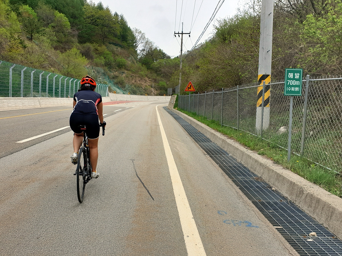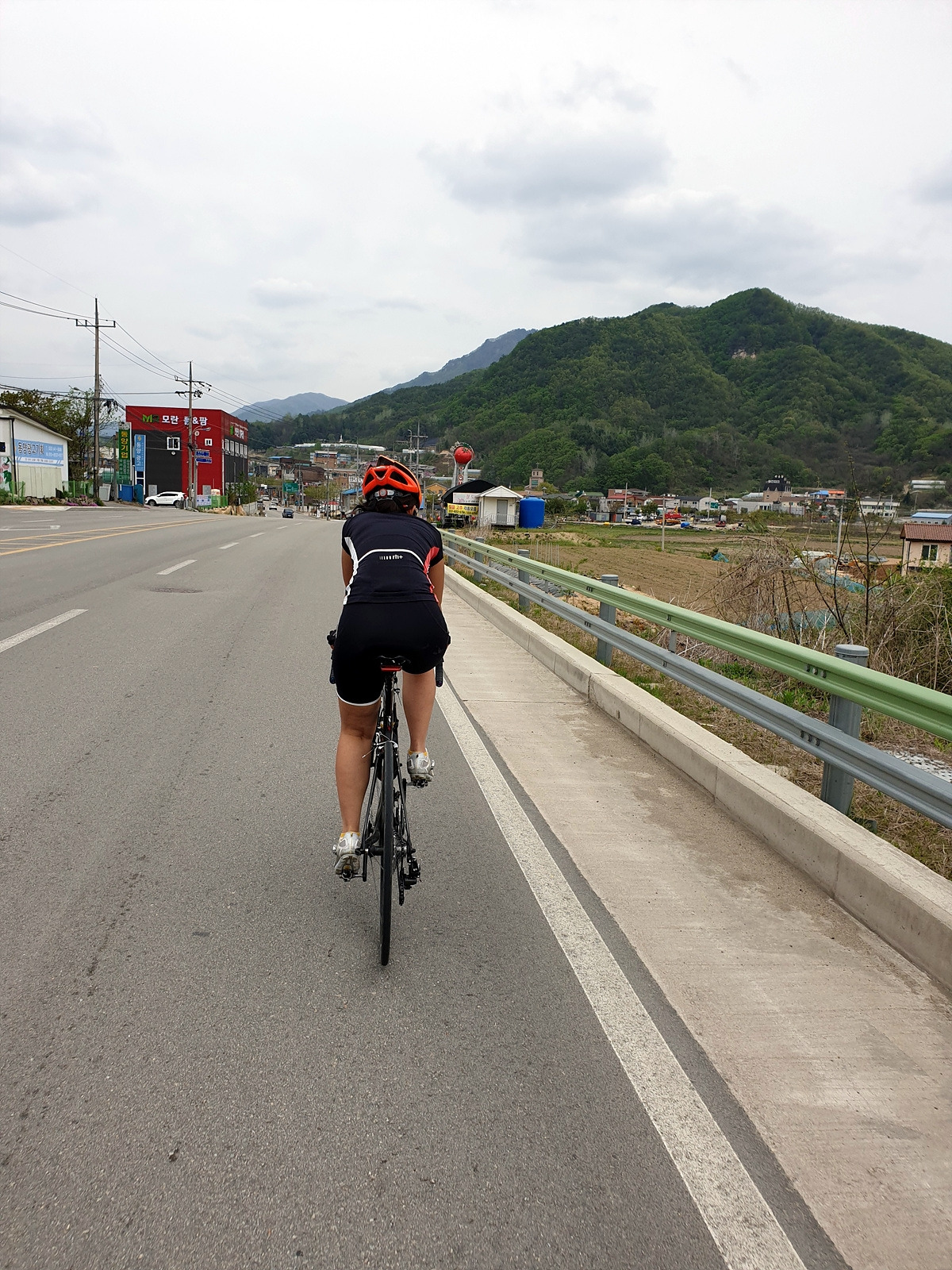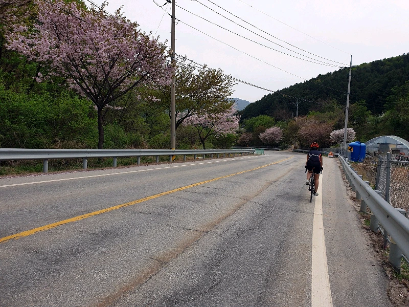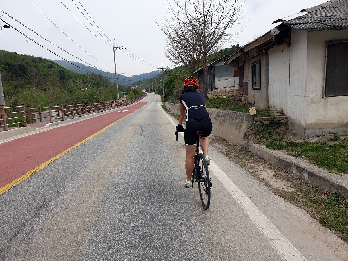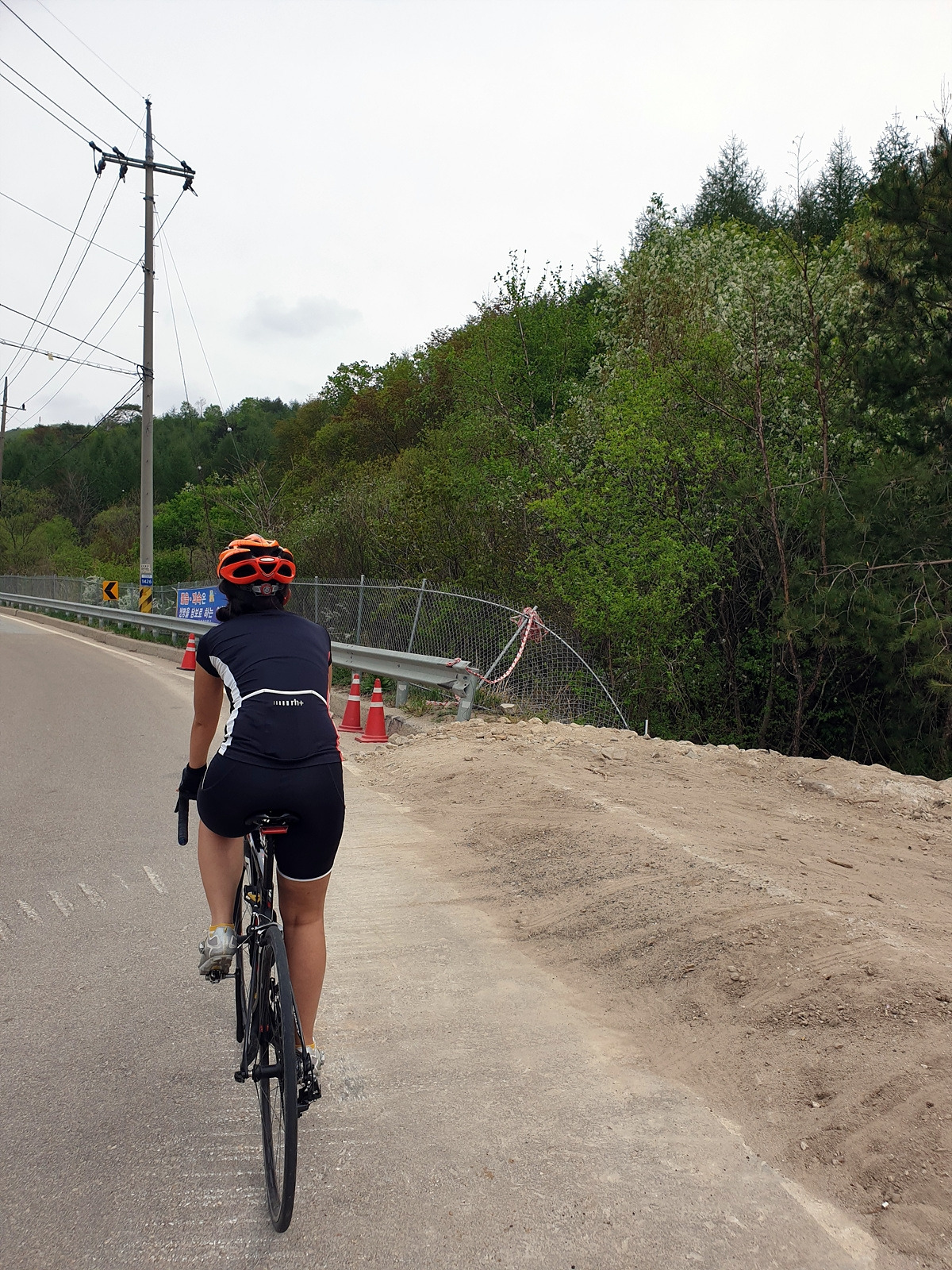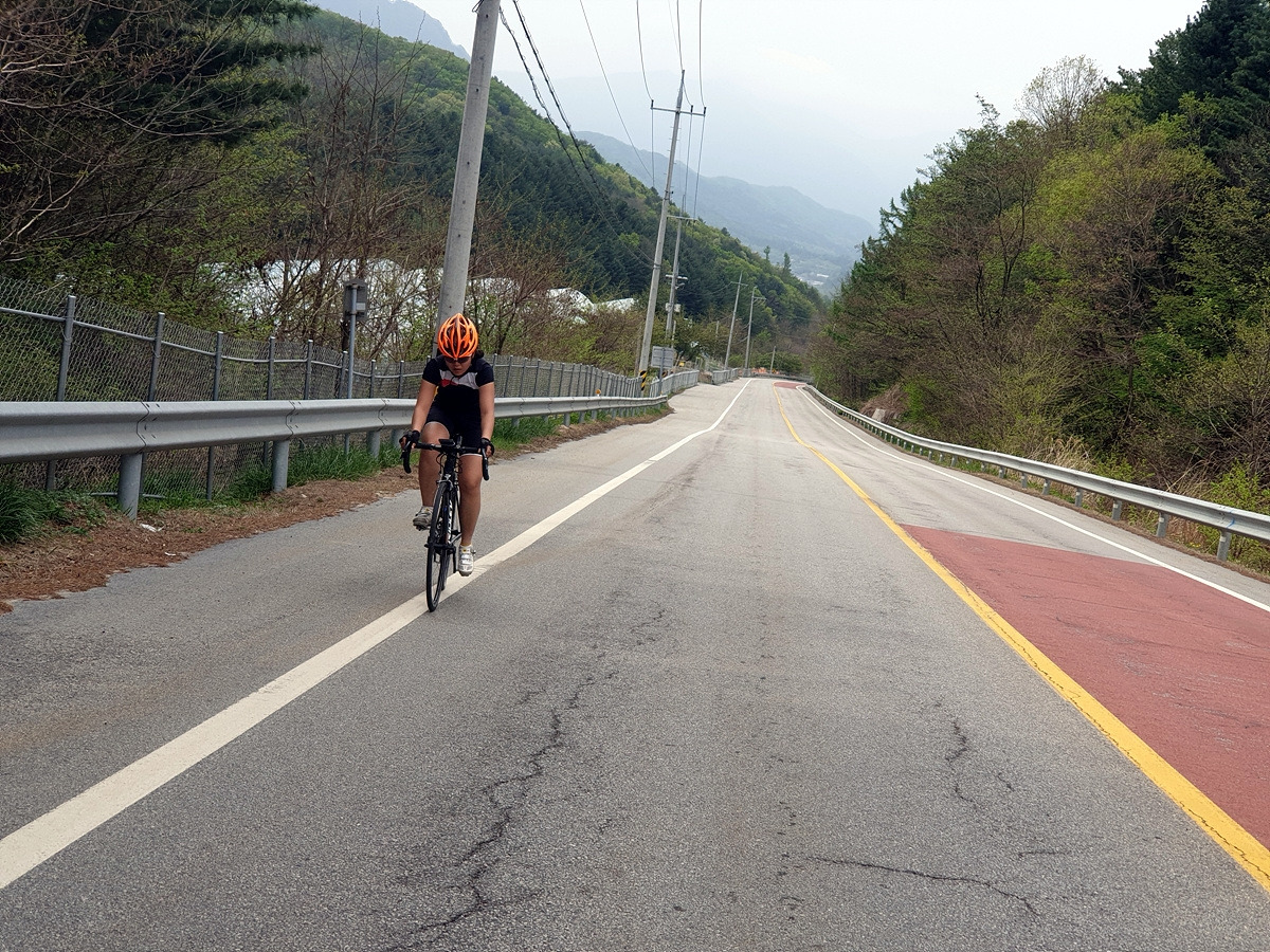 지니님 페이스에 맞춰 천천히 올라가는데 신나게 떠들면서 올라가는 다른 자전거팀이 있다. 그중에 한 분이 우리 글에서 본 지니님을 알아보고 인사를 한다. 이런 시골 구석에서 우리를 알아보는 사람이 있다니 조금 당황했다.