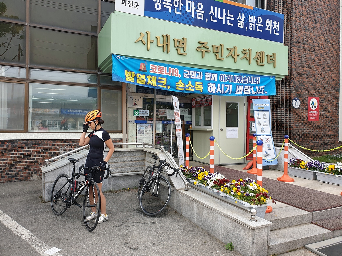 화천군 사내면사무소에 주차를 하고 출발한다. 화장실이 사무실 밖 복도에 있어서 화장실을 이용하기도 편한 곳이다.
