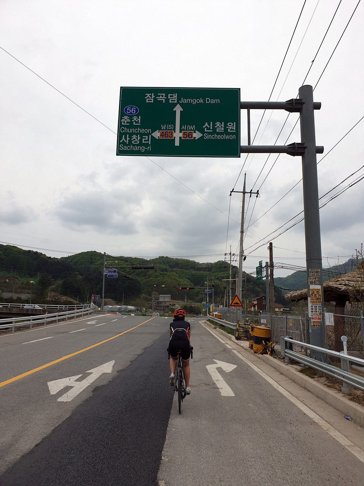 지난번에 철원으로 갔던 사거리를 만난다. 여기서 사창리 방향으로 달린다.