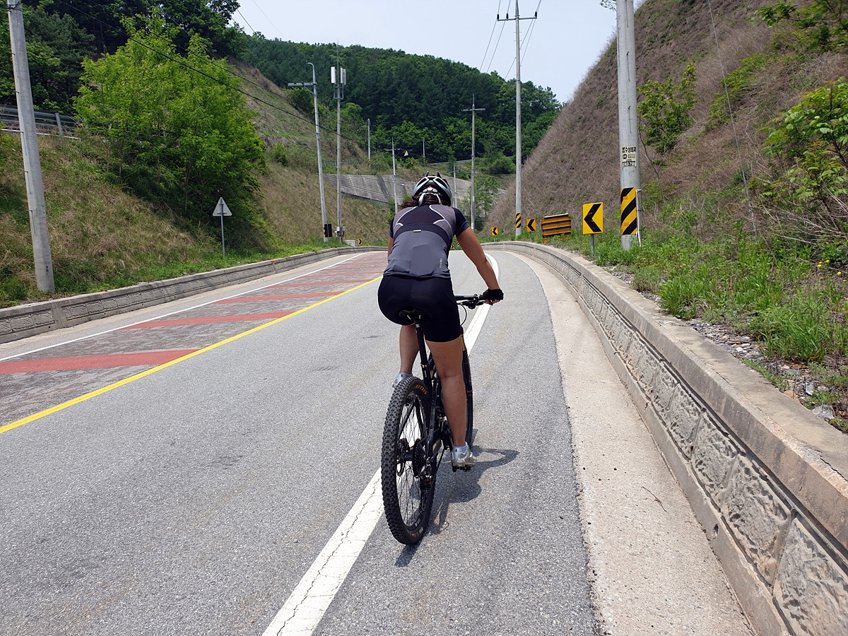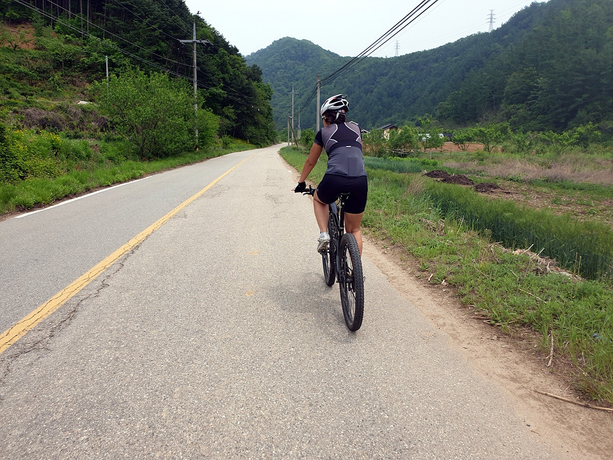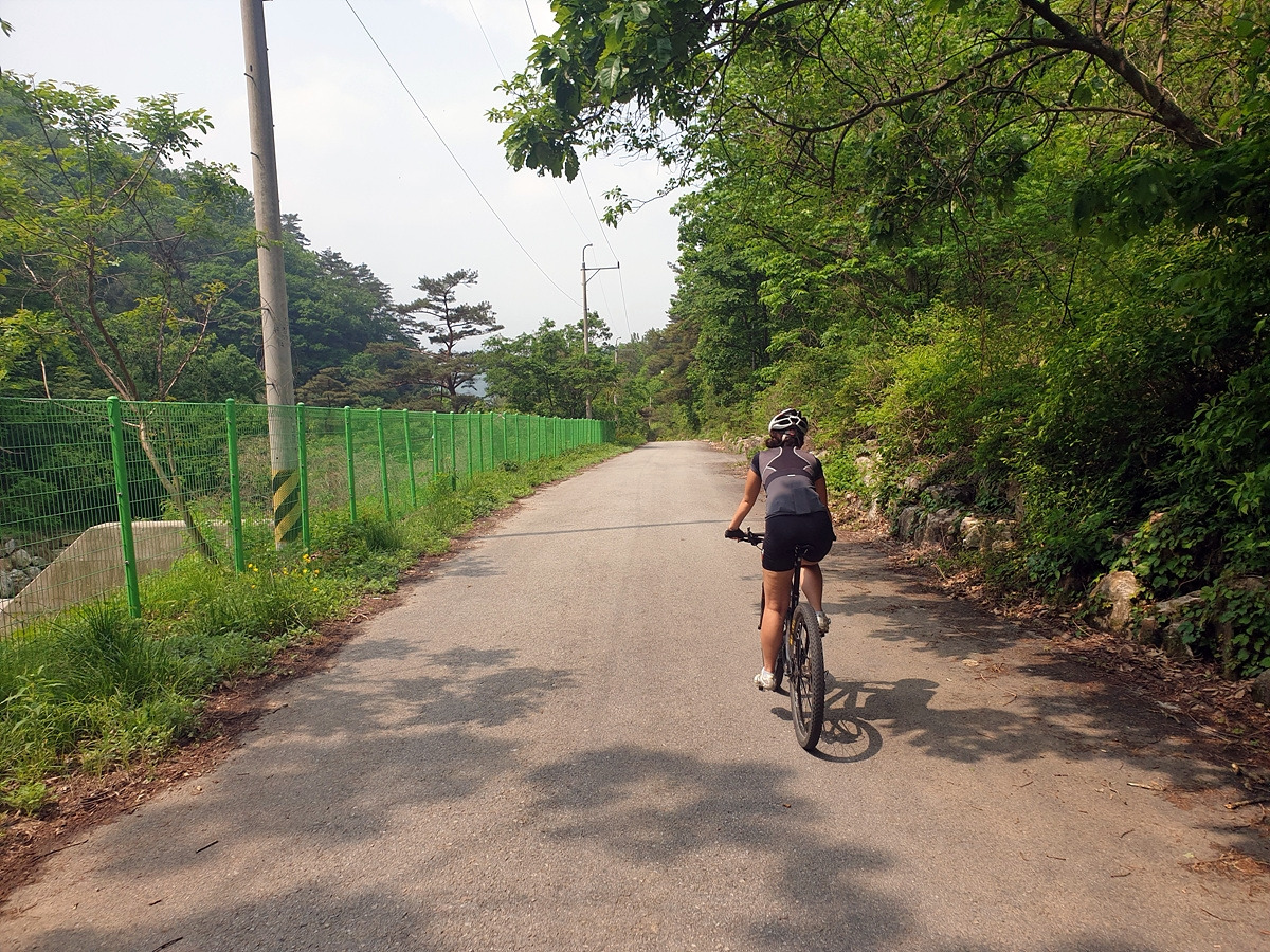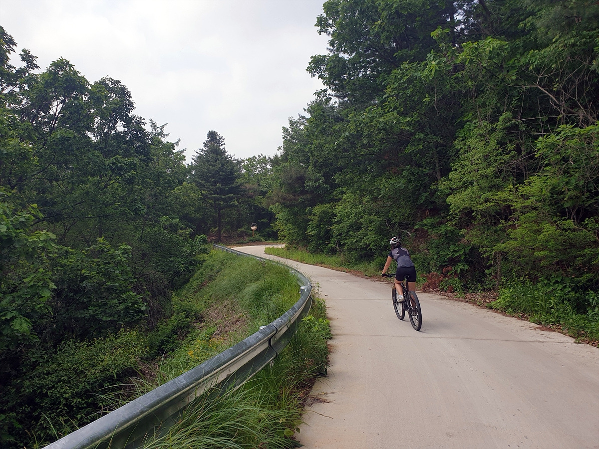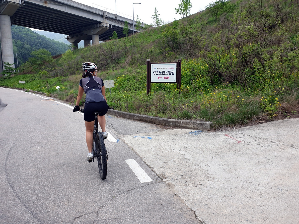 도로 자체는 포장 상태가 좋지만 로드 기어비로는 조금 힘든 오르막길이 계속된다. 오랜만에 타는 MTB라 그런지 지니님이 조금 힘들어한다.요양원이 있어서 그런지 차들이 가끔 지나간다.