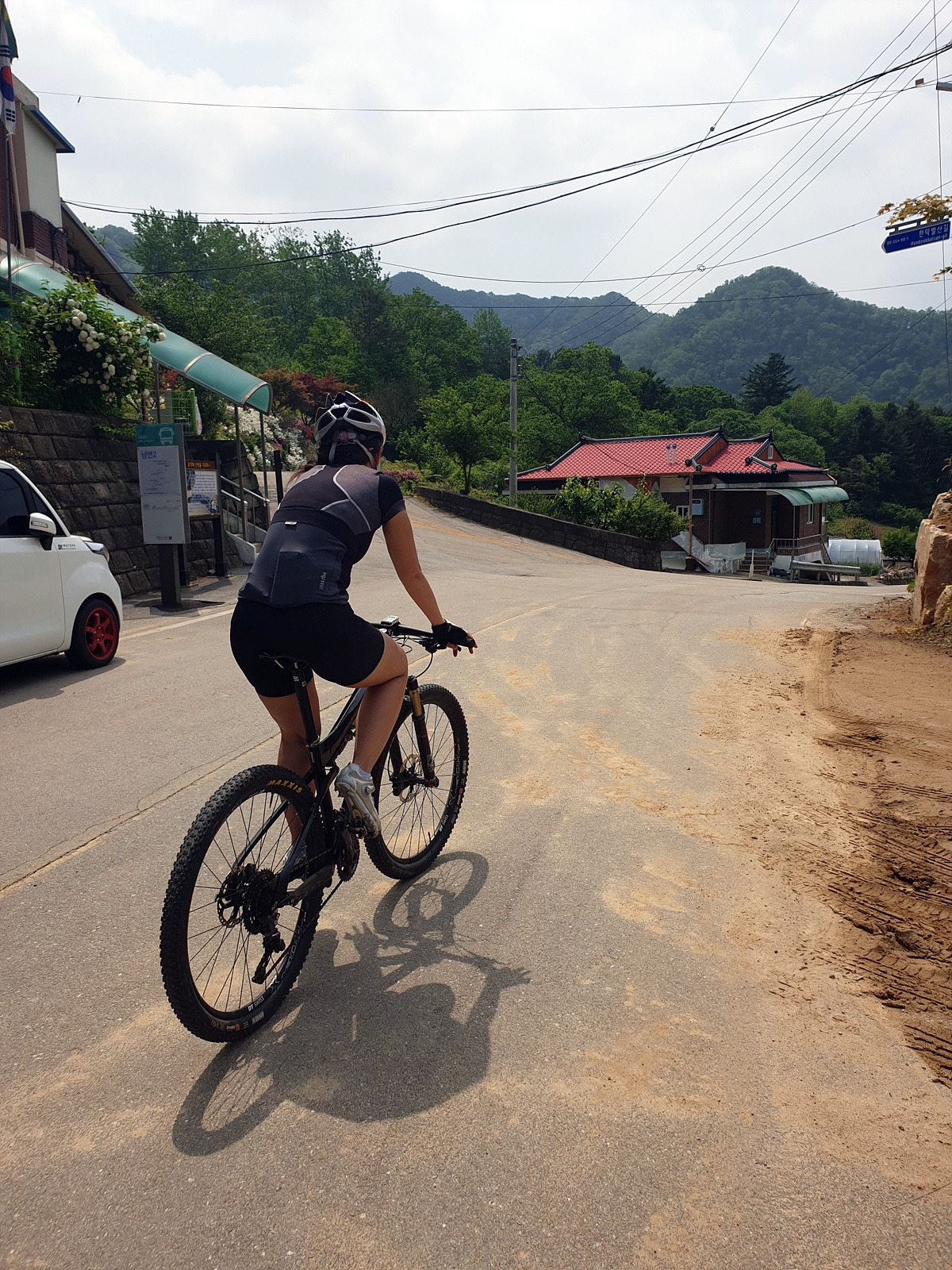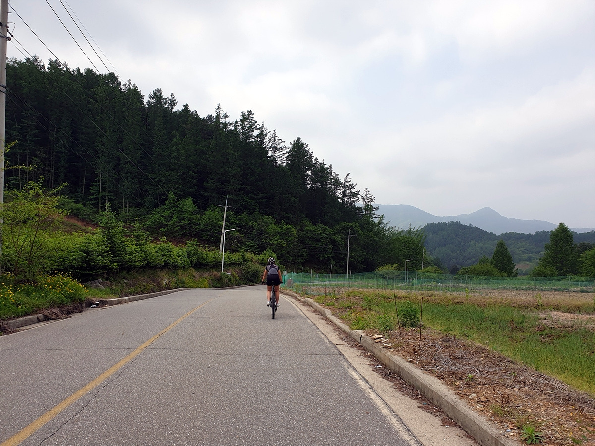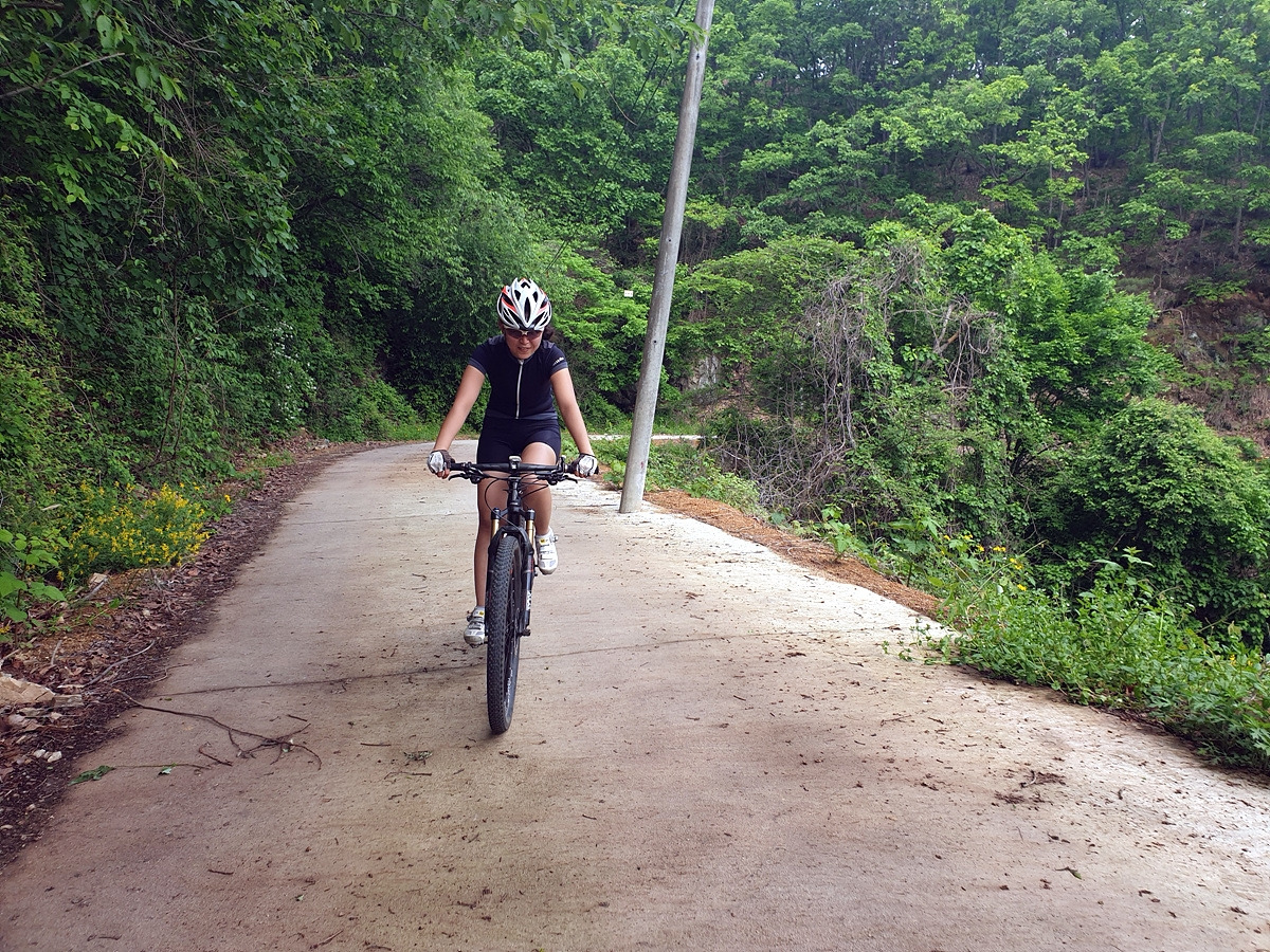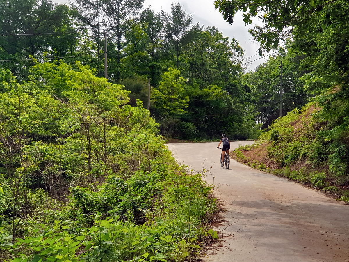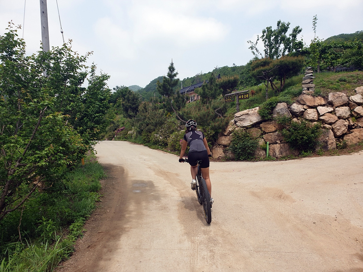 도로 자체는 포장 상태가 좋지만 로드 기어비로는 조금 힘든 오르막길이 계속된다. 오랜만에 타는 MTB라 그런지 지니님이 조금 힘들어한다.요양원이 있어서 그런지 차들이 가끔 지나간다.