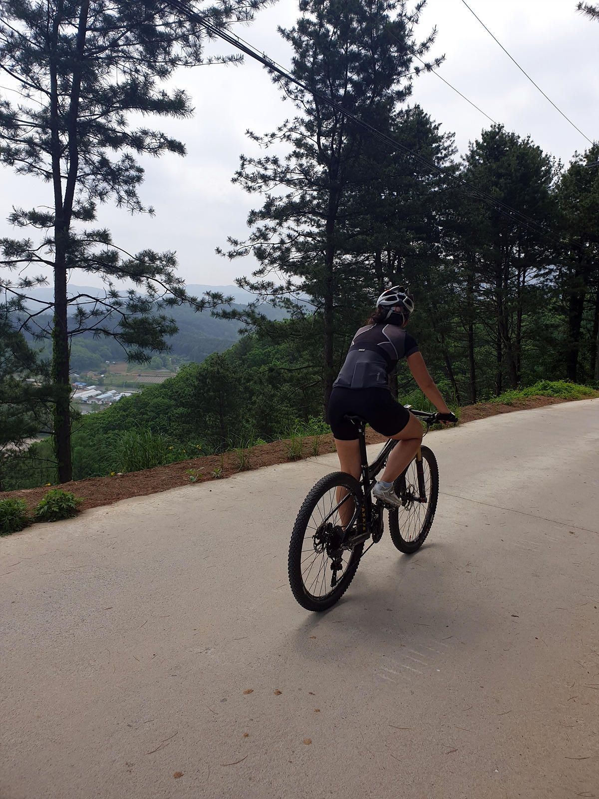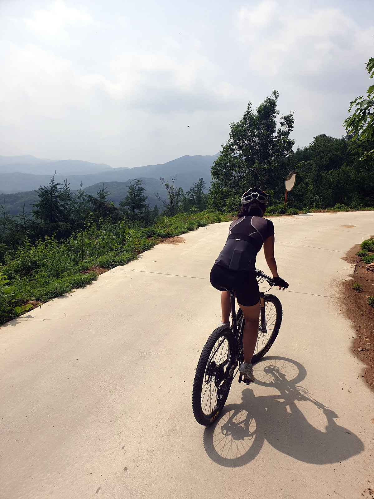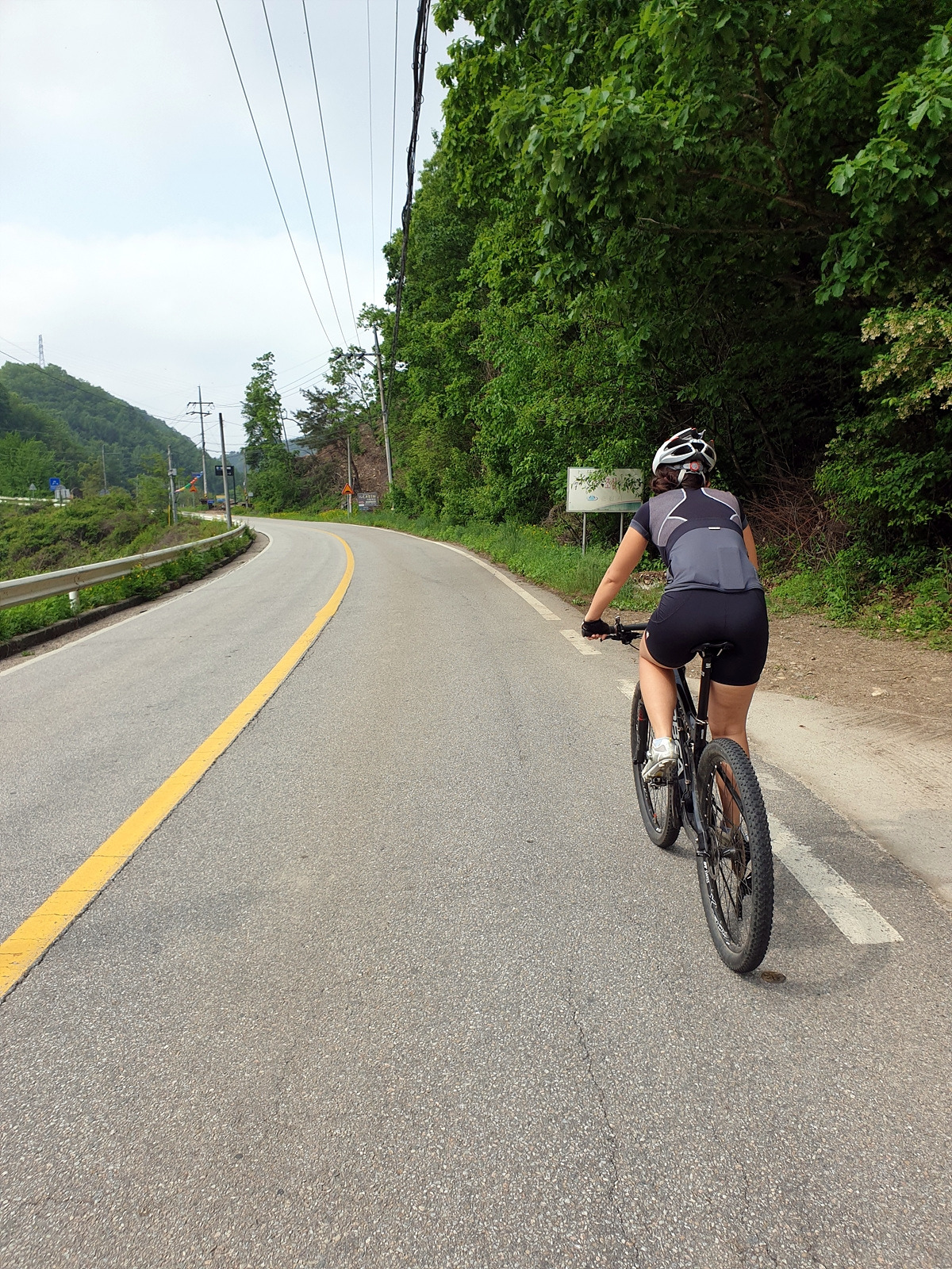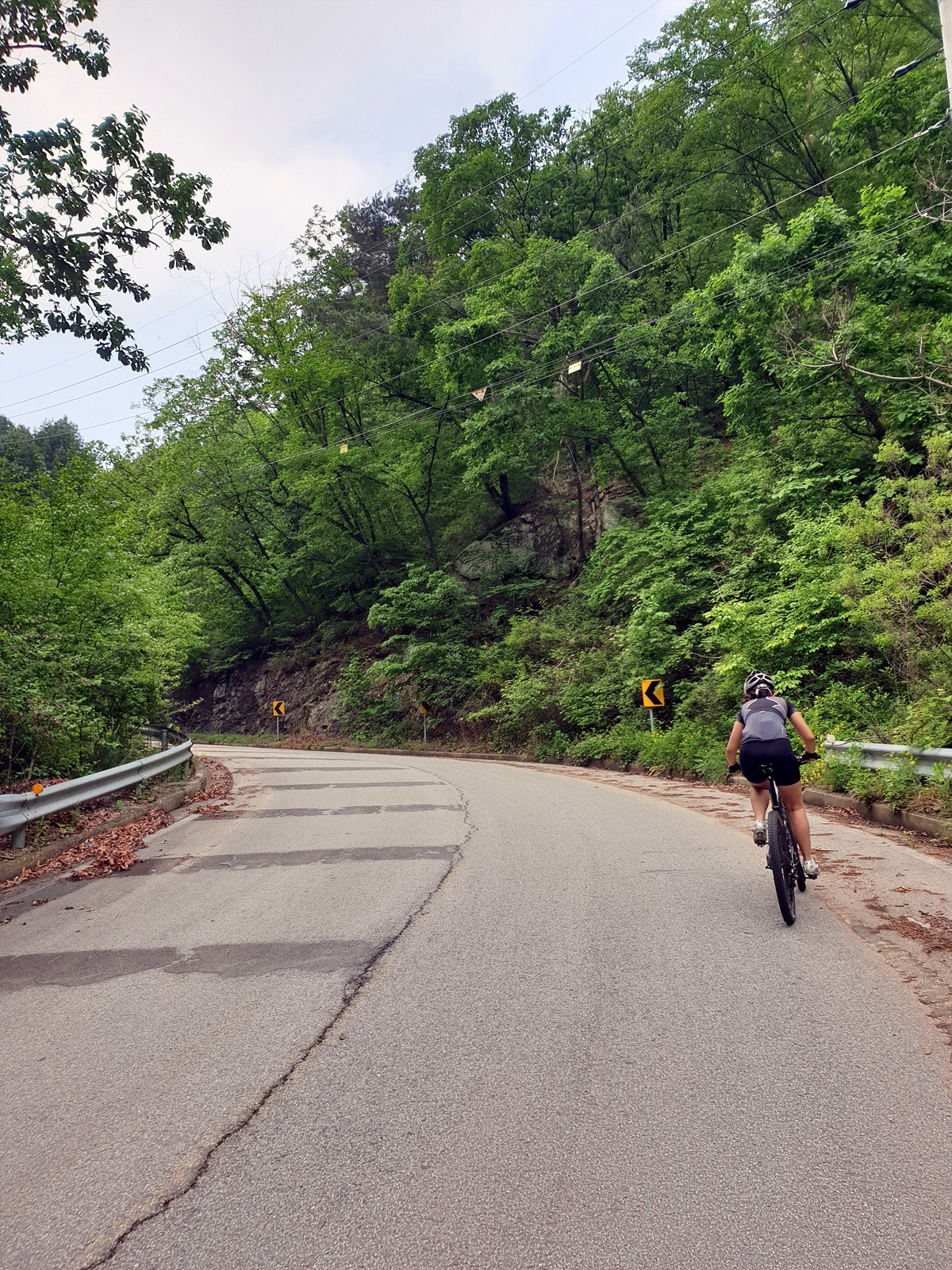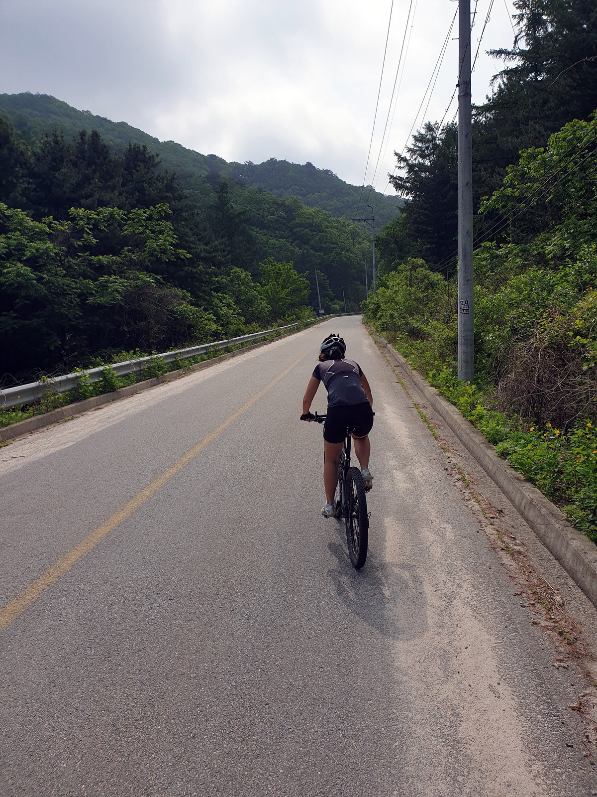 도로 자체는 포장 상태가 좋지만 로드 기어비로는 조금 힘든 오르막길이 계속된다. 오랜만에 타는 MTB라 그런지 지니님이 조금 힘들어한다.요양원이 있어서 그런지 차들이 가끔 지나간다.
