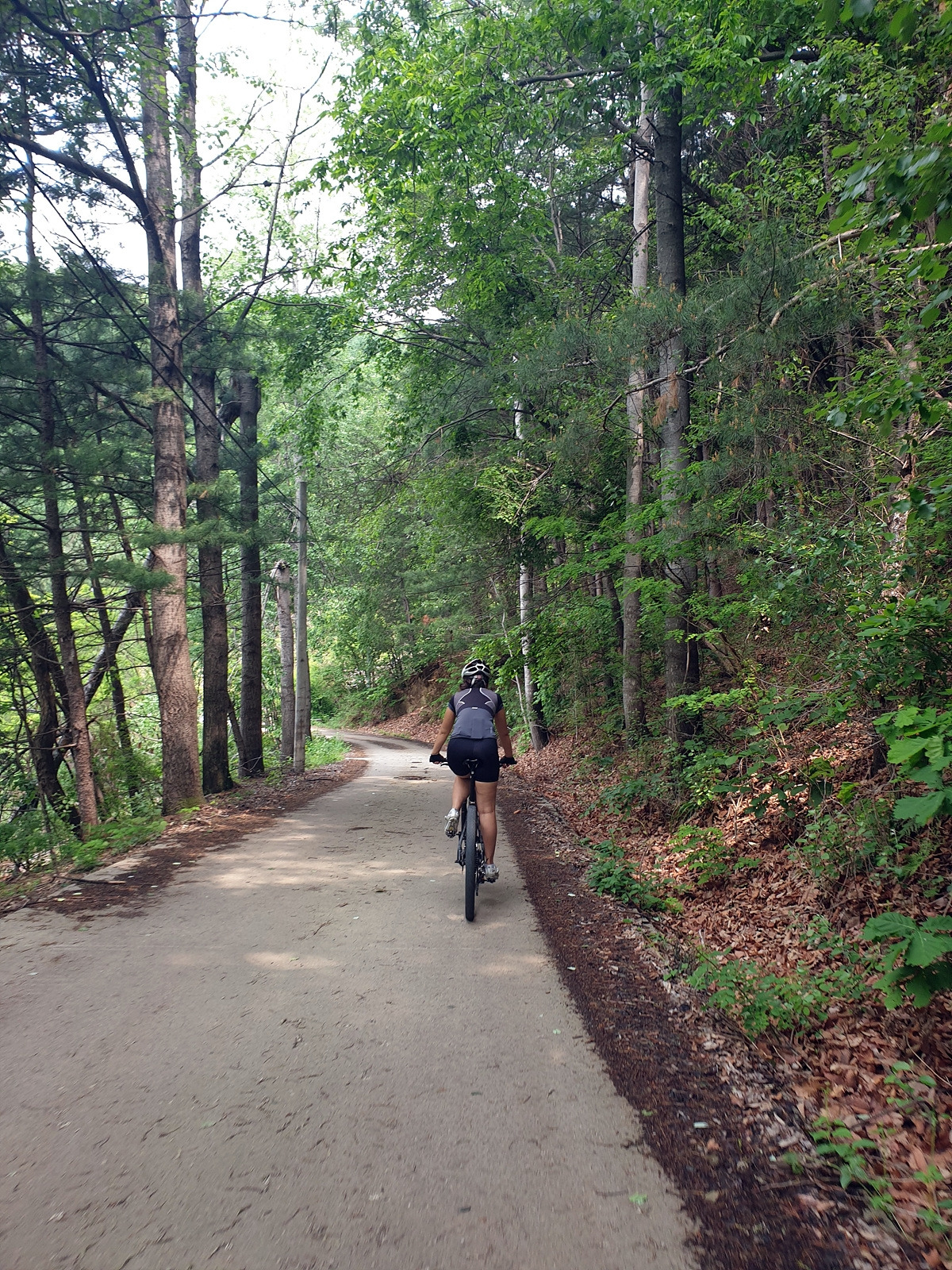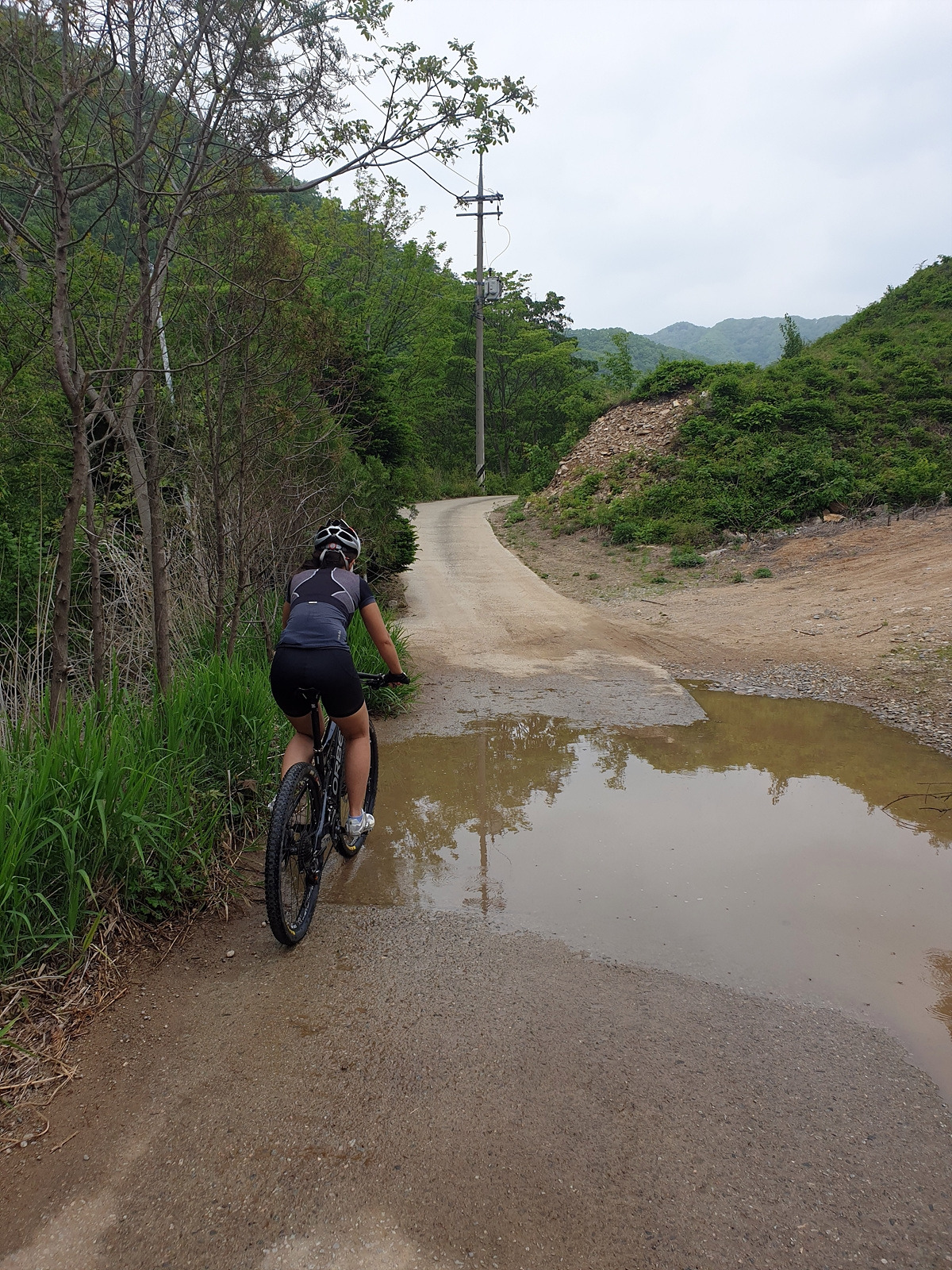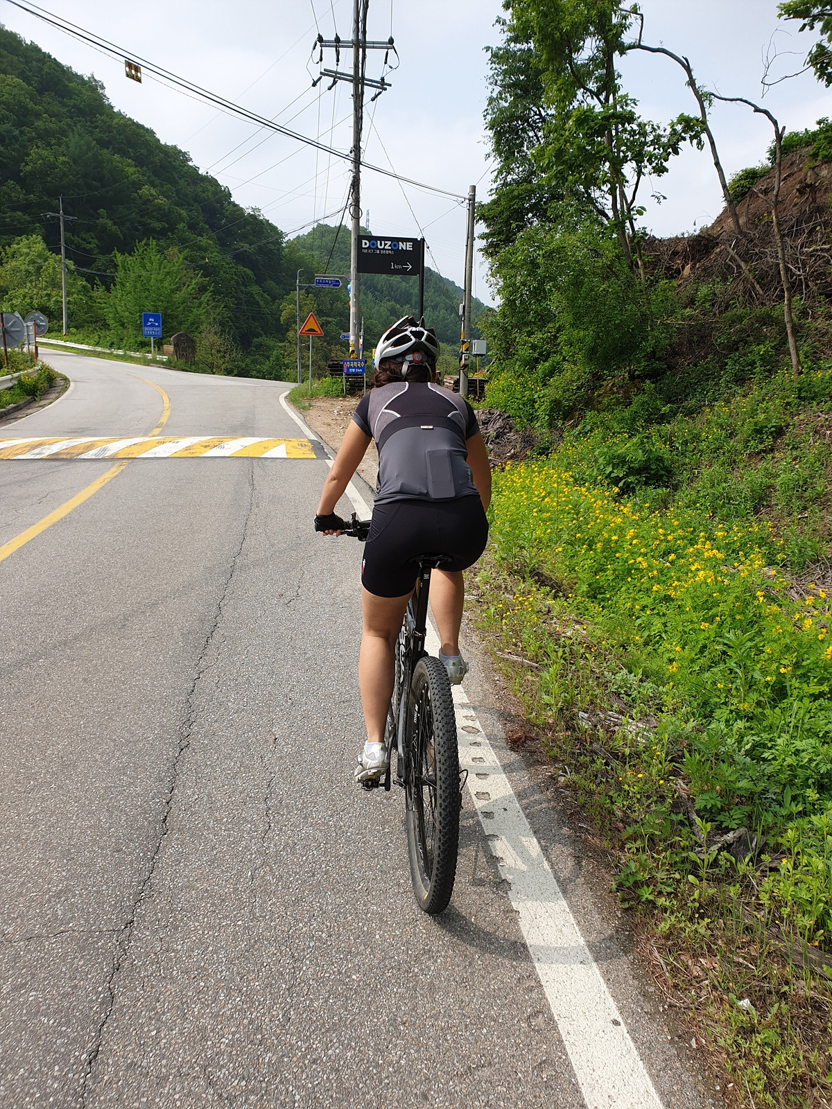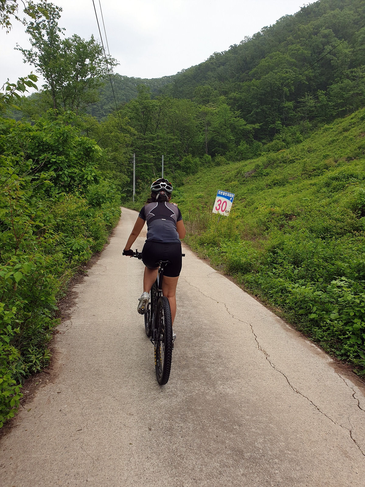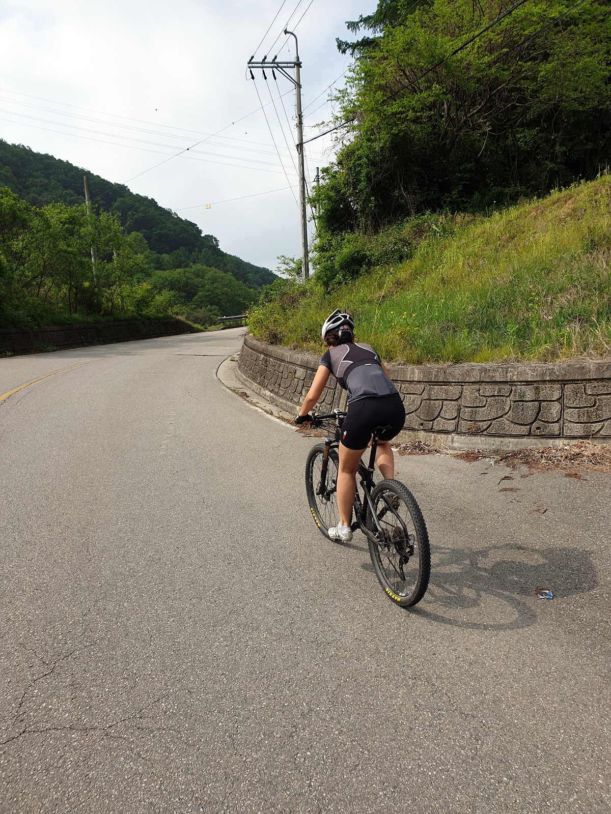 도로 자체는 포장 상태가 좋지만 로드 기어비로는 조금 힘든 오르막길이 계속된다. 오랜만에 타는 MTB라 그런지 지니님이 조금 힘들어한다.요양원이 있어서 그런지 차들이 가끔 지나간다.