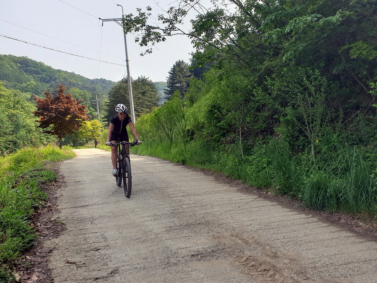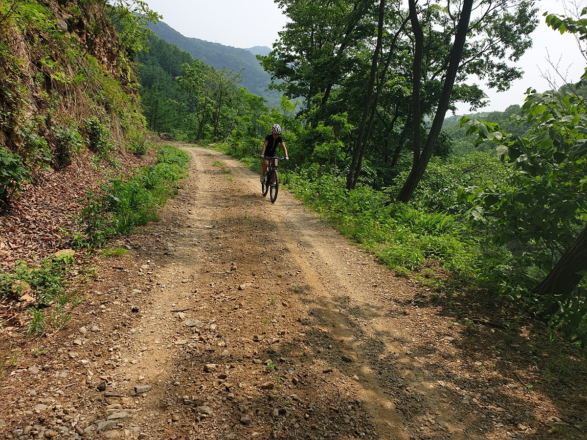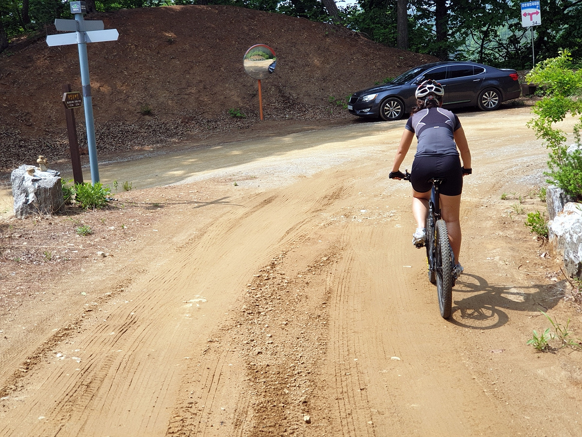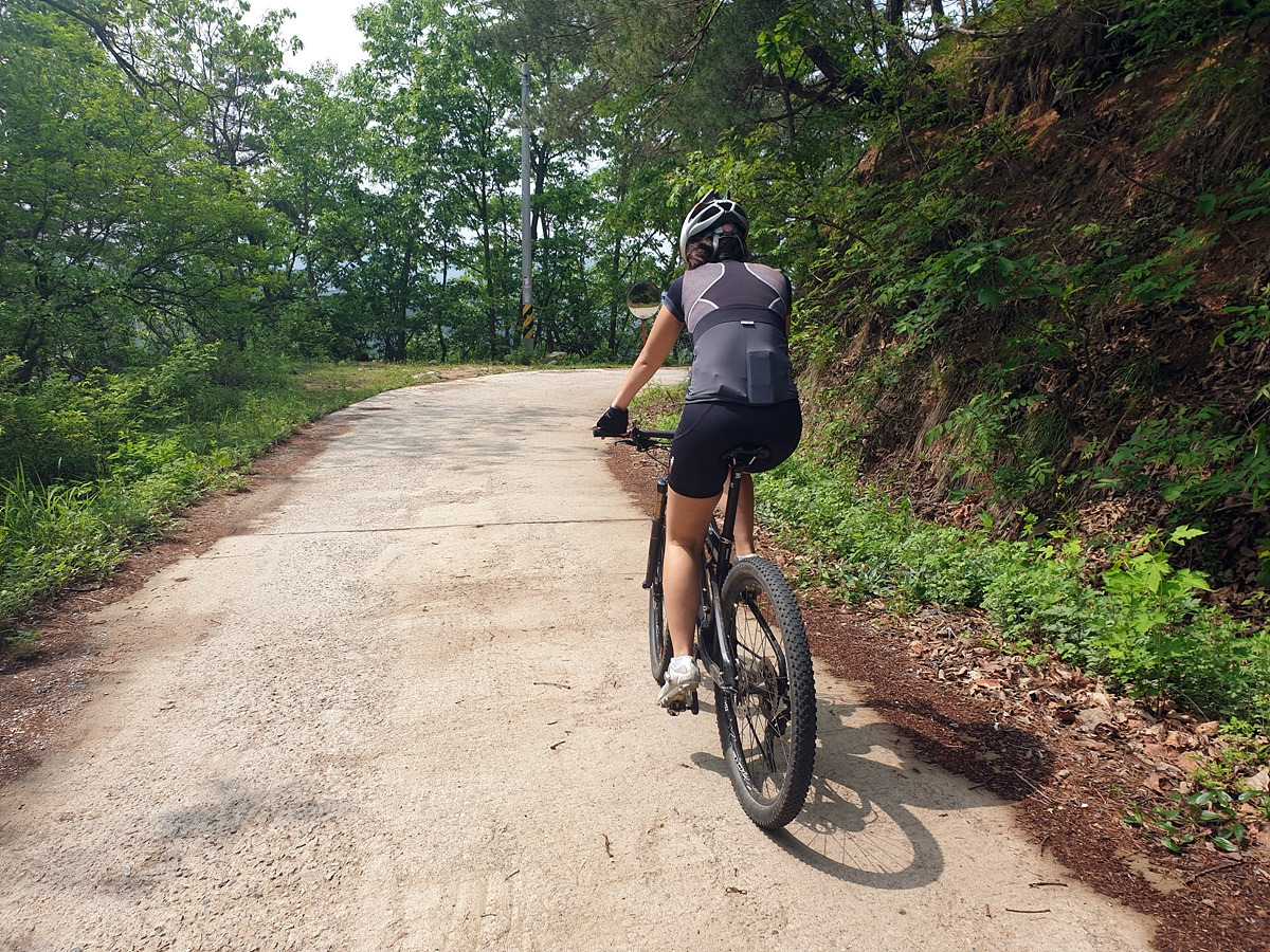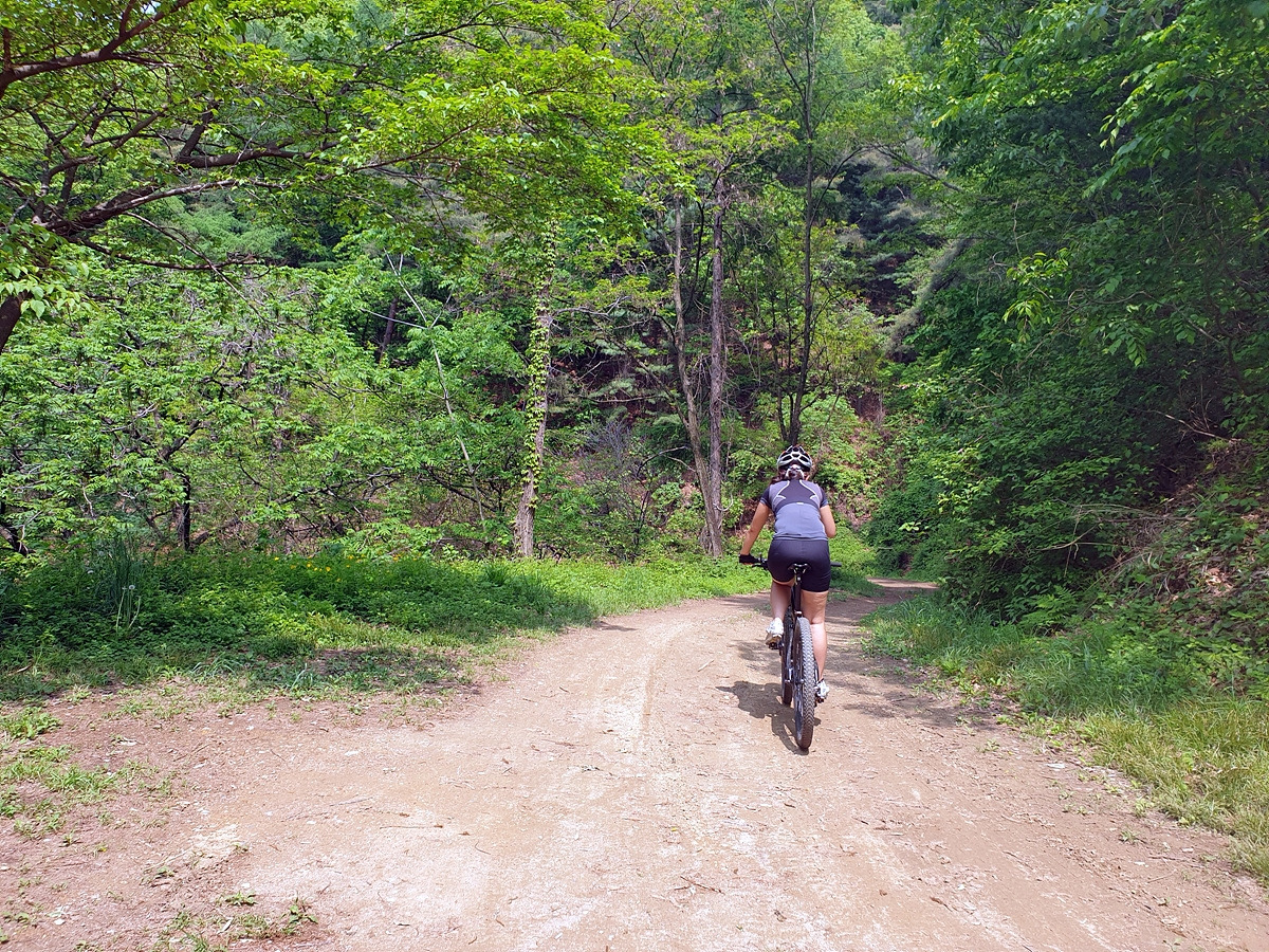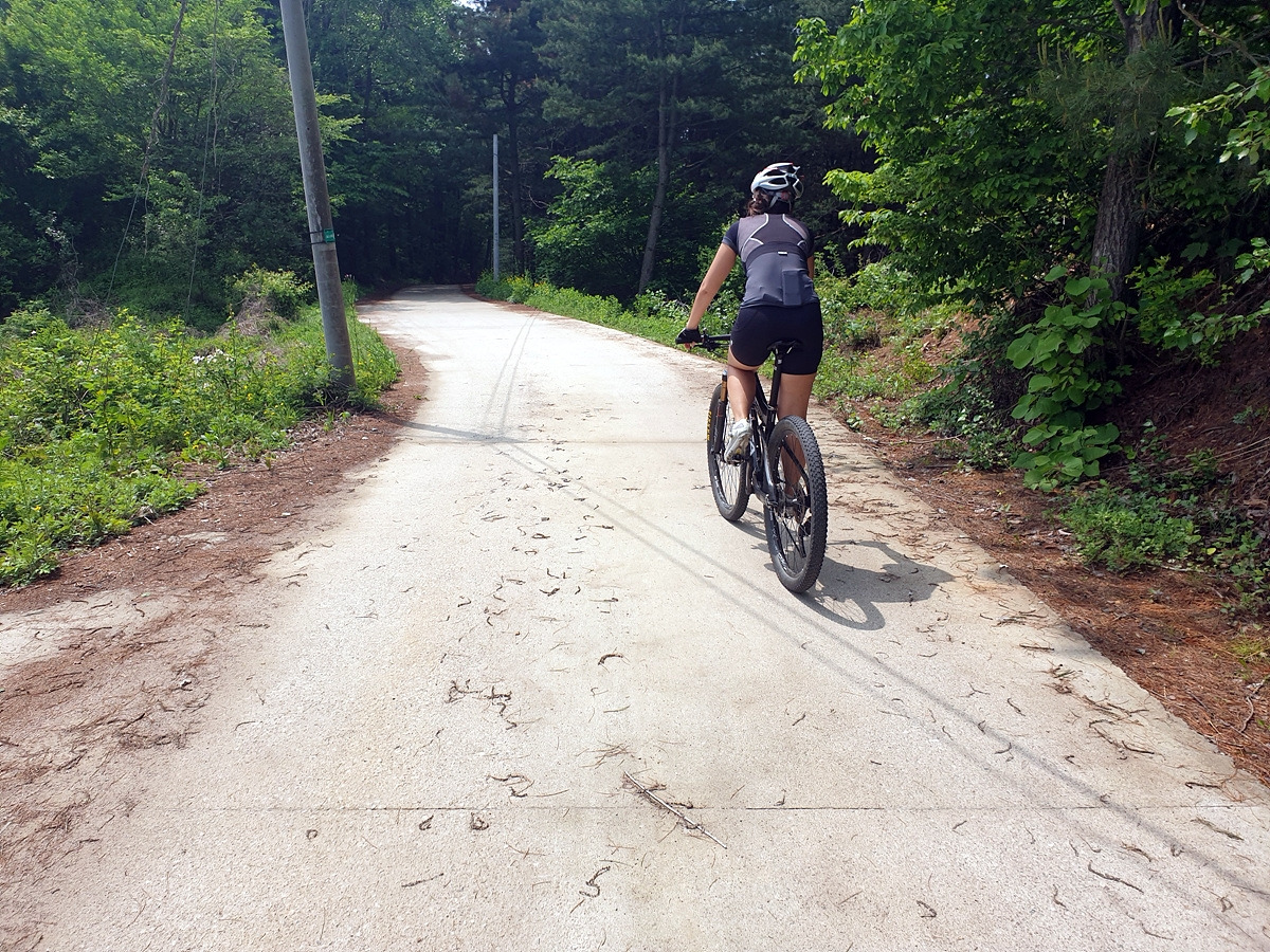 승용차들도 다닐 수 있을 정도의 임도니 산악자전거로 다니기에는 어렵지 않은 곳이다. 그래도 오르막길이라 힘들다.