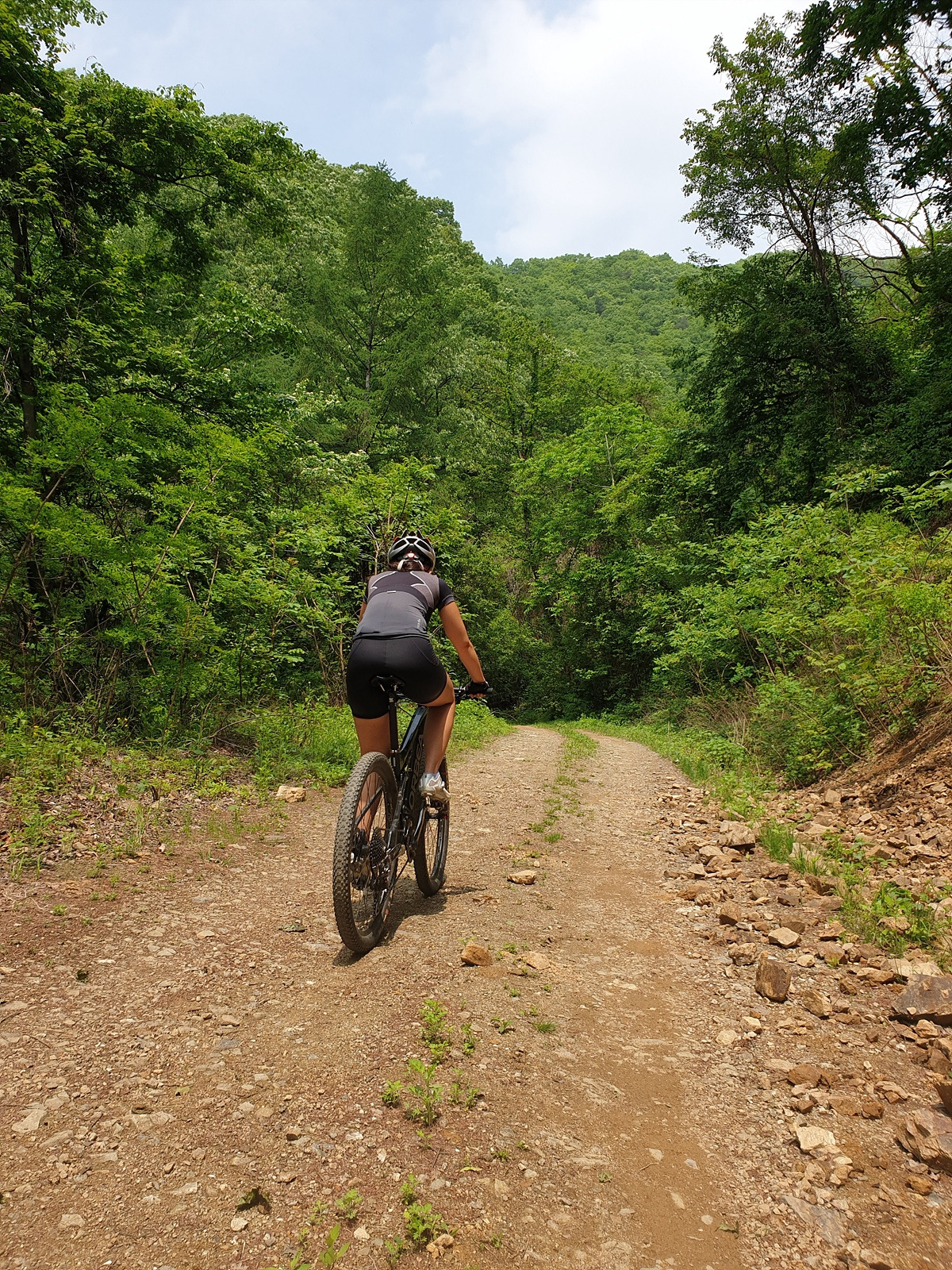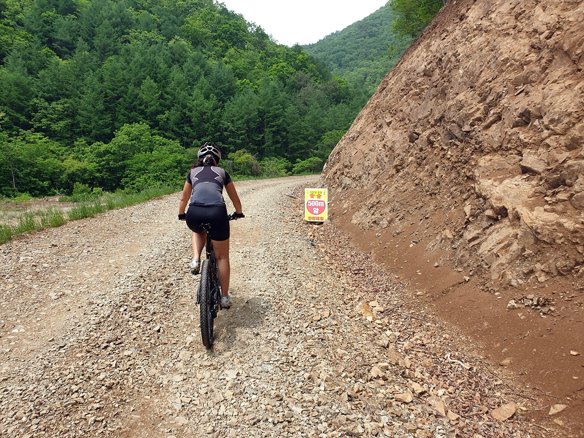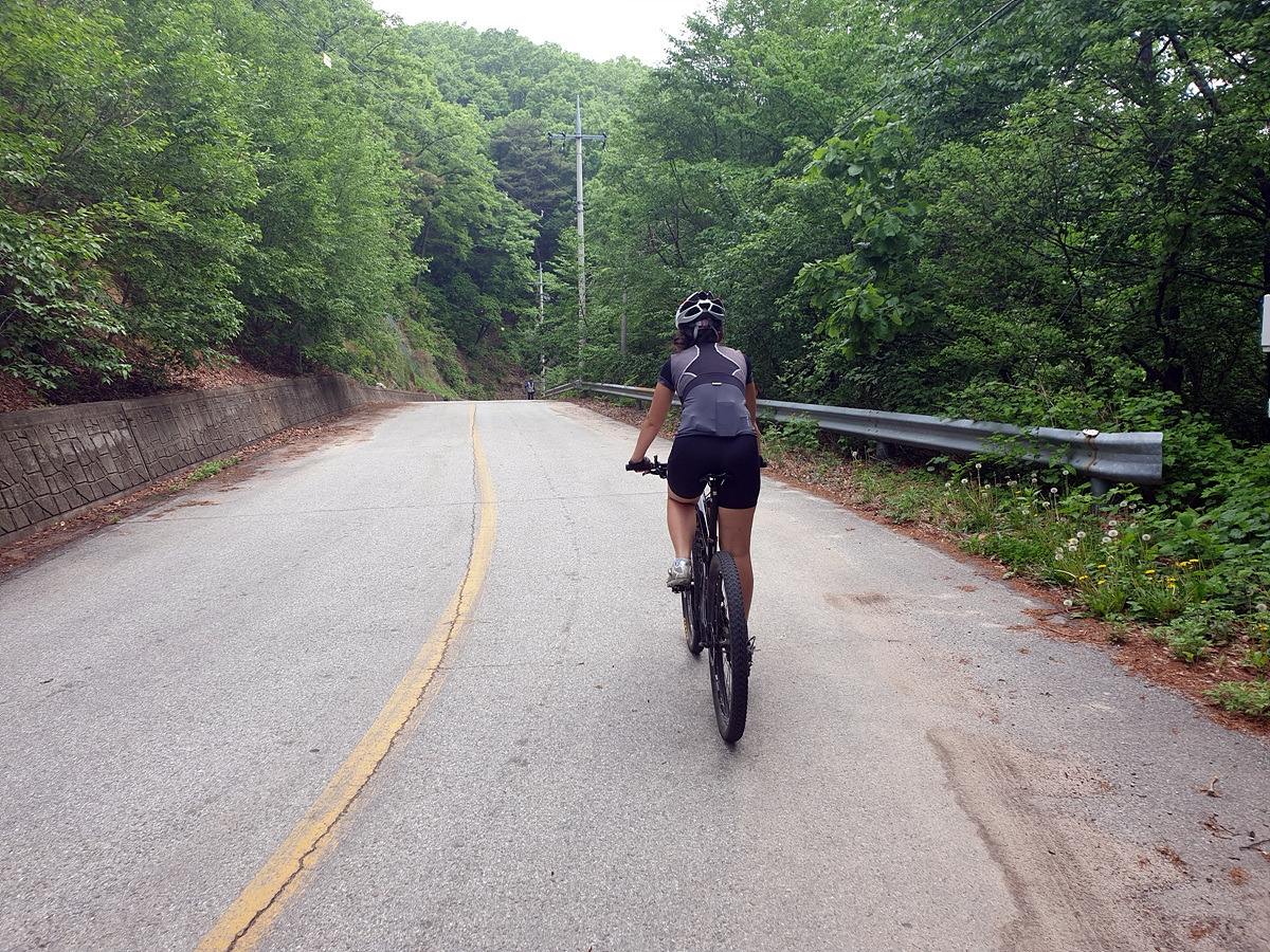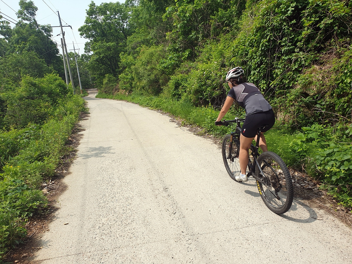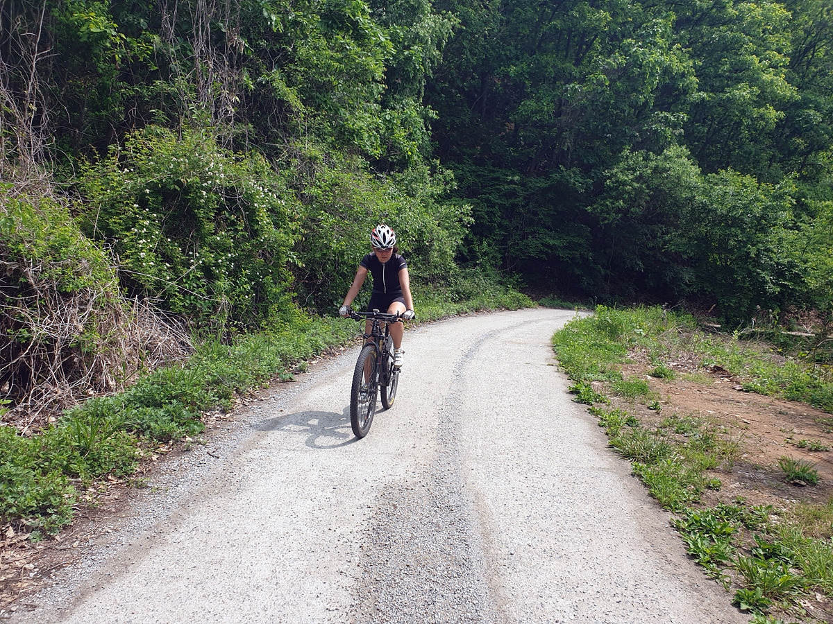 승용차들도 다닐 수 있을 정도의 임도니 산악자전거로 다니기에는 어렵지 않은 곳이다. 그래도 오르막길이라 힘들다.