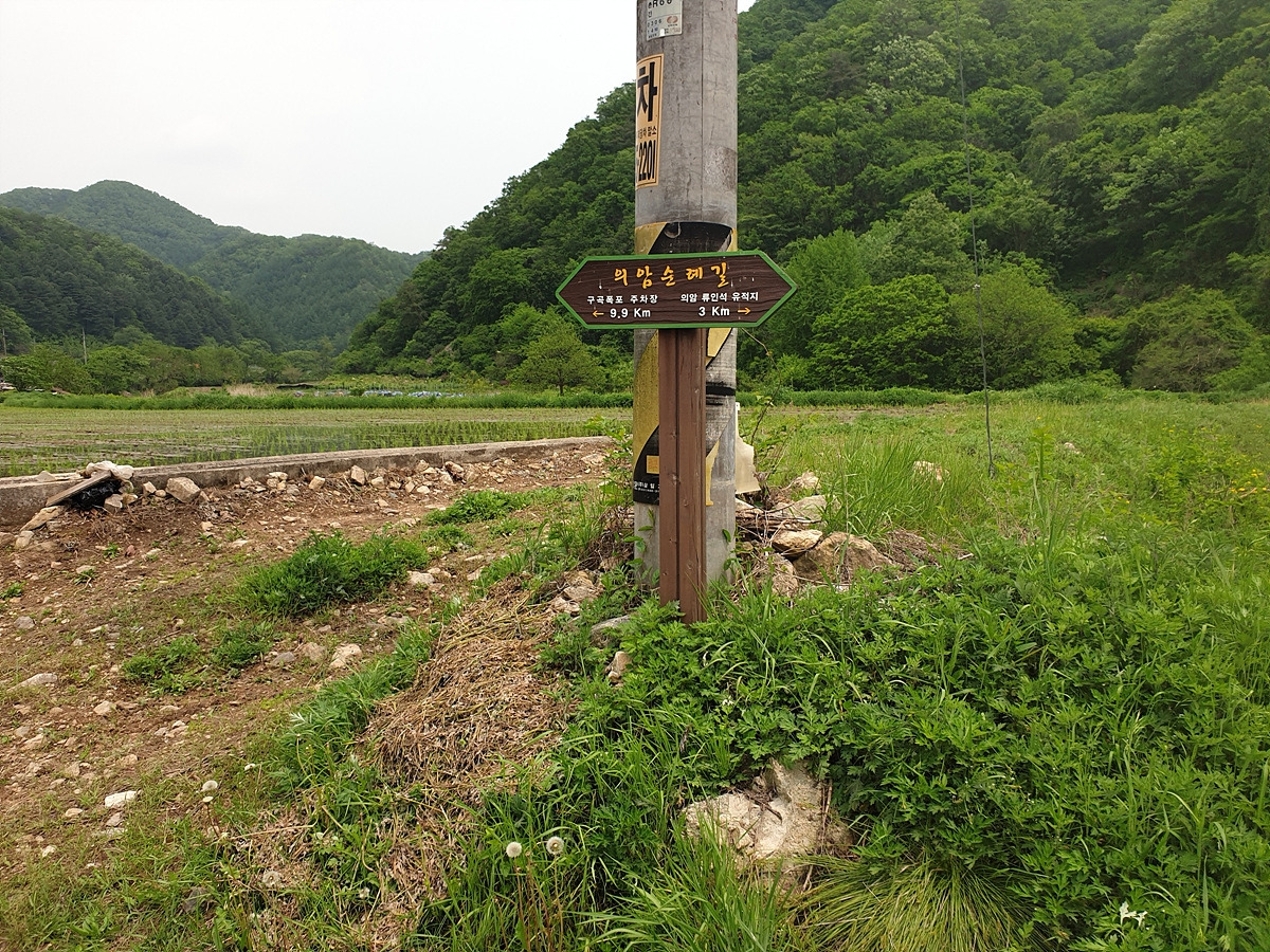 의암 류인석 선생 유적지부터 구곡폭포 주차장까지 구간은 춘천 봄내길 2-1 코스인 의암순례길이다. 순환 코스가 아닌 13km의 짧지 않은 편도 코스인 데다가 가정리 쪽은 특히나 교통이 그리 좋지 않은 곳이라 실제로 걷는 사람은 못 본 것 같다. 우리도 이 길은 산악자전거로만 지나다닌다.