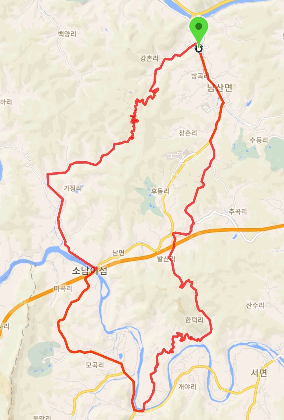 일단 강촌IC 근처로 가야 한다. 강촌역에서 내려가서 우회전하여 남면 쪽으로 달린다.