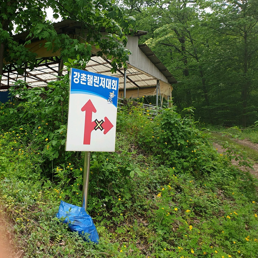 나름 유명한 강촌챌린저 코스 구간이라 코스 안내판이 중간중간 있으니 길 잃을 염려는 없다.
