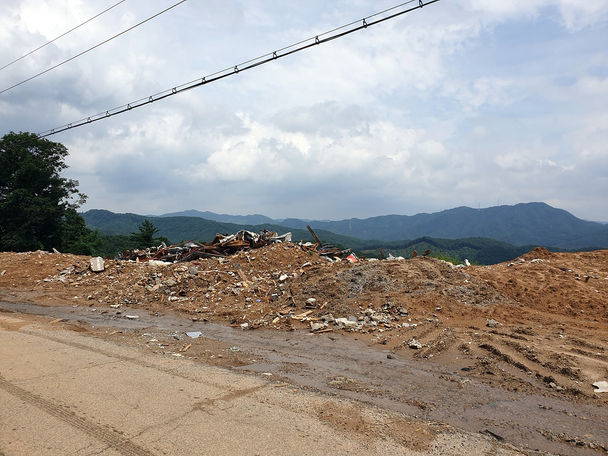 차들이 모여있고 무언가 잔해들이 잔뜩 쌓인 곳이 나타났다. TV 뉴스를 안 보니 모르고 있었는데 한 주 전에 여기서 산사태로 펜션이 무너져 인명사고가 났었다고 한다.