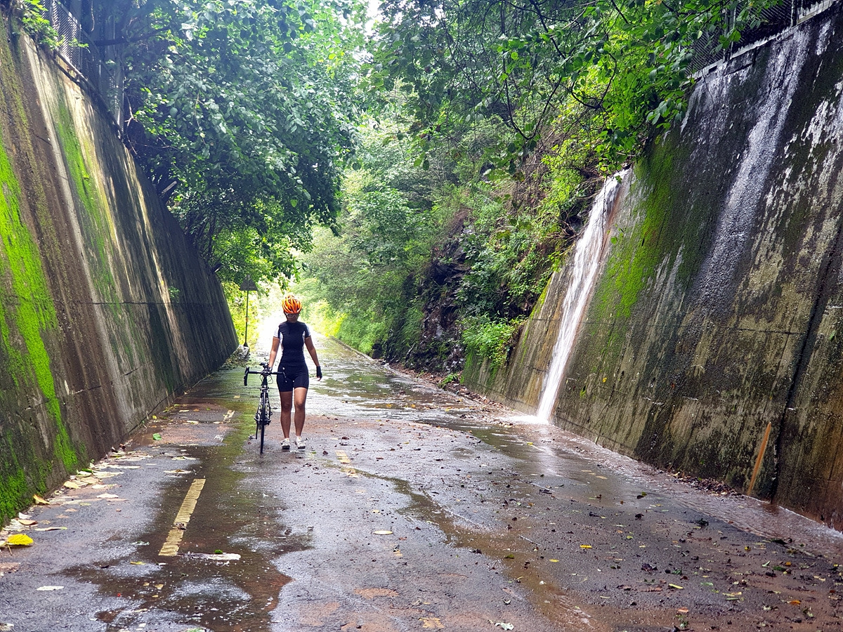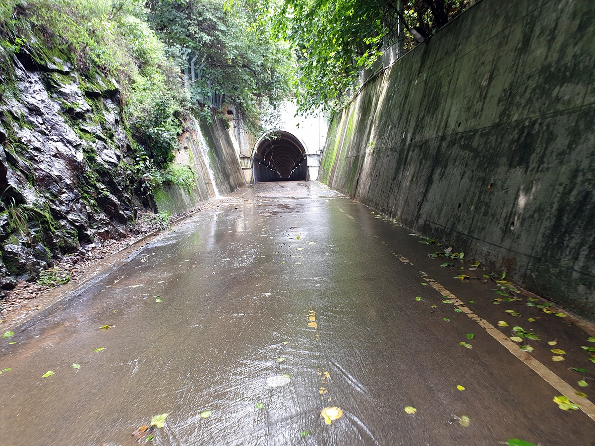 상천역으로 넘어가는 상천터널 근처부터 자전거길에 물이 흐른다.