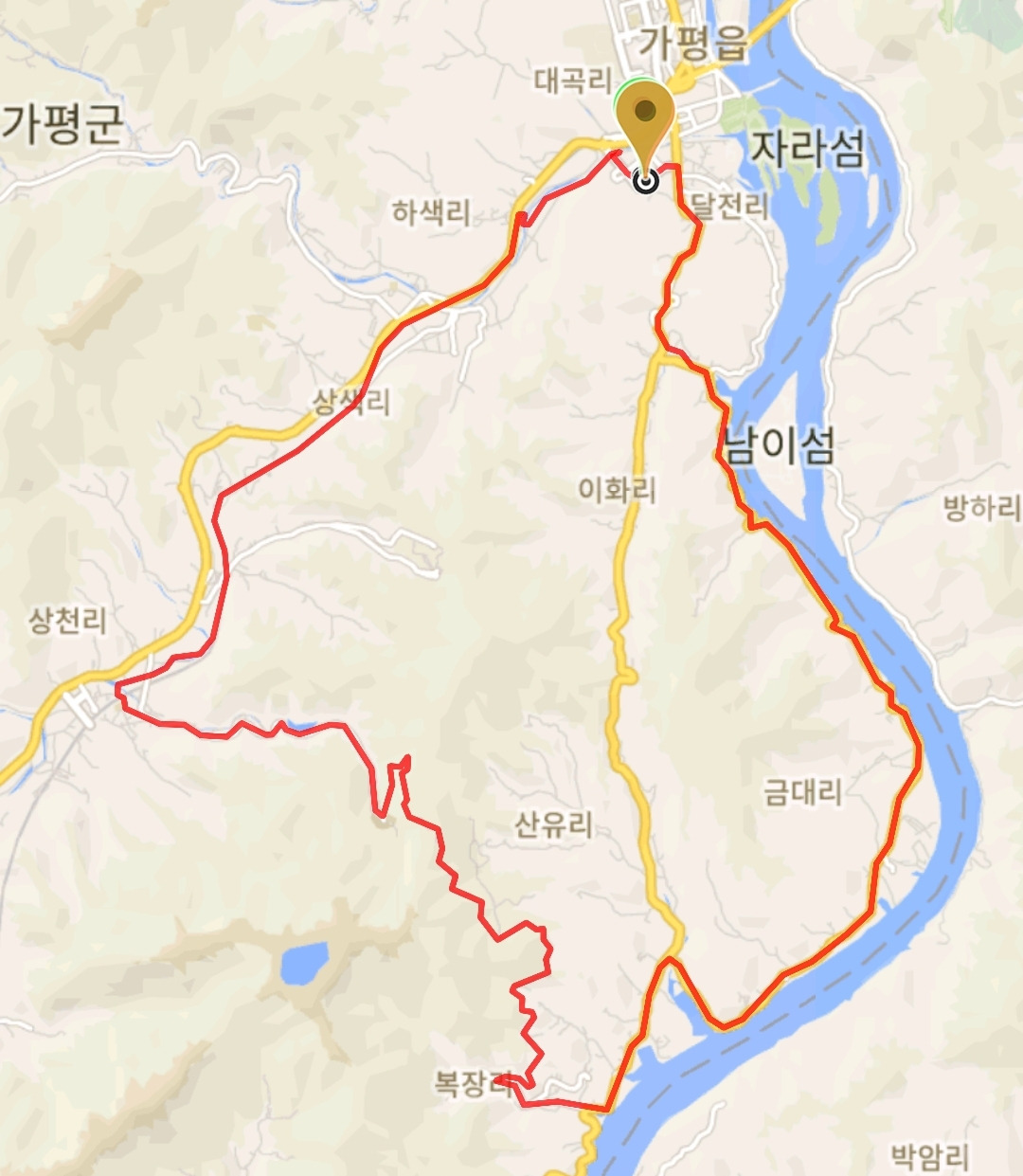 장승고개에서 쭉 내려가서 가평역 삼거리에서 가평역으로 돌아간다.
