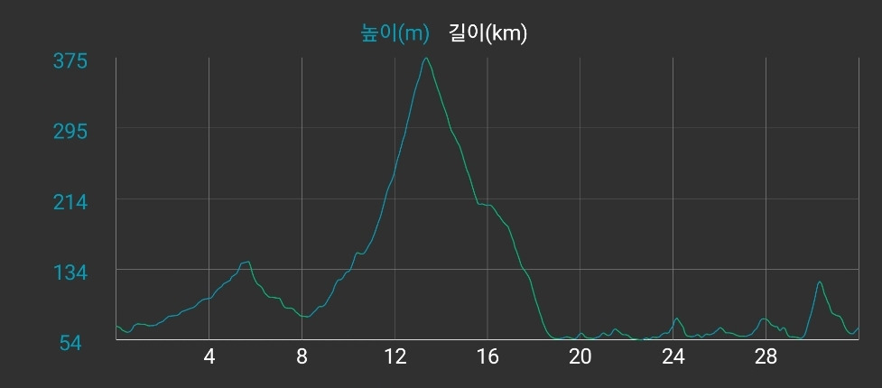 해발 380m라는 높이는 생각보다 높다. 호명호수 입구를 지나면 본격적으로 오르막길이 나타나는데 아주 완만한 구간과 오르막길 구간이 번갈아 나온다.