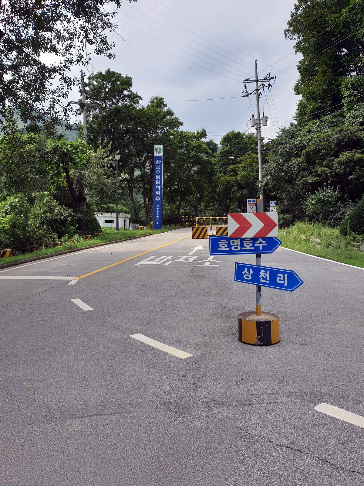 청평 양수발전소 입구를 지난다. 호명산 정상의 호명호수는 양수 발전용 인공 저수지다. 건설하면서 사람이 여럿 죽었다고 한다. 양수발전소는 전력이 남는 밤에 강물을 정상까지 끌어올려서 전기가 필요한 낮에 고도차를 이용하여 발전기를 돌린다.
