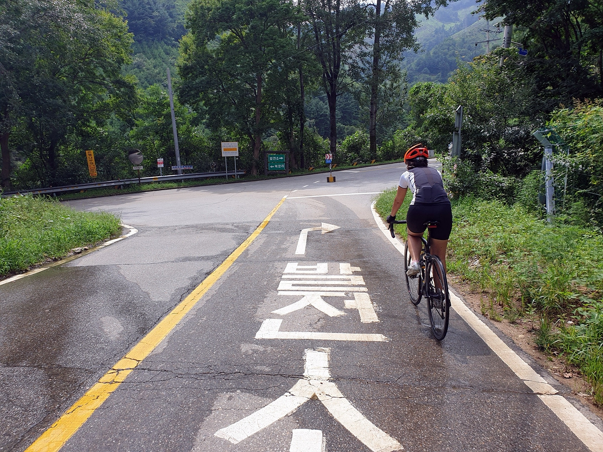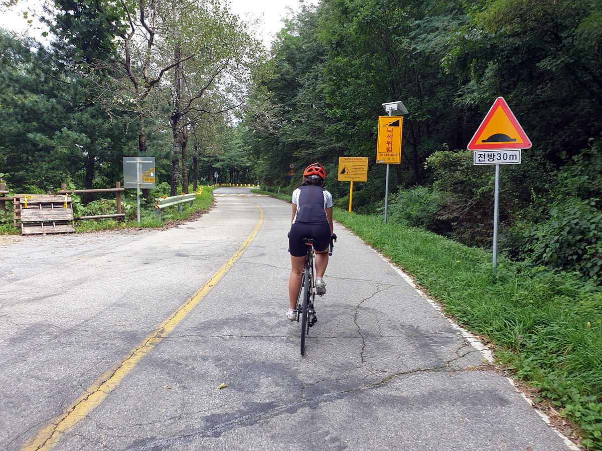 정상을 지났으니 이제 내리막이다. 비 온 후의 도로는 언제 어디가 엉망일지 모르니 조심해서 내려간다.