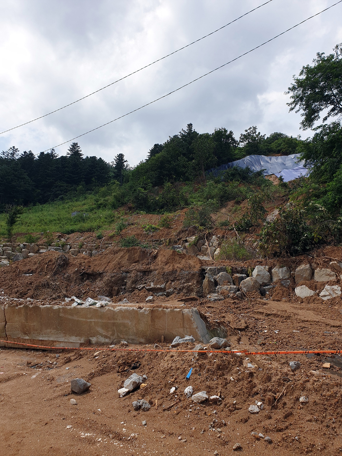 좀 더 내려가니 산이 무너진 곳이 또 나타난다. 수해가 심각하다고 뉴스 기사로만 보았는데 실제로 보니 절실히 느껴진다.