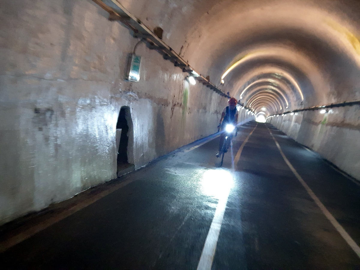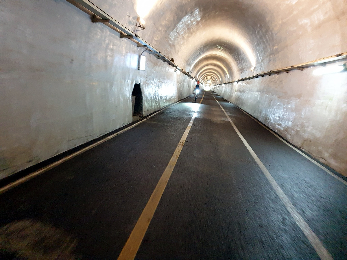 상천 터널 안쪽도 바닥이 진흙밭인데 조명까지 유난히 어둡다.