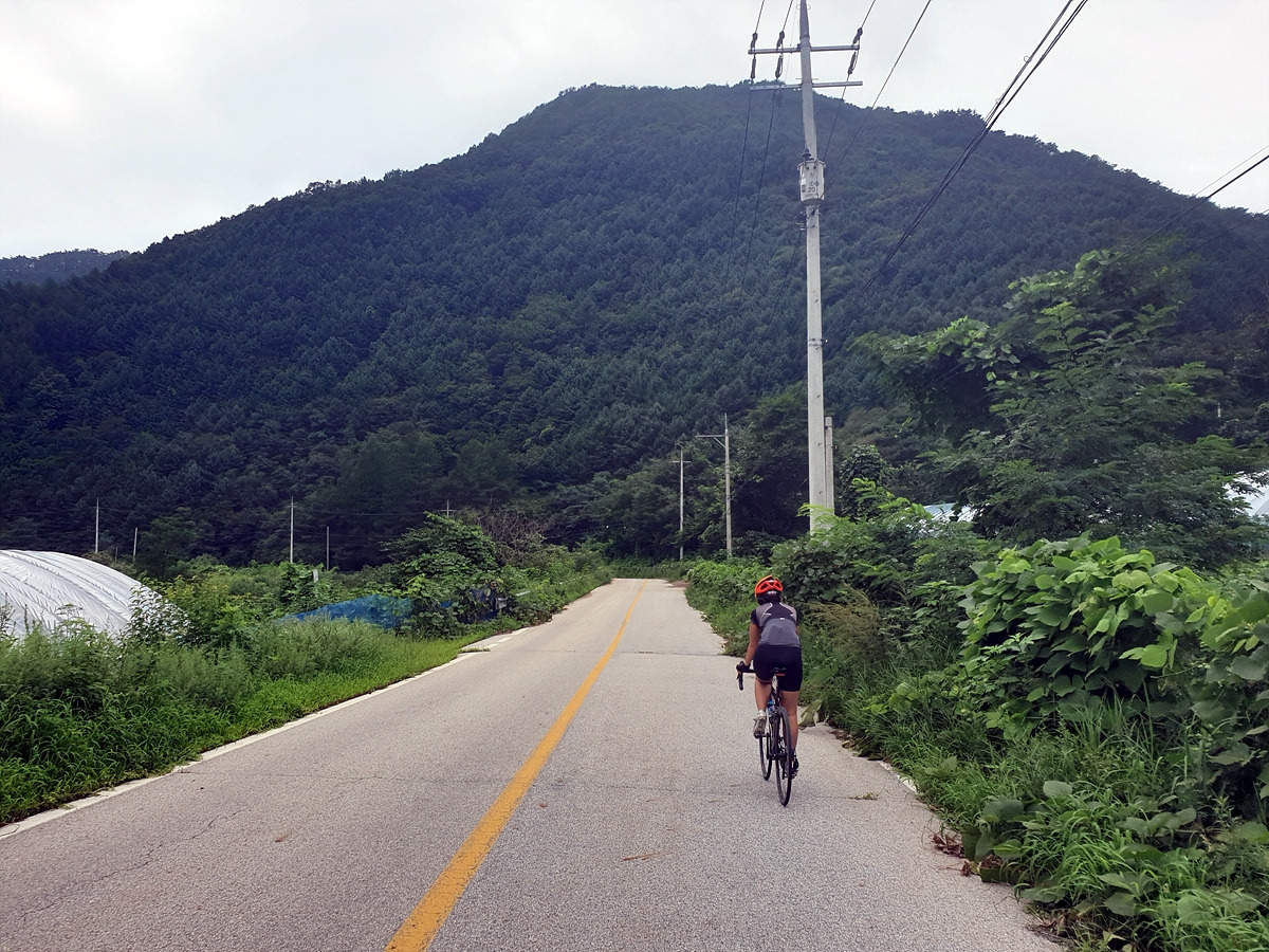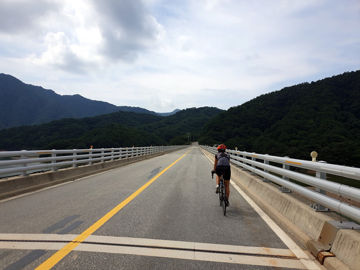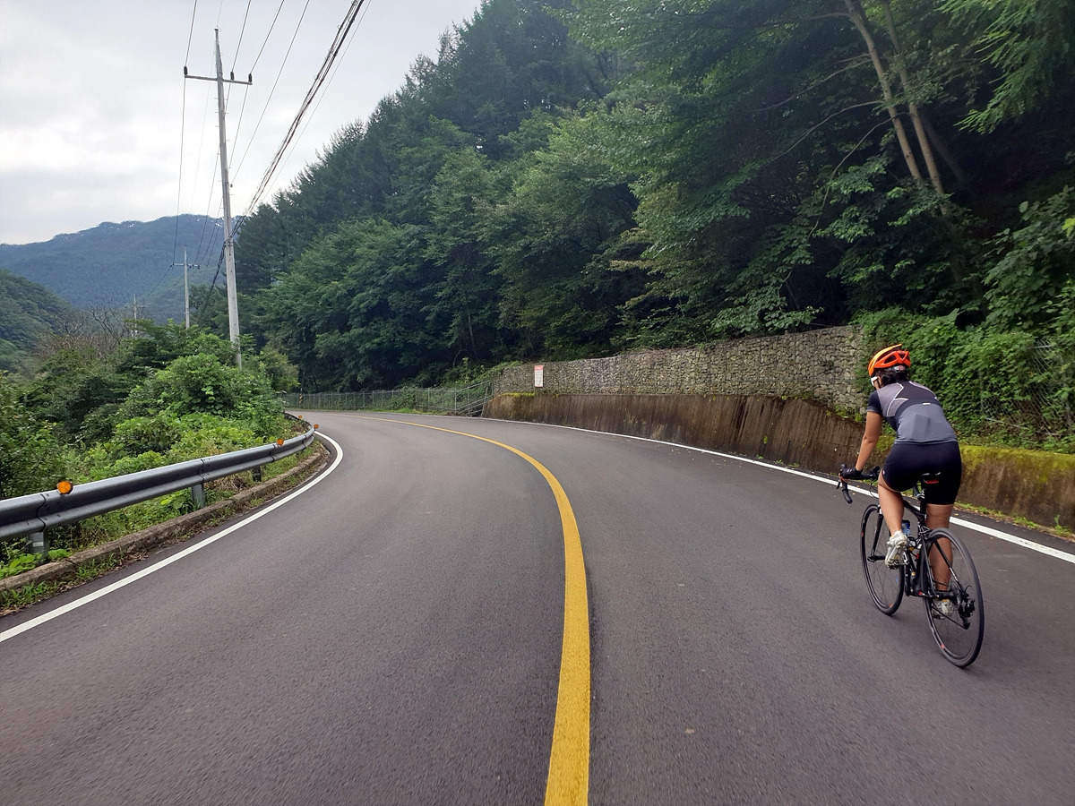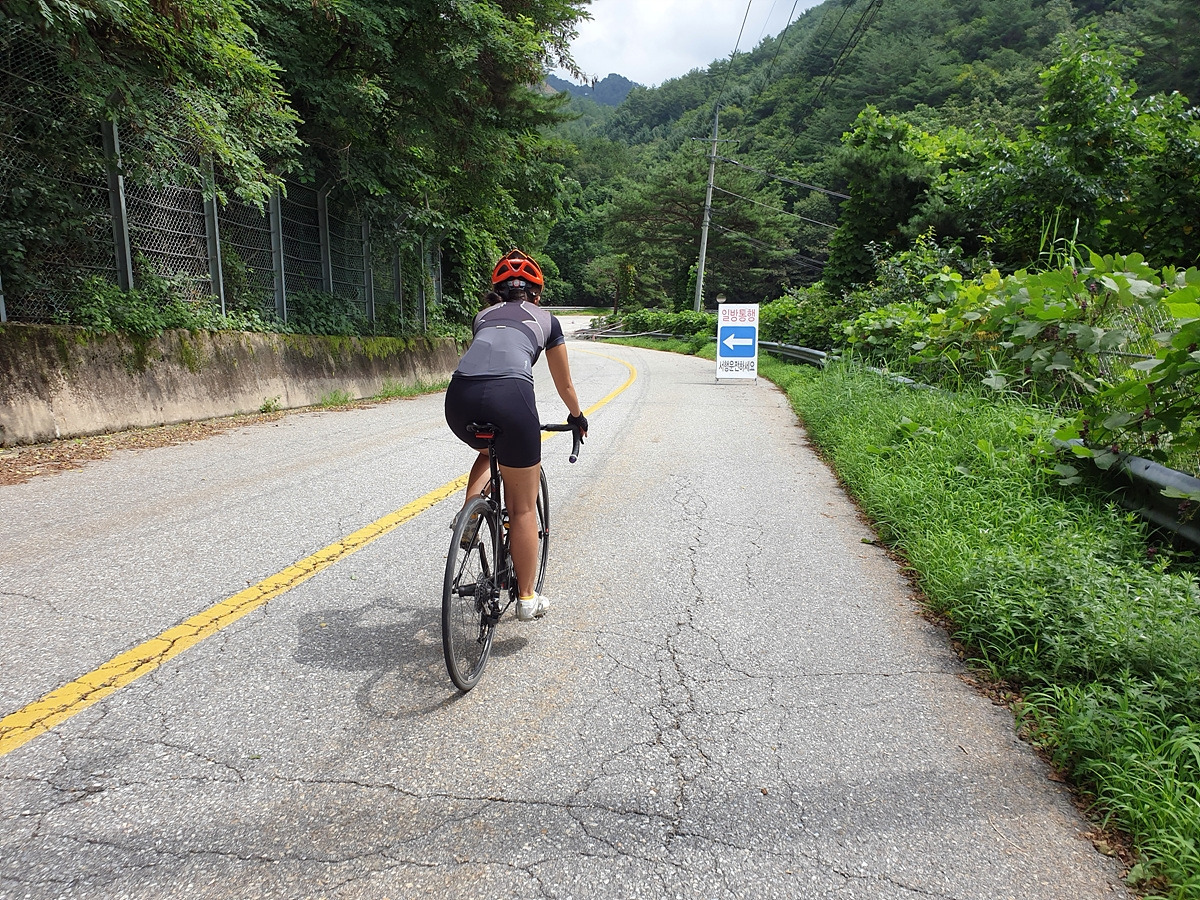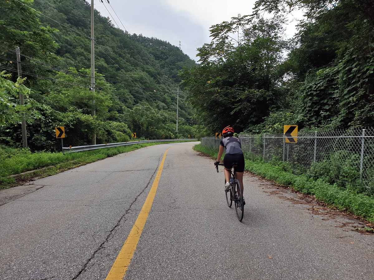 내려가다 보면 이번 장마에 망가진 구간도 있다.장마나 태풍 같은 큰 비가 지나간 다음에는 망가지는 도로가 많기 때문에 자전거를 탈 때 좀 더 조심해야 한다.