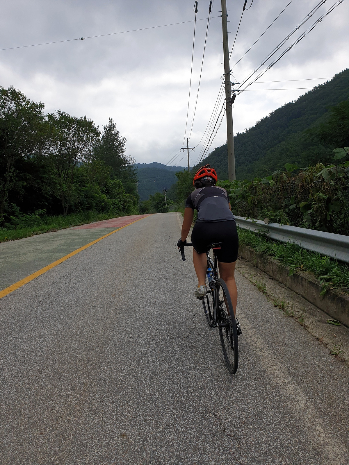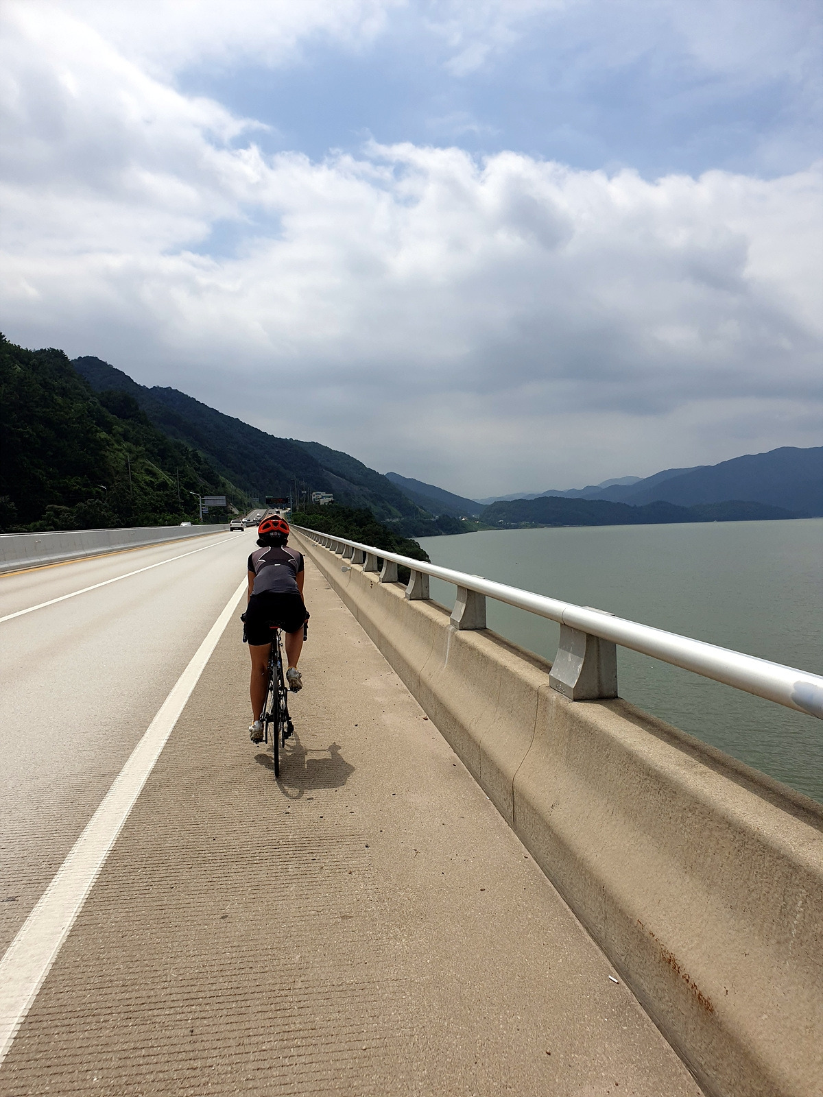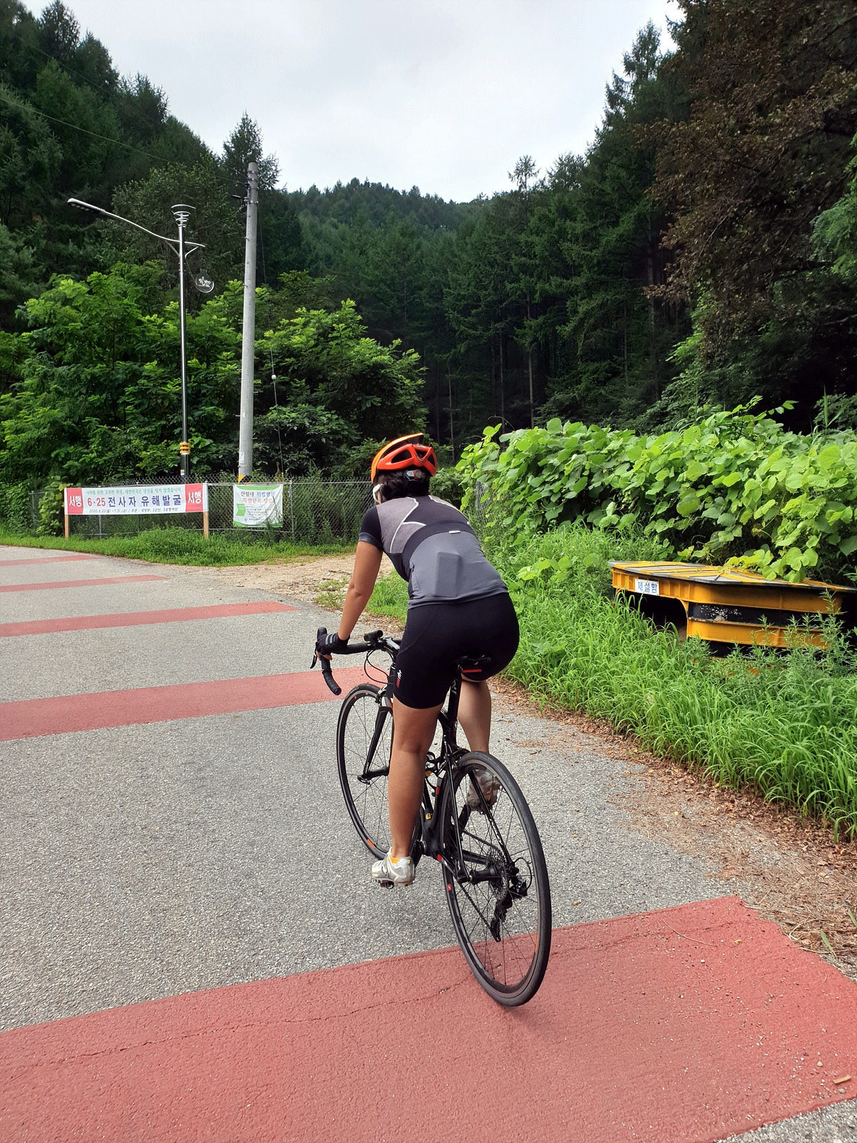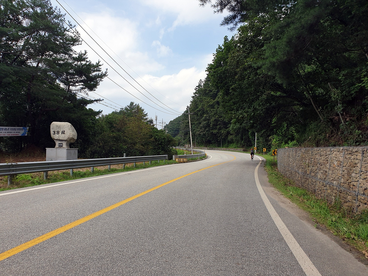 내려가다 보면 이번 장마에 망가진 구간도 있다.장마나 태풍 같은 큰 비가 지나간 다음에는 망가지는 도로가 많기 때문에 자전거를 탈 때 좀 더 조심해야 한다.