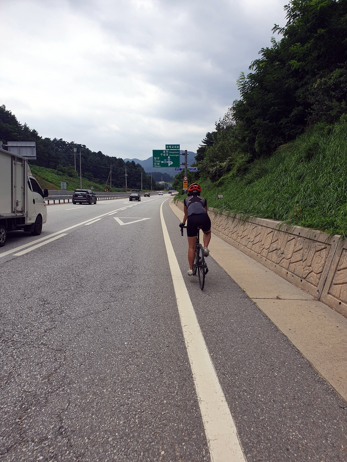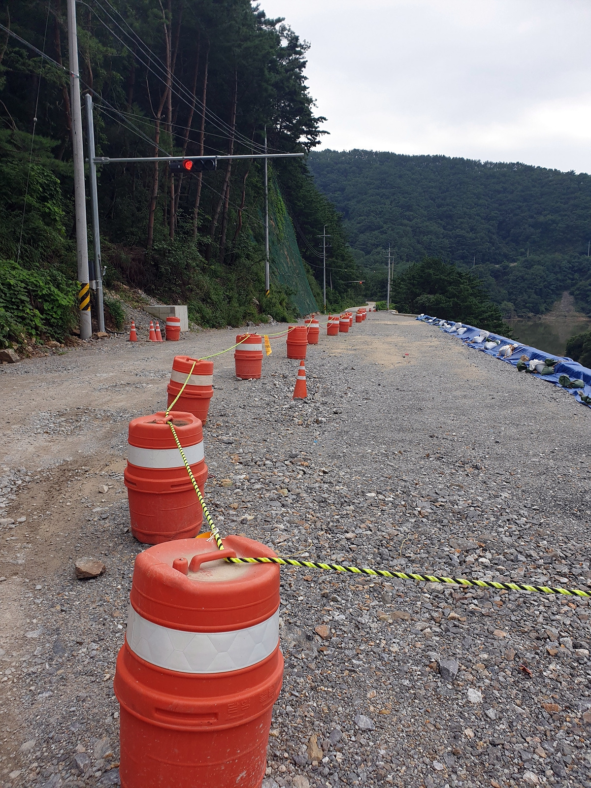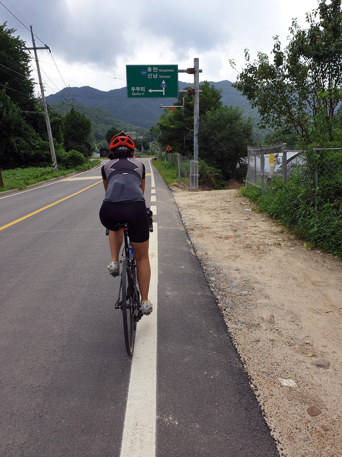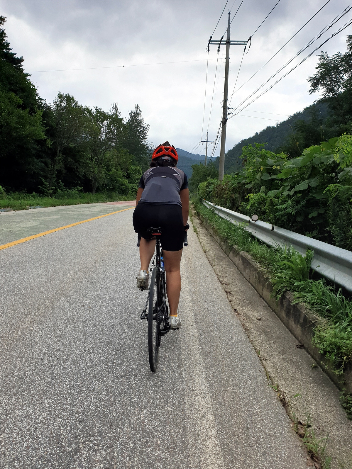 내려가다 보면 이번 장마에 망가진 구간도 있다.장마나 태풍 같은 큰 비가 지나간 다음에는 망가지는 도로가 많기 때문에 자전거를 탈 때 좀 더 조심해야 한다.