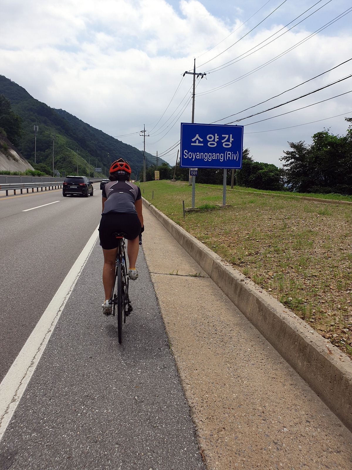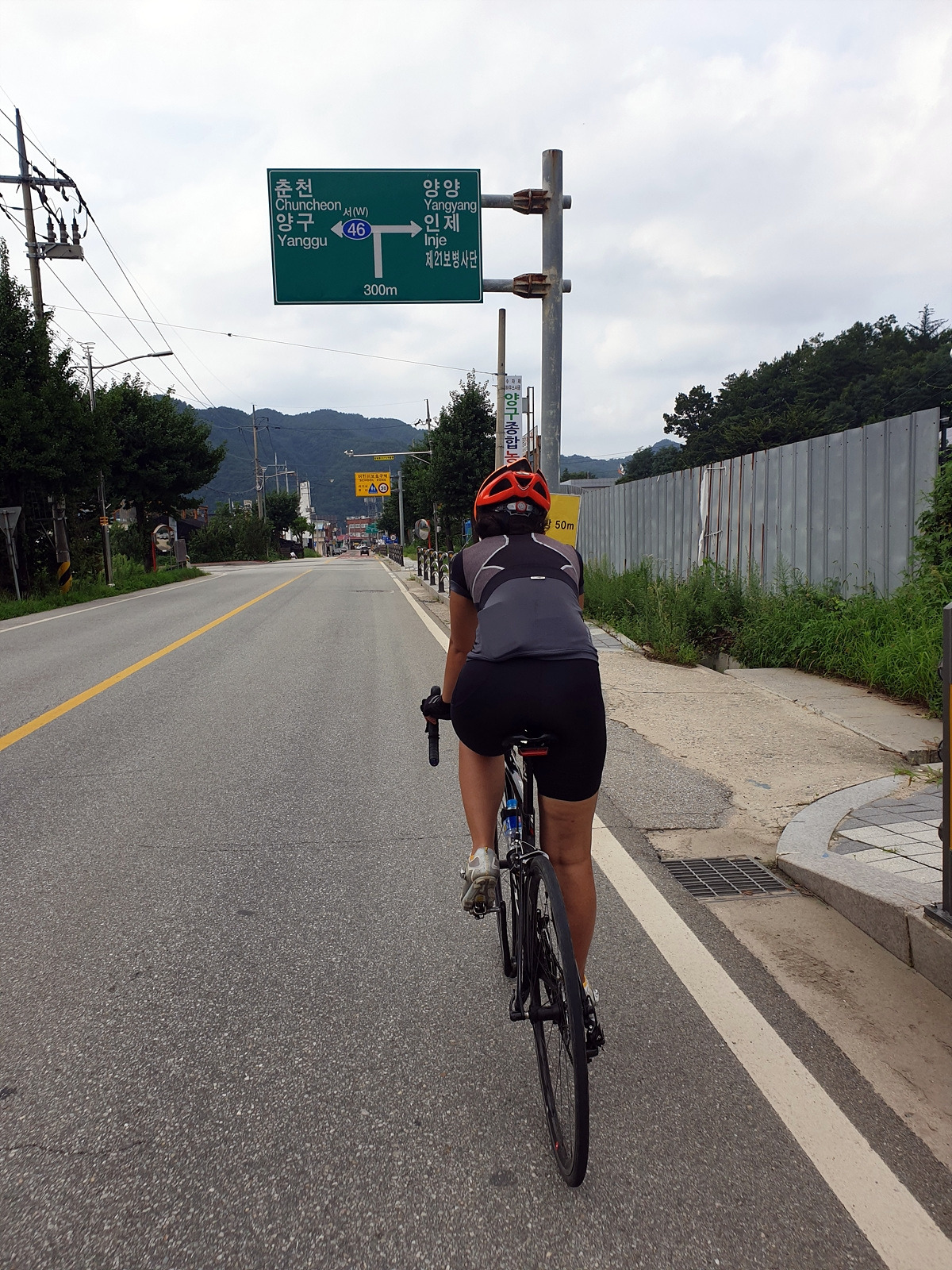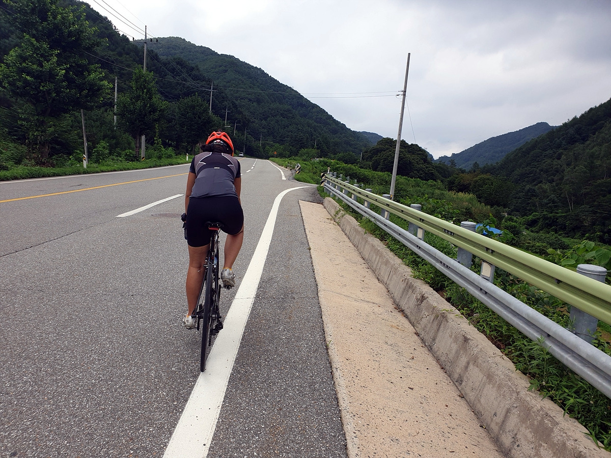 신남에서 양구로 가는 46번 국도를 따라간다. 처음에 양구에서 출발할 때 달리던 그 길이다. 시작하자마자 오르막길이 시작된다.