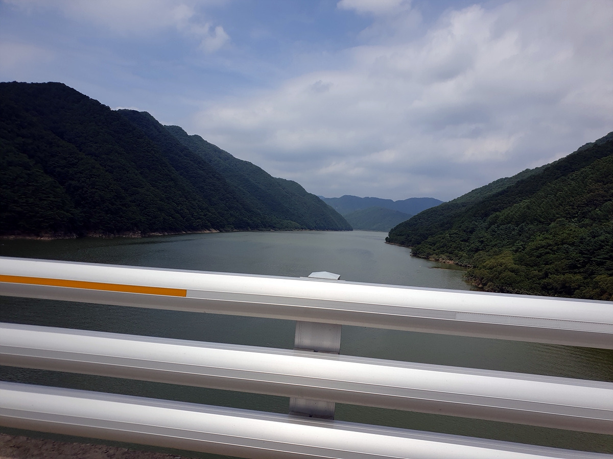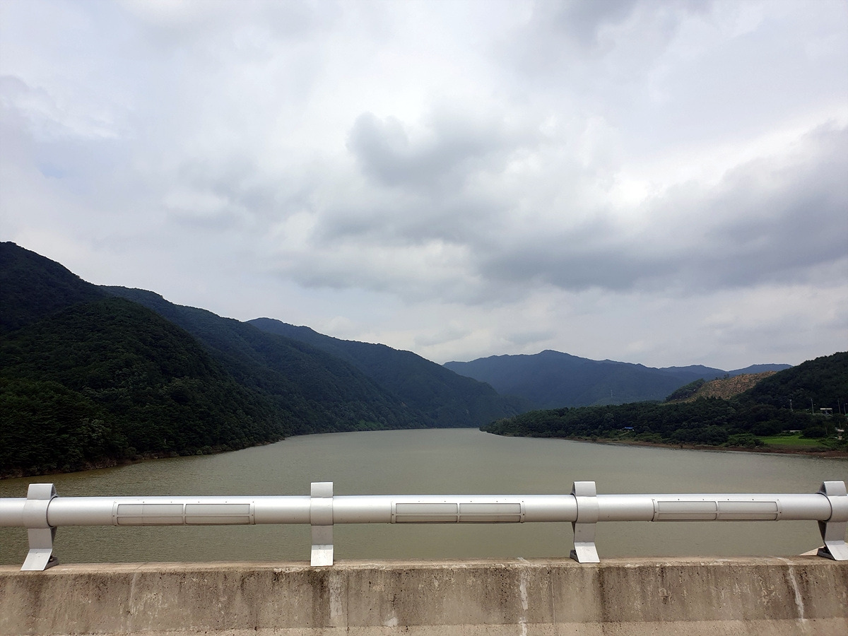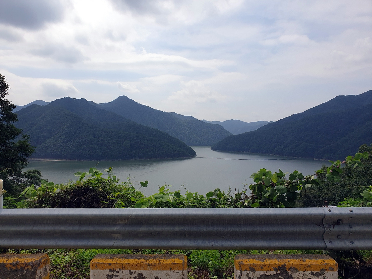 비포장길을 벗어나 다시 달린다. 이제부터 소양호 둘레 구간인데 울창한 숲 때문에 소양호가 보이질 않는다. 가끔 보이는 소양호도 수면에 부유물이 많다.