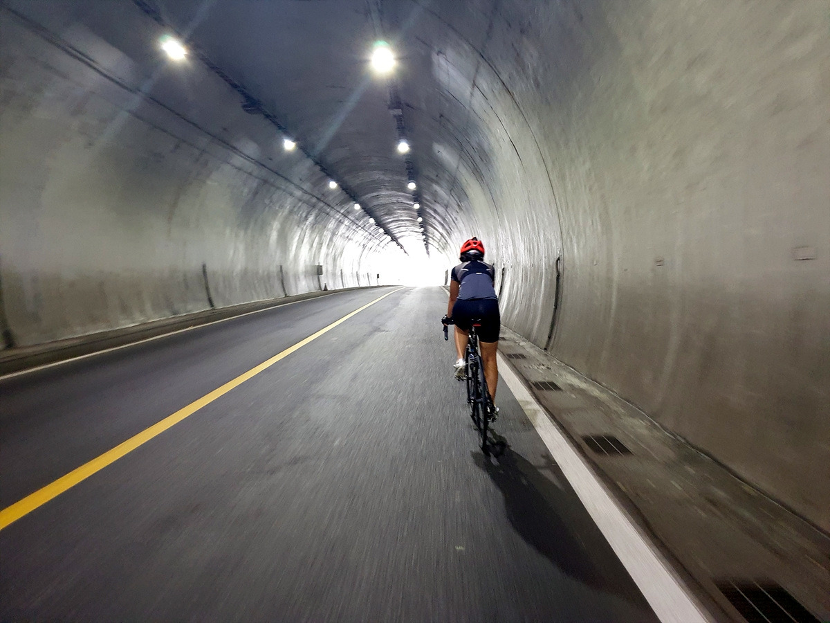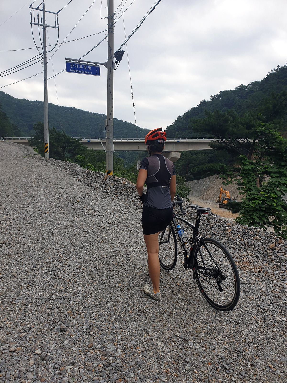 마을을 지나 더 내려가니 공사 구간이 있다. MTB로는 그냥 달리면 되겠지만 로드바이크니까 내려서 슬슬 끌고 간다. 이런 데를 참지 않고 타고 다니면 펑크가 자주 난다.