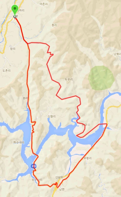 오늘 달린 거리는 50 km라 멀리서부터 일부러 타러 오기엔 조금 애매하긴 하다. 사실 지난번 신남에서 출발할 때 이쪽까지 다 달리는 장거리 계획으로 출발했었는데 컨디션과 시간문제로 중간에 중단하고 44번 국도를 달려 신남으로 돌아왔다. 그때 남은 구간을 오늘 달려보니 그러지 않기를 잘했다고 생각한다. 고생하더라도 길게 장거리를 달리고 싶은 사람이라면 우리가 지난번에 다녀왔던 길과 합쳐서 달리면 될 것이다.