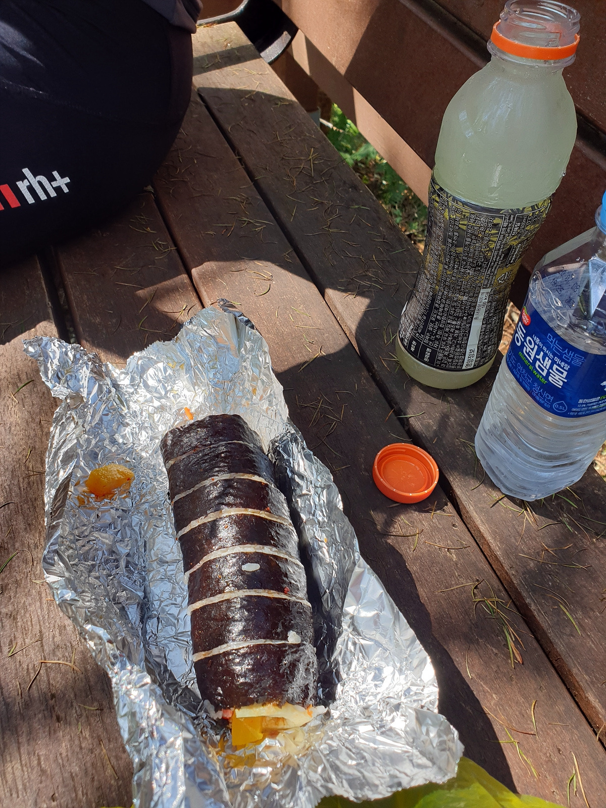 등산객들 무리에서 조금 떨어진 다른 데크에서 가지고 온 점심을 풀었다. 김밥과 음료수 뿐인 간단한 점심이지만 맛있는 김밥집에서 사 온 거라 참 맛있다.