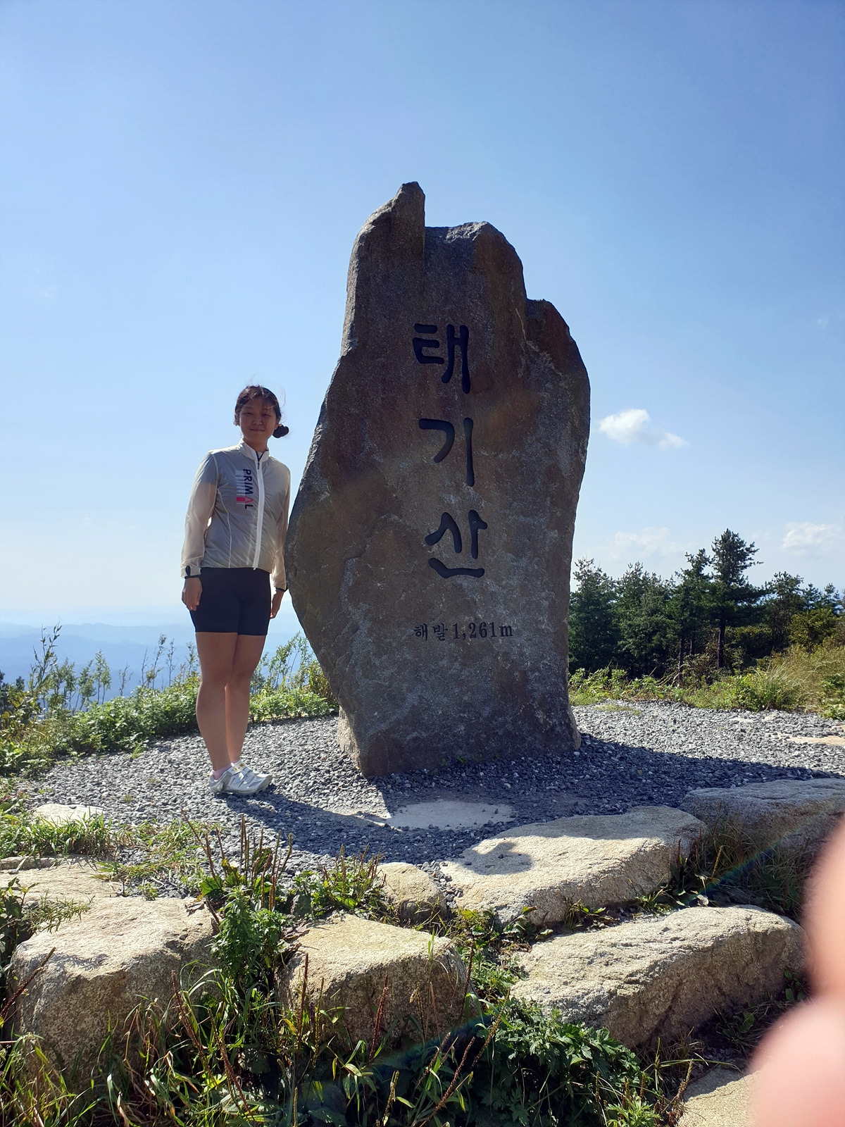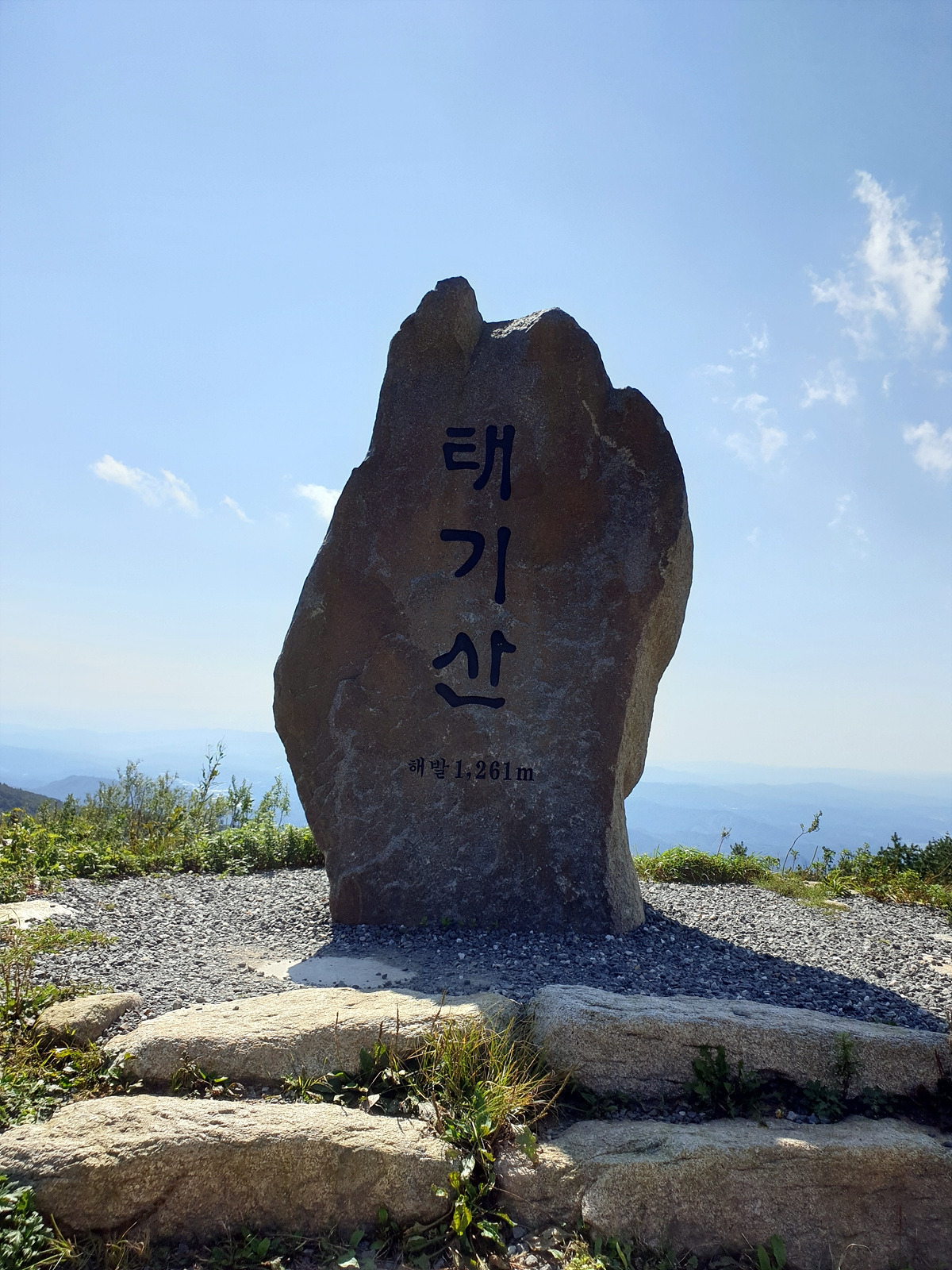 드디어 태기산 정상에 도착했다. 좀 더 가면 진짜 정상인데 군부대가 있어 출입금지고 조금 아래인 여기 전망대에 정상 표지석이 있다.