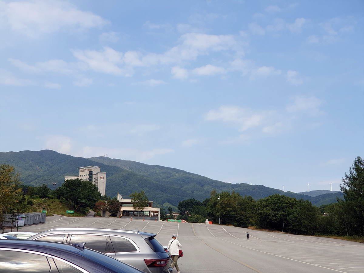 휘닉스파크 주차장에 도착하였다. 스키장이 열지 않는 지금은 매우 한산하다. 덕분에 주차나 화장실 이용이 편하다.