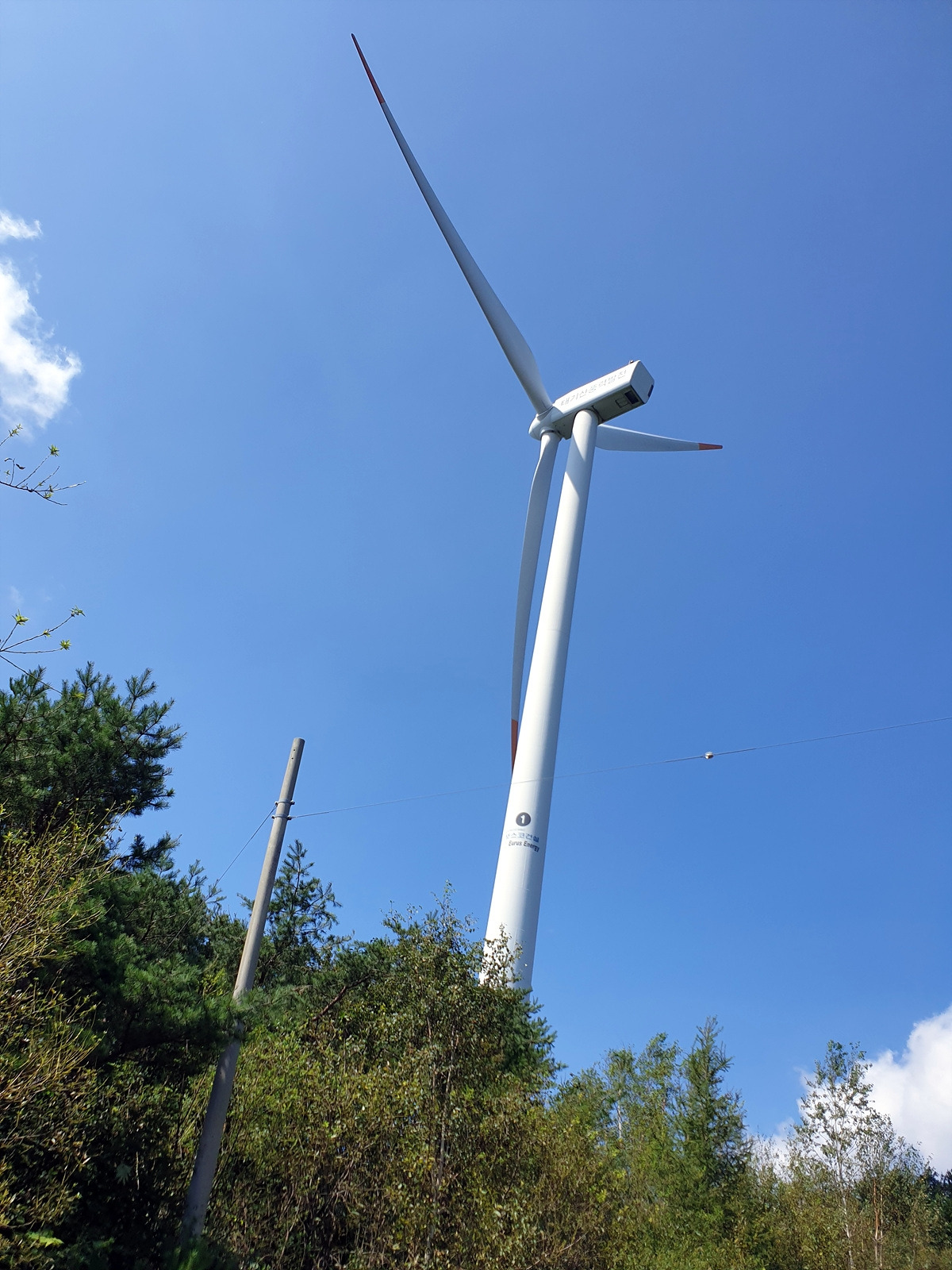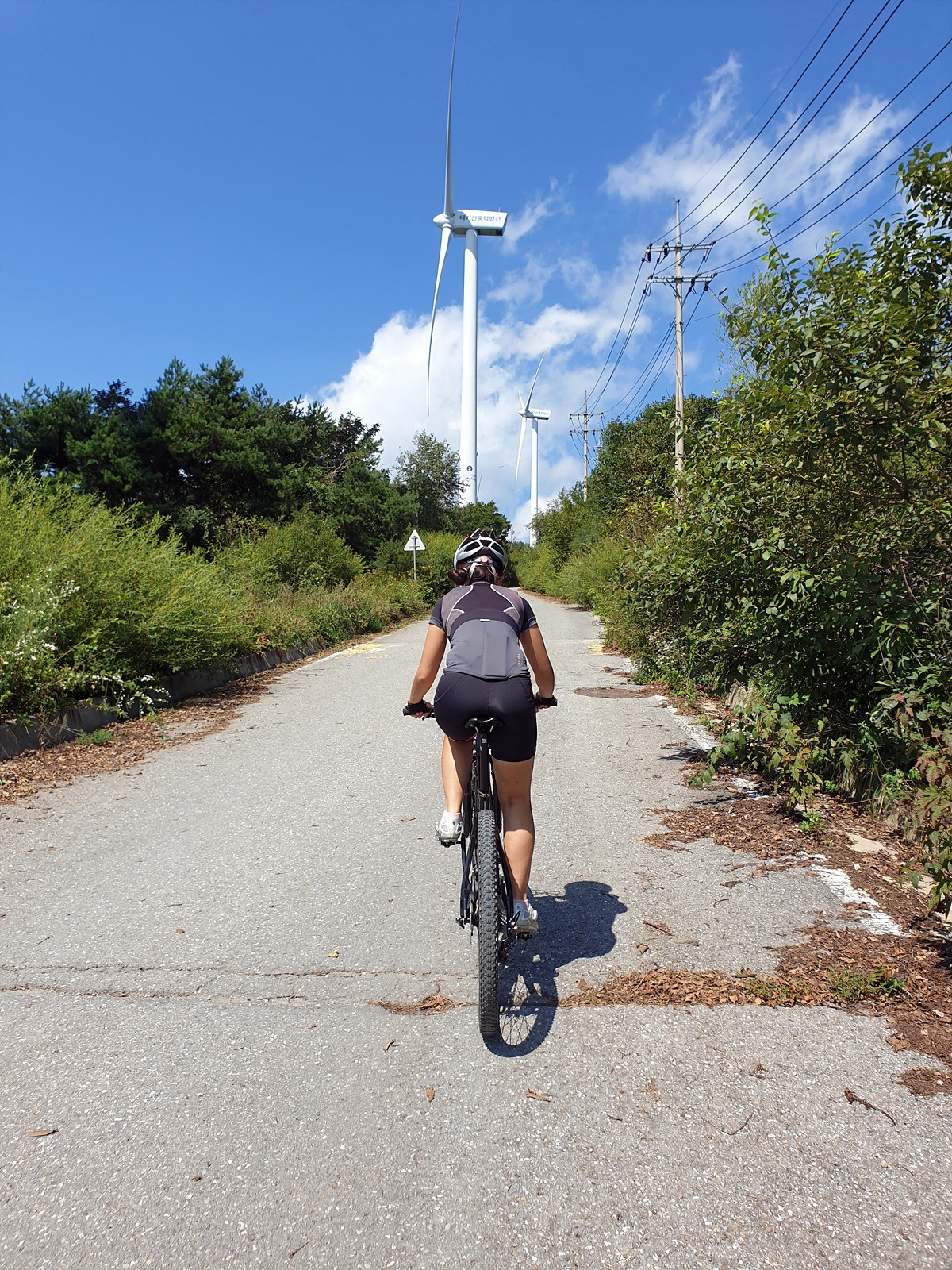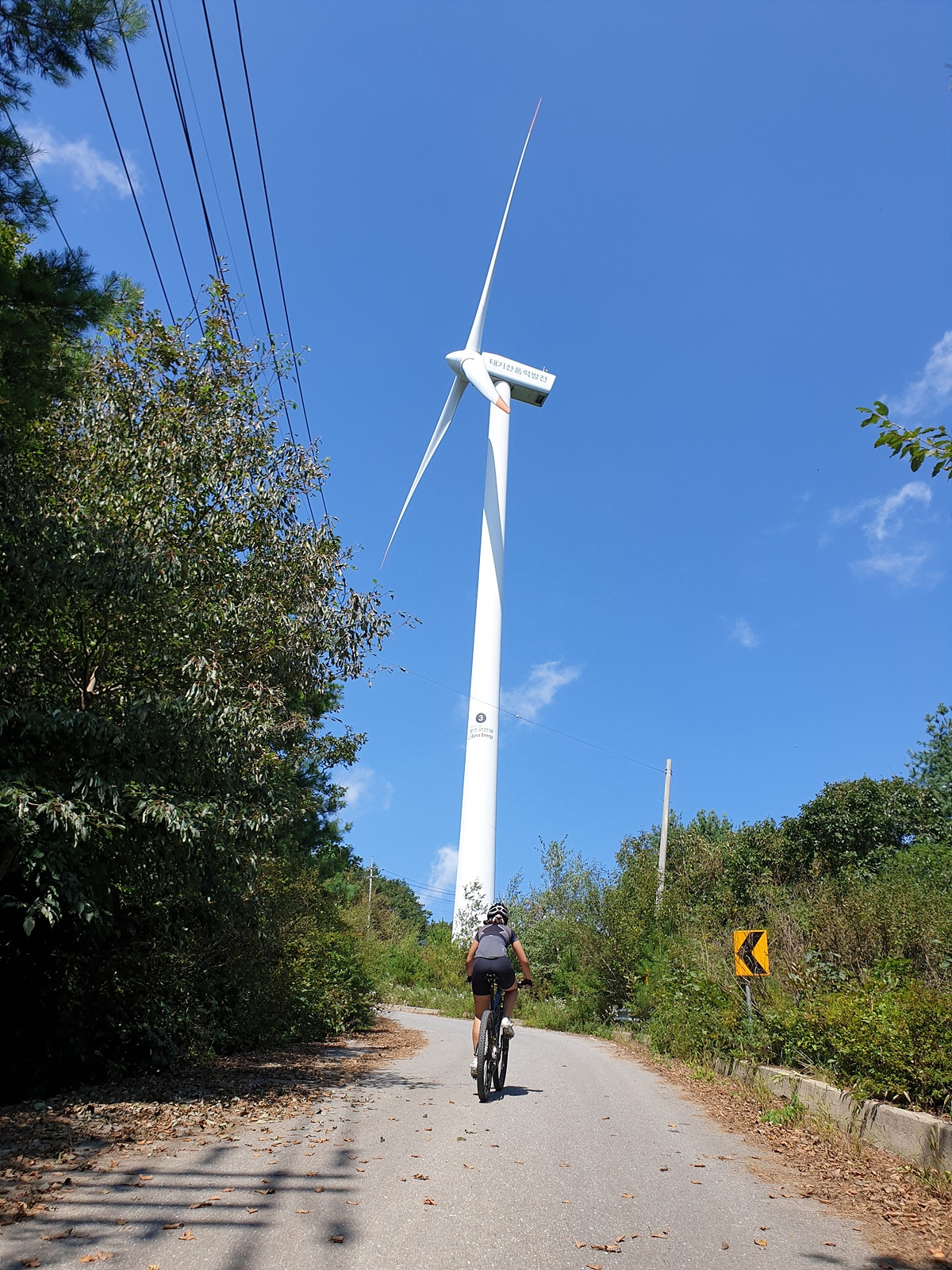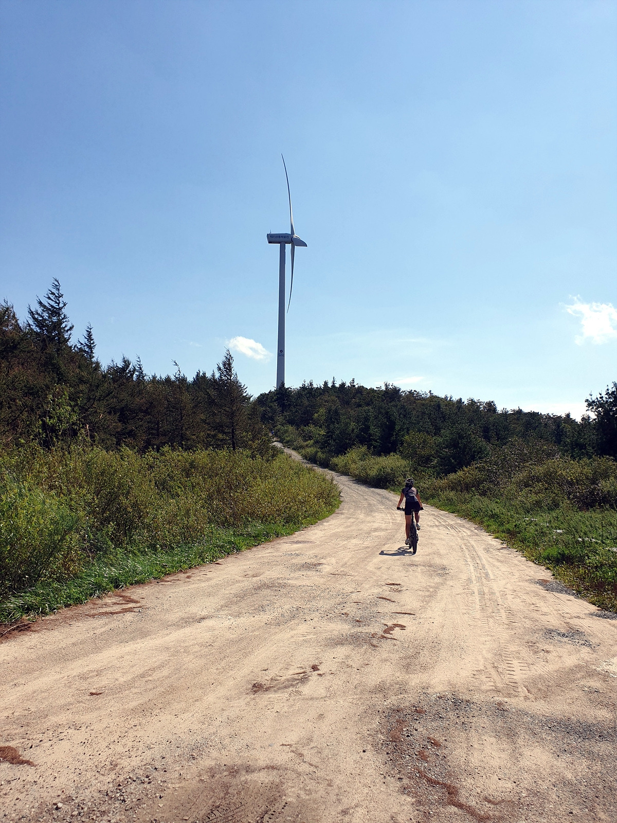 풍력단지 맨 위에는 소 모형이 있는 두 갈래길이 있고 북쪽 갈래길에 9기의 풍력발전기들이 있는데 그쪽은 관계자 외 출입 금지다. 총 20기의 발전기 중에 거의 절반을 못 가는 셈이지만 이 정도로 충분하다.