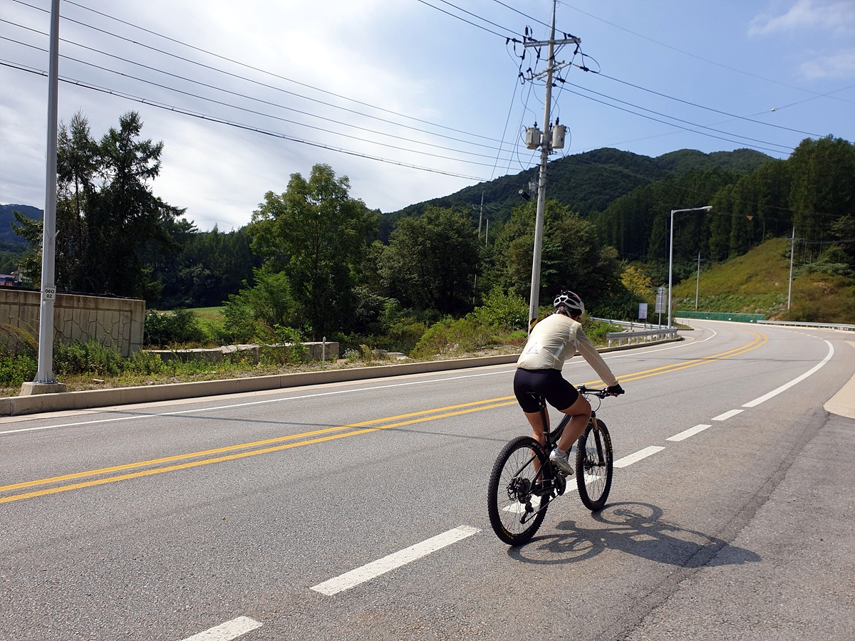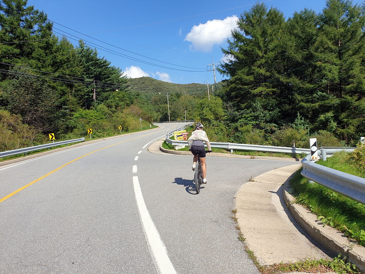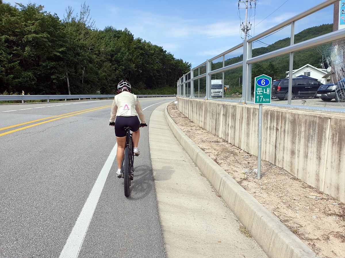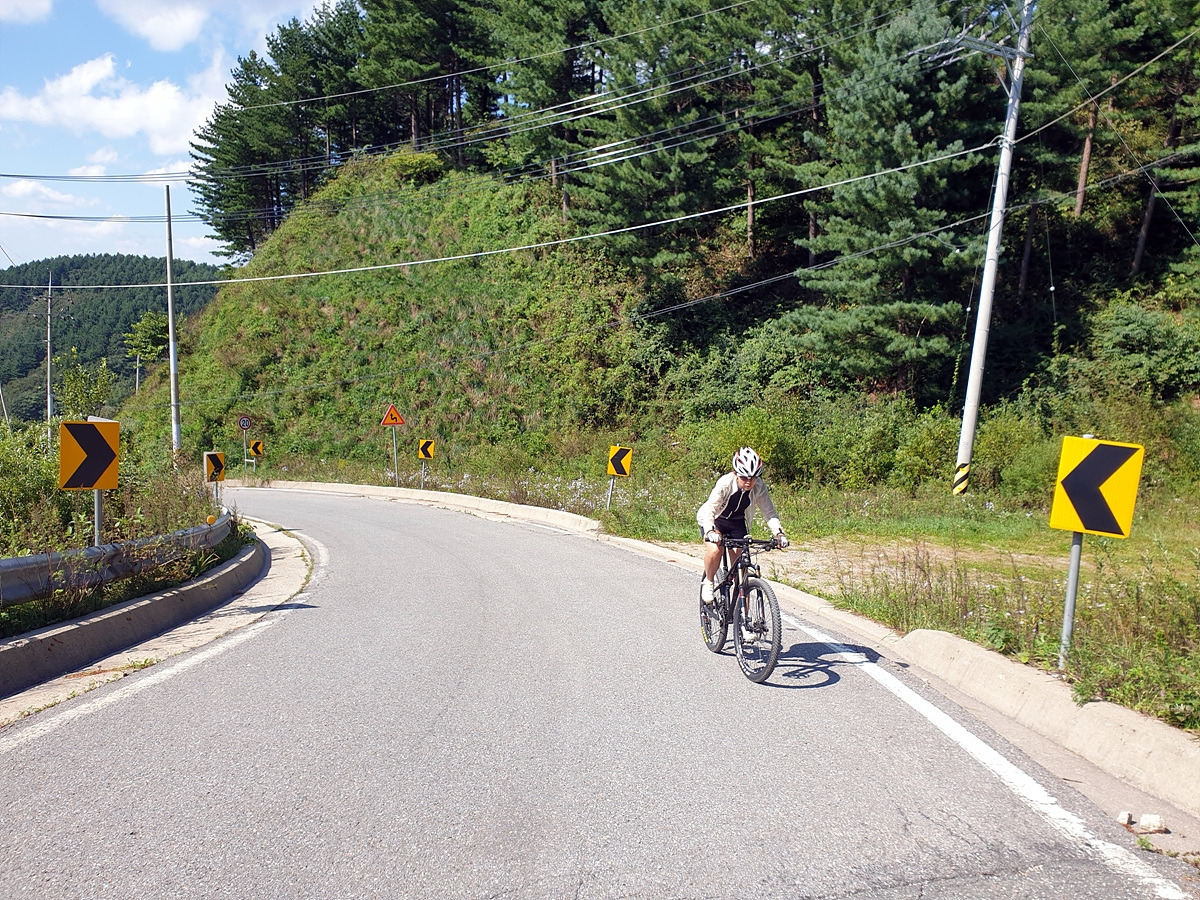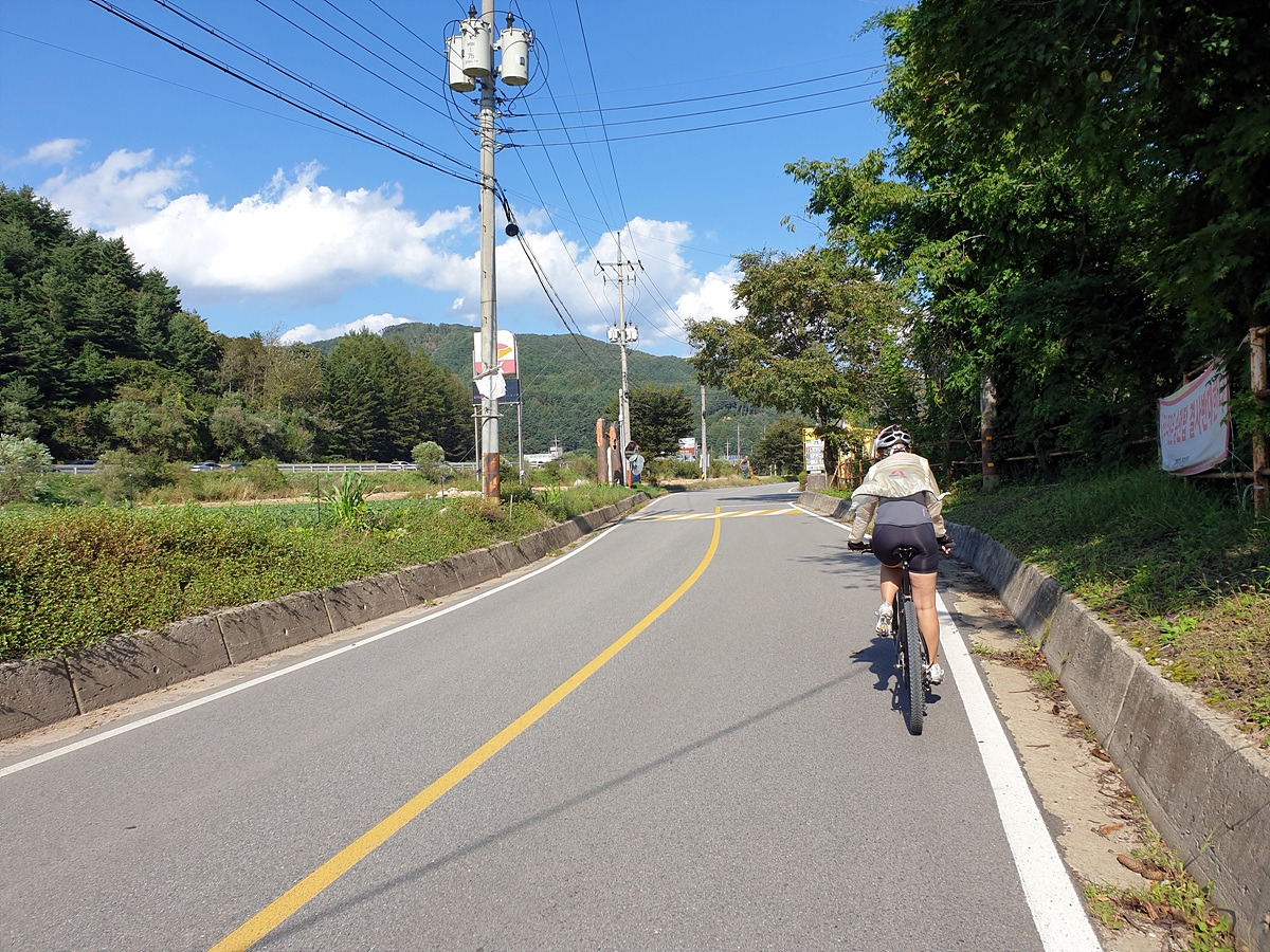 이제부터는 양구두미재까지 3.4km 오르막길이다. 본격적인 오르막길이다. 차량 통행이 적어 로드바이크들도 많이들 다니는 길이다.