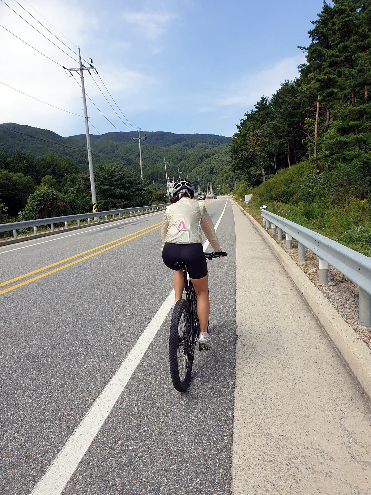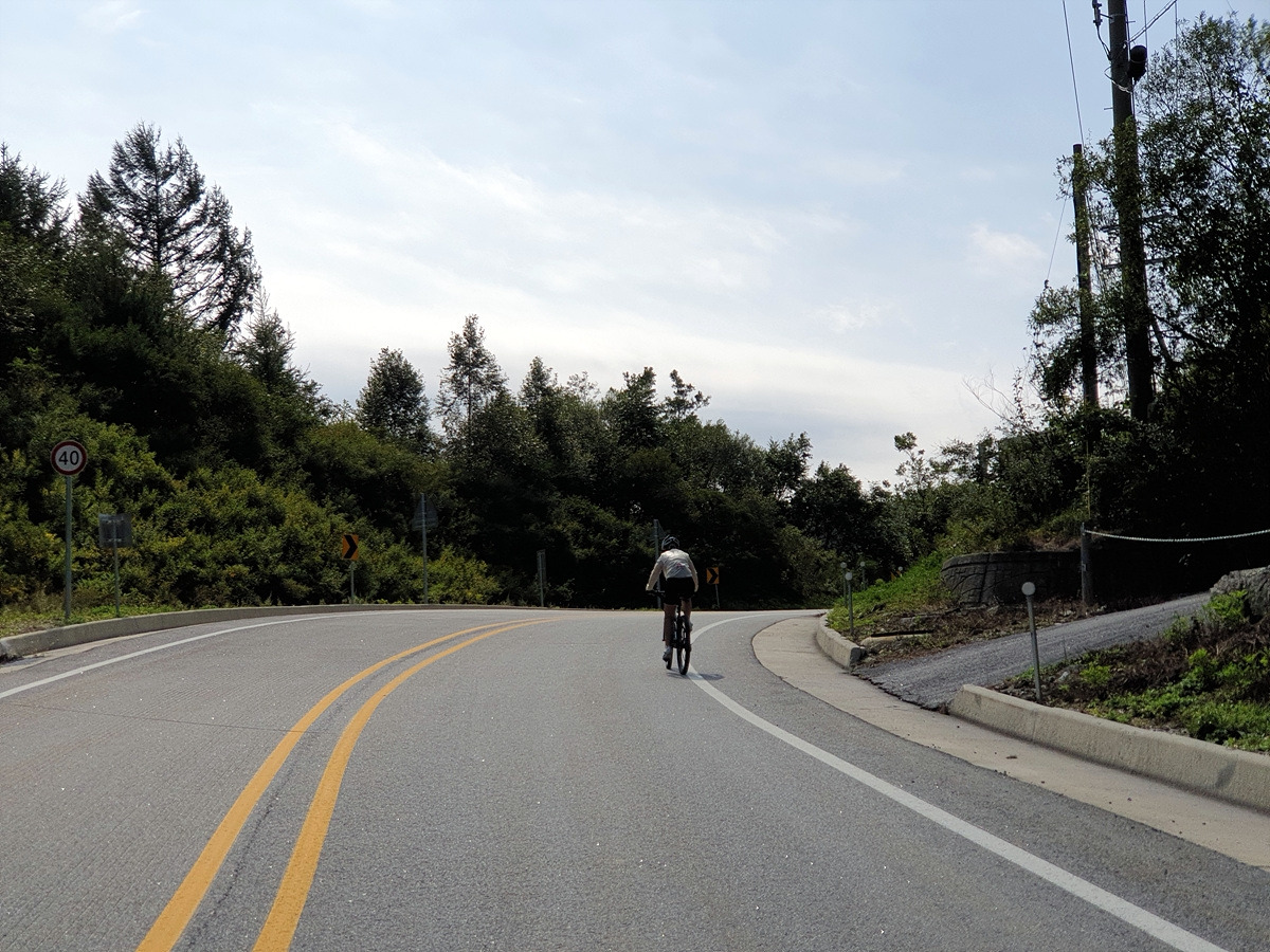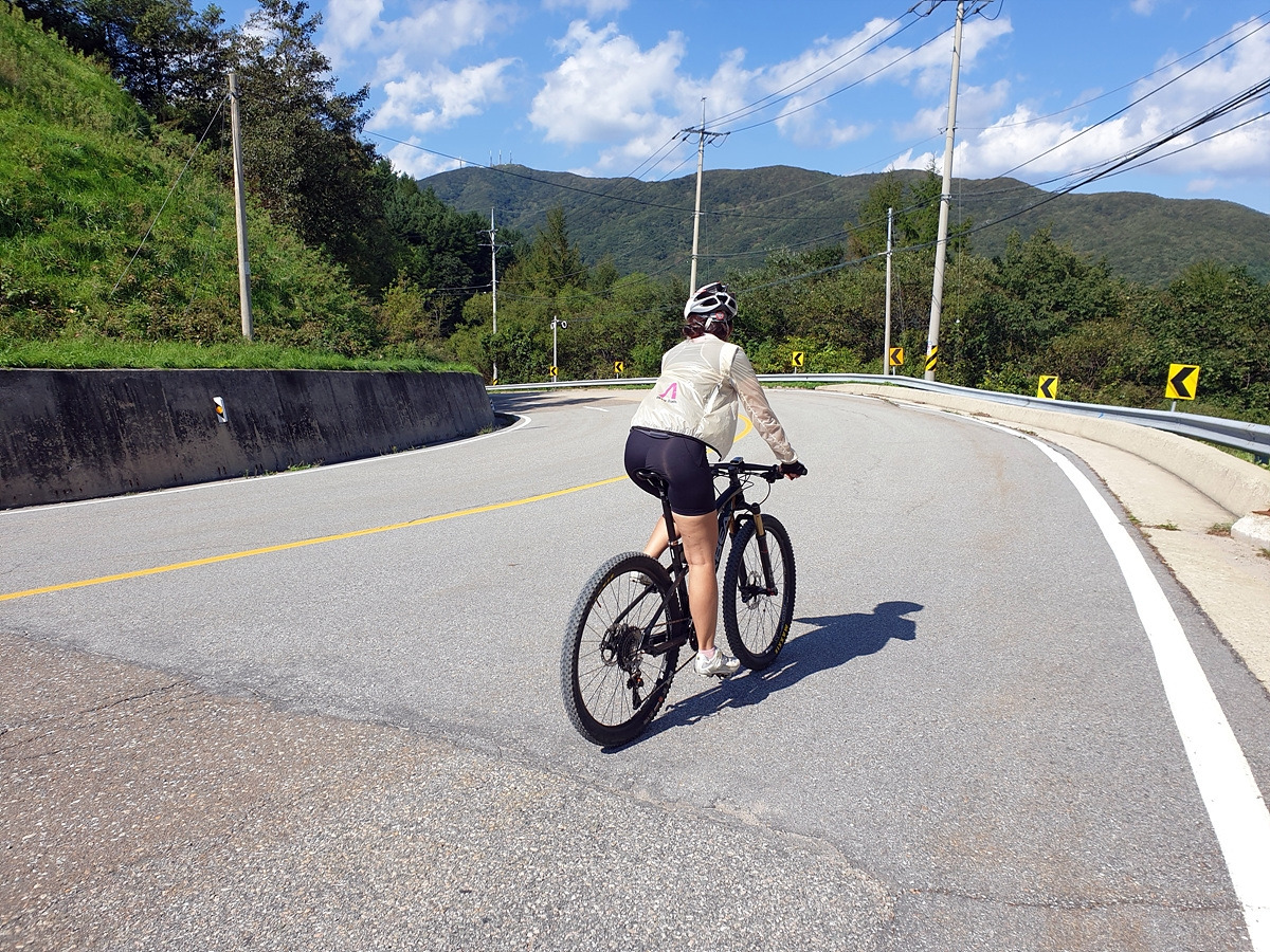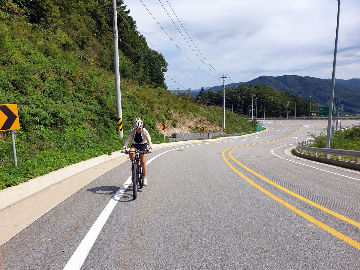 이제부터는 양구두미재까지 3.4km 오르막길이다. 본격적인 오르막길이다. 차량 통행이 적어 로드바이크들도 많이들 다니는 길이다.