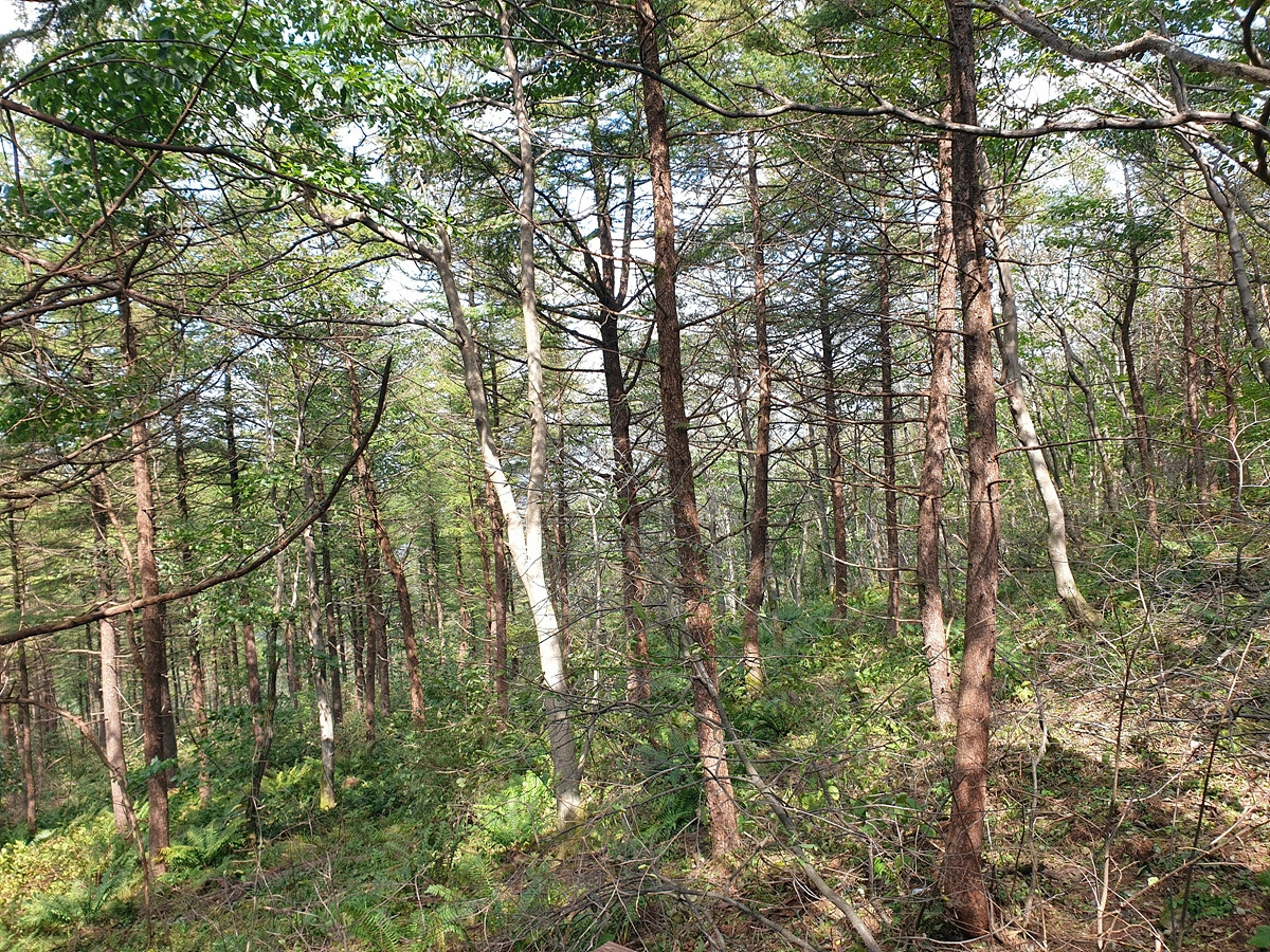 양치식물이 많은 곳이다. 소나무 숲 그늘에 고사리들이 빼곡하게 자라니 볼만한 숲이다. 여기 데크가 야영하는 사람들한테 인기 있는 장소라 그런지 데크 주변 숲 여기저기에 쓰레기들이 널려있다. 무분별한 야영객들 때문에 차량 통행이 금지되었다고 들었는데 이 지경이라면 곧 야영도 본격적으로 단속할 듯하다.