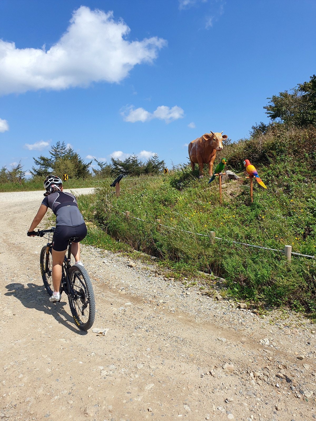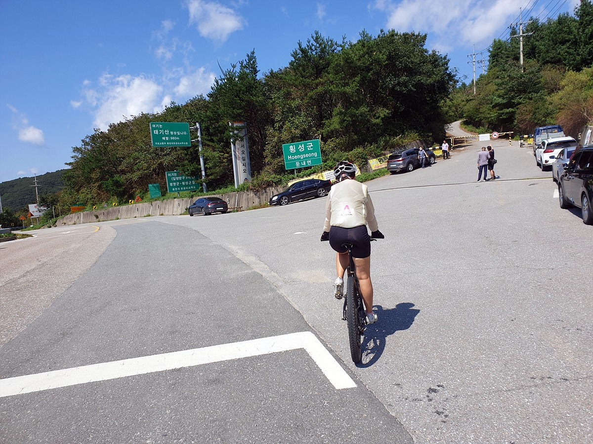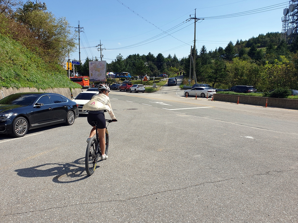 양구두미재로 돌아왔다. 양구두미재에는 주차장과 화장실이 있다. 태기산에 가는 사람들이 주차하고 출발하는 곳이라 간단한 음식과 음료를 파는 노점도 있다. 자전거를 타는 사람들도 종종 보았는데 모두 로드바이크를 타는 사람들이다.