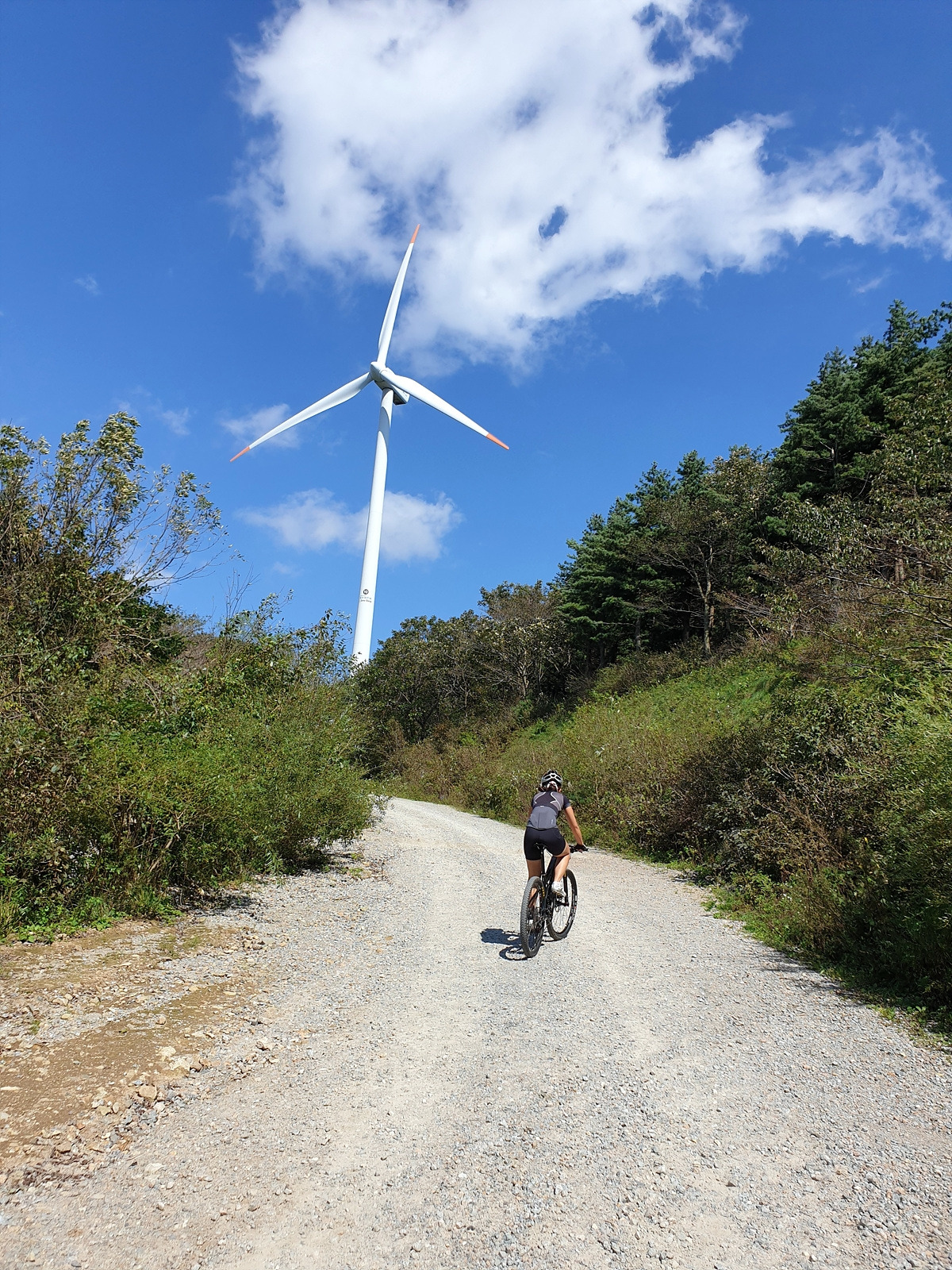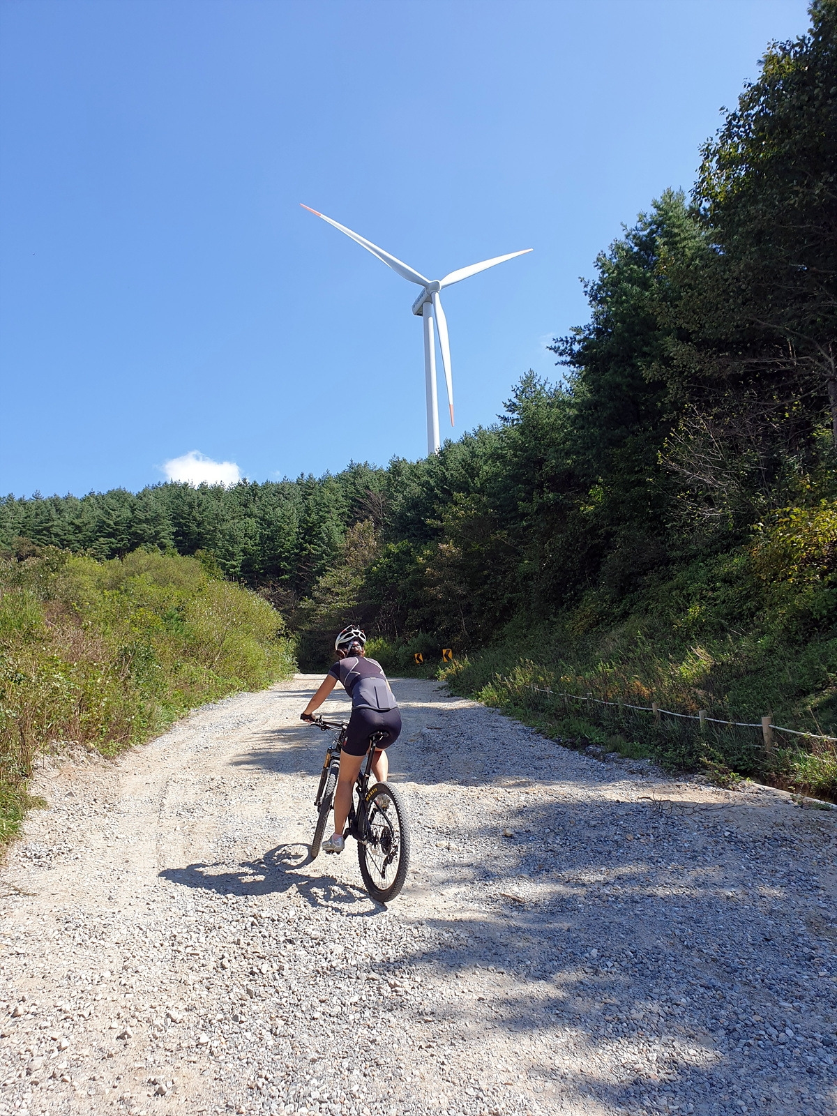 오르막길이 시작된다. 비포장길과 포장길이 섞여 있고 경사도 은근히 있는데 지니님이 잘 올라간다.