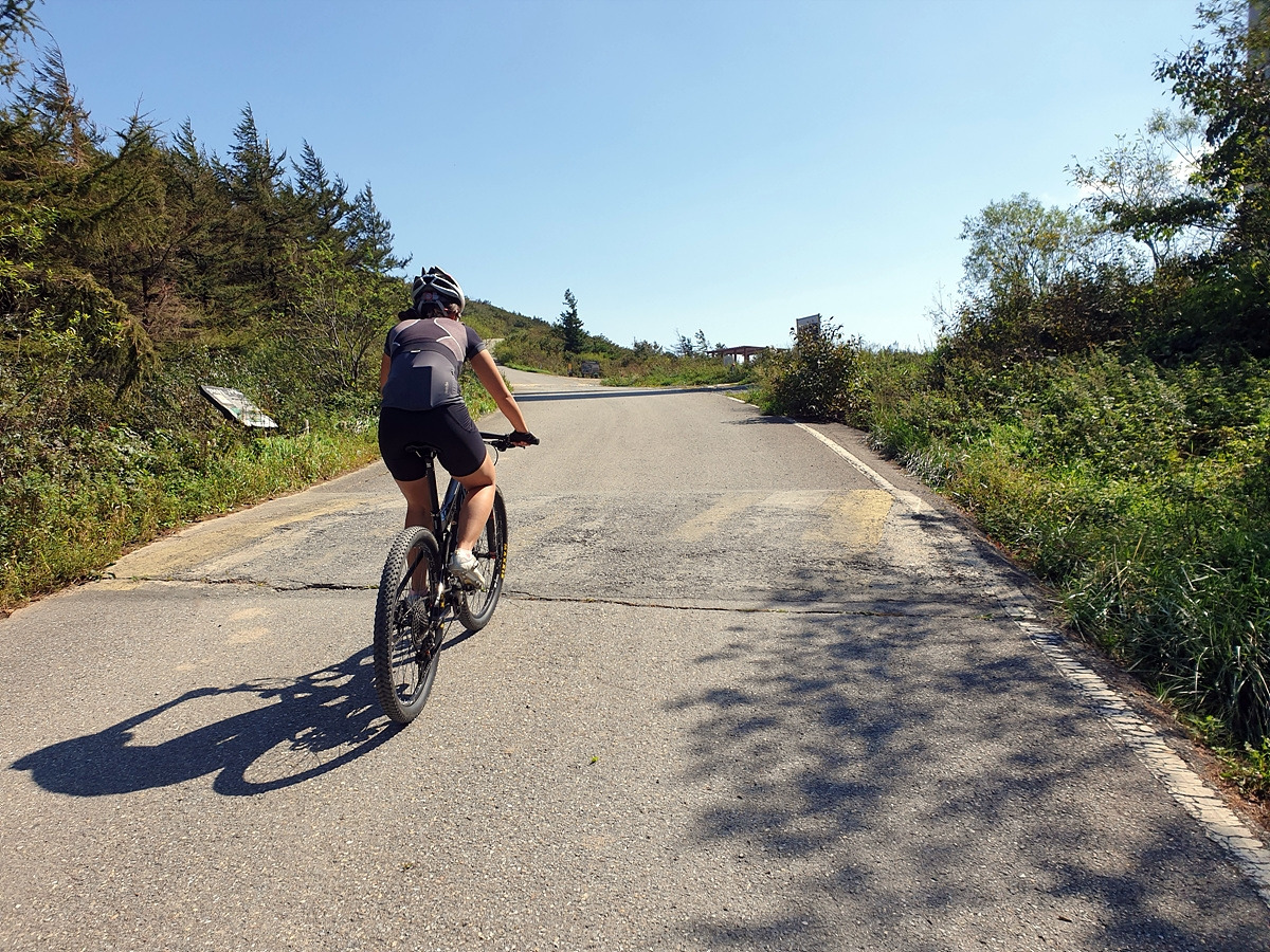 이제 해발 980m의 양구두미재 정상에 도착했다. 우리나라에서는 이 정도면 꽤 높은 곳이다. 로드바이크라면 여기서 고생 끝인데 MTB는 이제 시작이다.