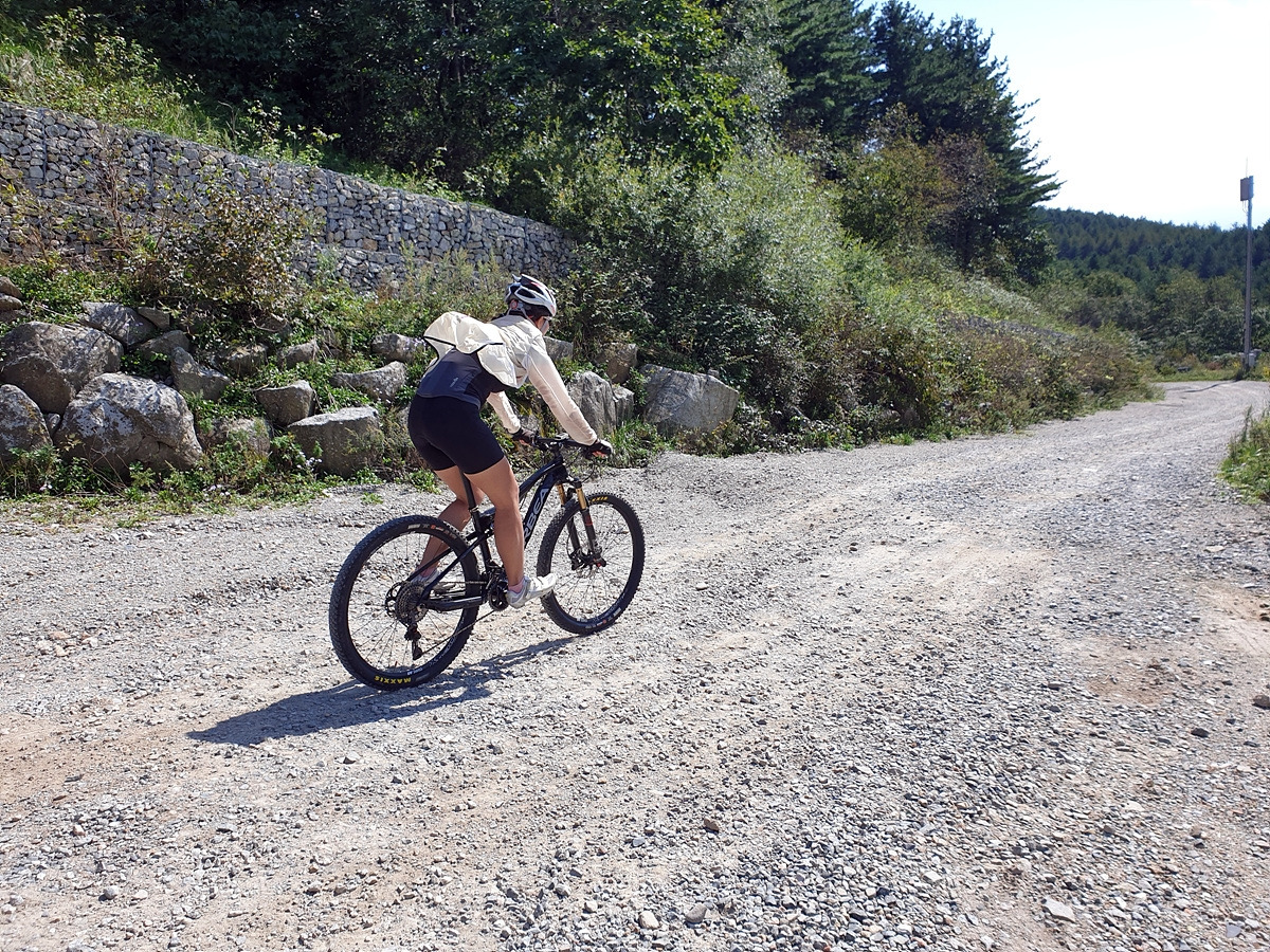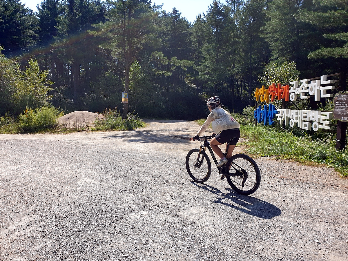 여기서부터는 이제 완전히 비포장길이다. 차량 통행이 가능한 정도의 비포장이라 차들이 많이 올라다니던 길인데 차량이 통제되었으니 MTB가 다니기엔 아주 좋은 길이 되었다.