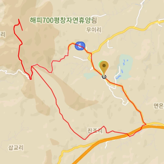 면온IC에서 차를 세워둔 휘닉스파크까지는 약한 오르막길인데 지니님이 지쳐서 속도가 나오지 않는다. 도로를 따라 천천히 올라간다.