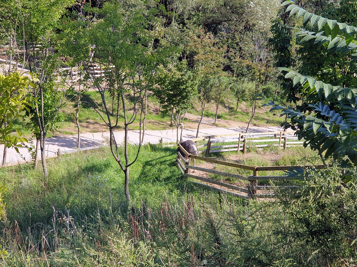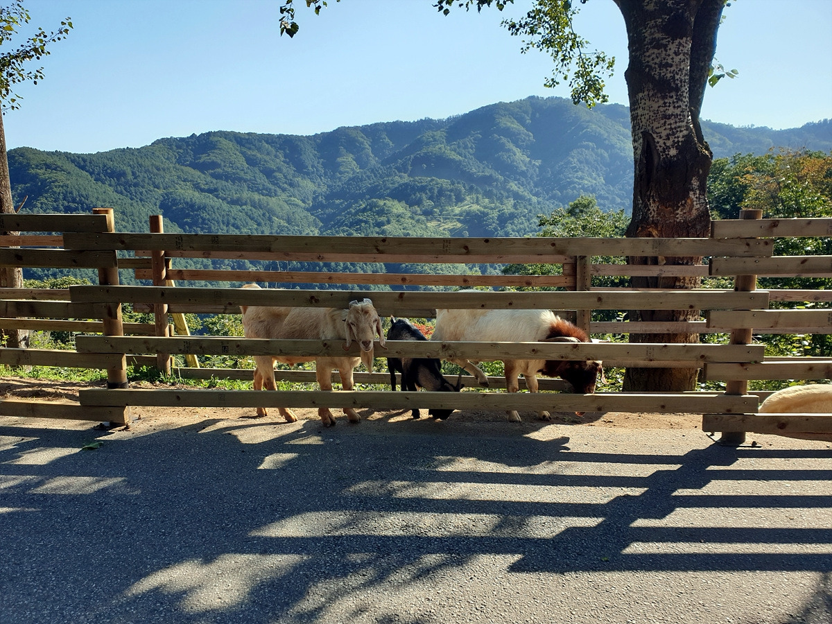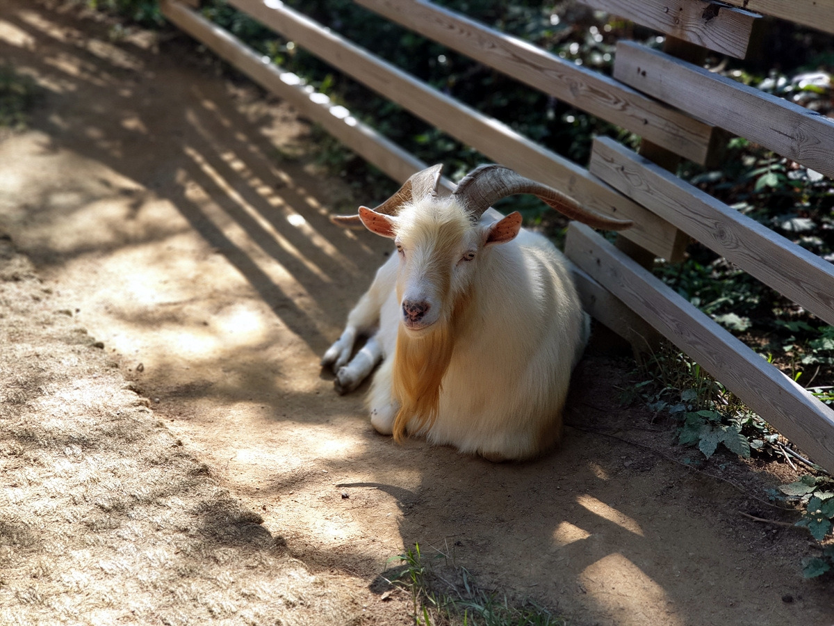 산책로 중간에 산양 우리가 있다. 뿔이 아주 멋있게 생긴 녀석이 두 마리다. 이 녀석들도 염소 종류라 잘못 만지면 손에 냄새가 찌든다.