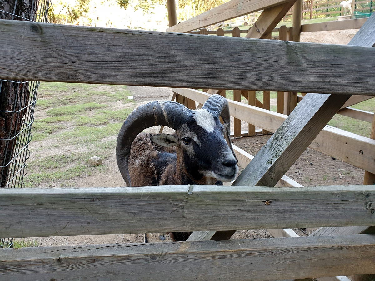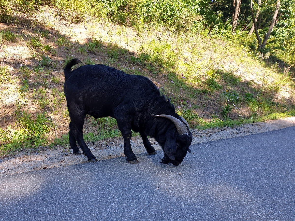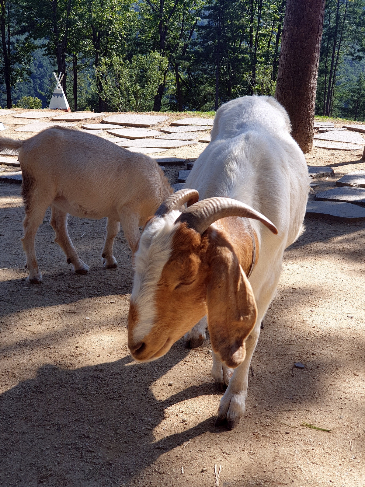 산책로 중간에 산양 우리가 있다. 뿔이 아주 멋있게 생긴 녀석이 두 마리다. 이 녀석들도 염소 종류라 잘못 만지면 손에 냄새가 찌든다.
