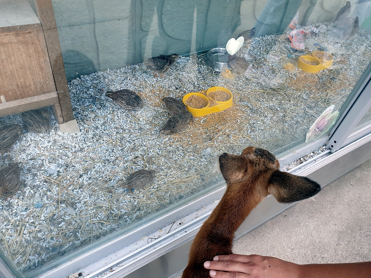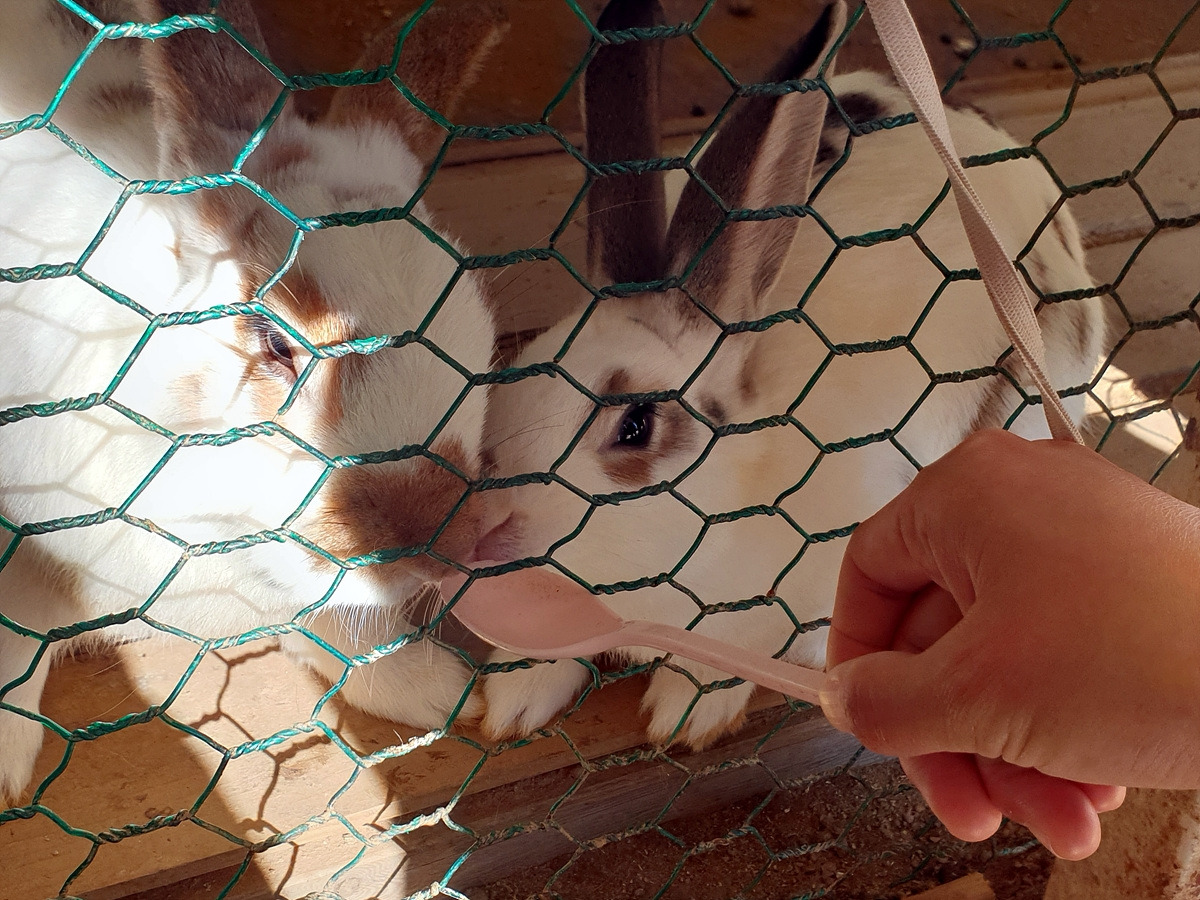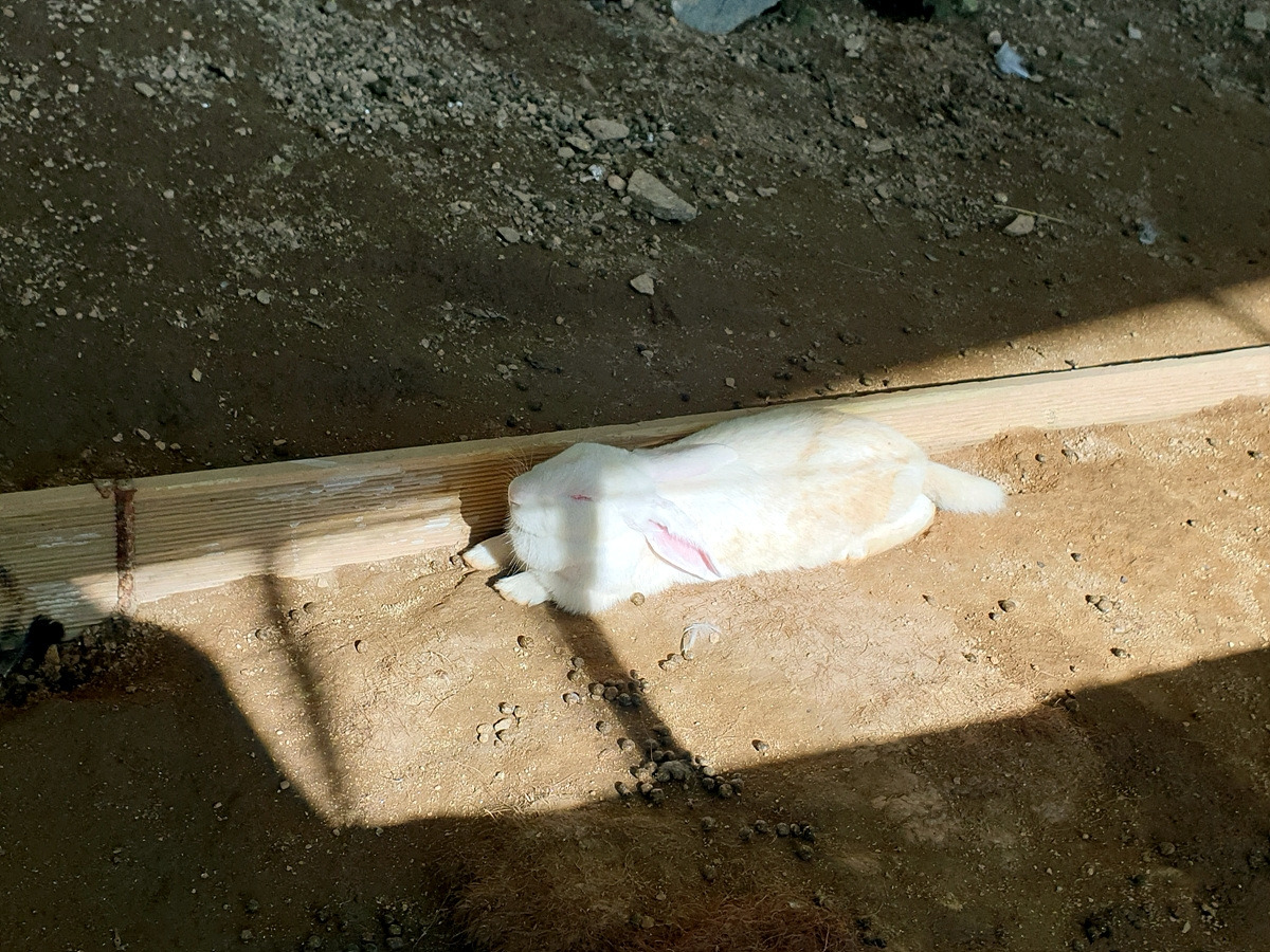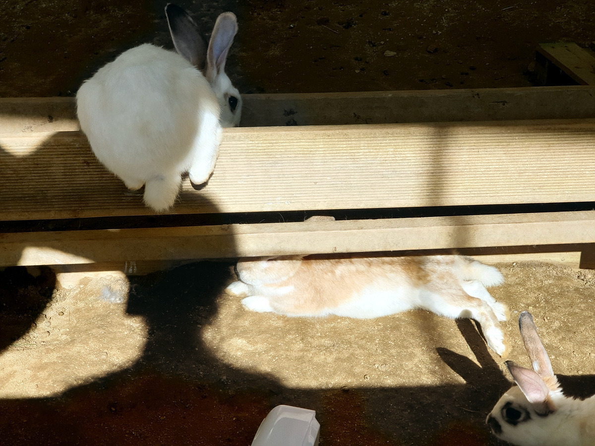 여기도 토끼우리가 하나 있는데 아까 멀리서만 봐야 했던 새끼 토끼를 가까이서 볼 수 있다.