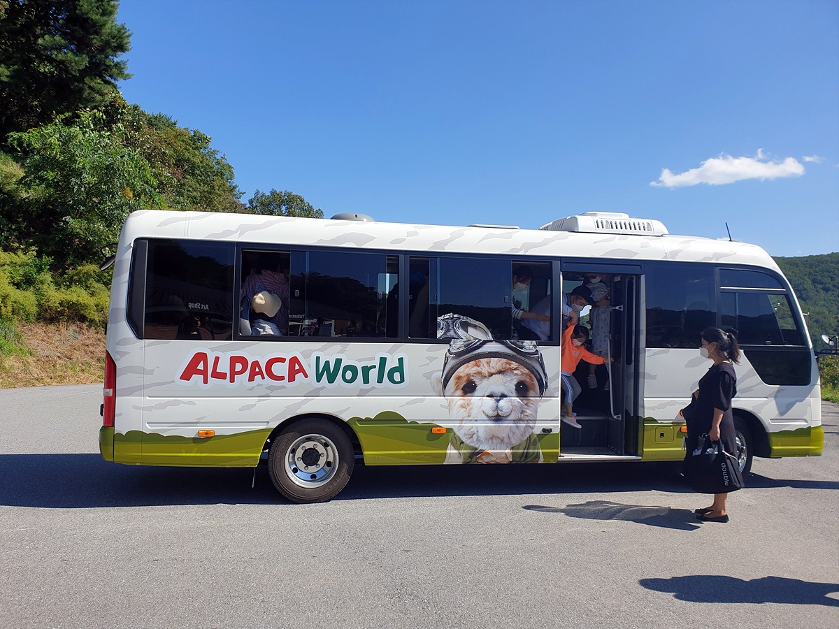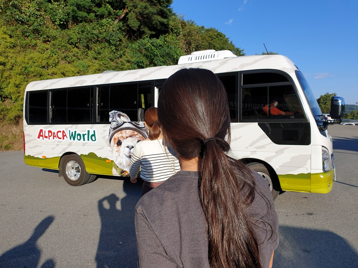 무언가 귀여운 동물들이 그려진 버스라 관심이 가서 자세히 보니 알파카 월드라고 한다. 국내에도 알파카를 볼 수 있는 곳이 있나 보구나. 사실 알파카는 쉽게 보기 힘든 동물이다. 알파카는 사진으로만 보았지 실제로는 지난 알프스 자전거 여행에서 5일 동안 비에 시달리며 자전거를 타던 때에 어느 농장에서 본 것이 처음이었다. 나를 보고 이상한 걸음으로 다가오는 우스꽝스러운 녀석들 덕분에 우울하던 기분이 풀렸다.